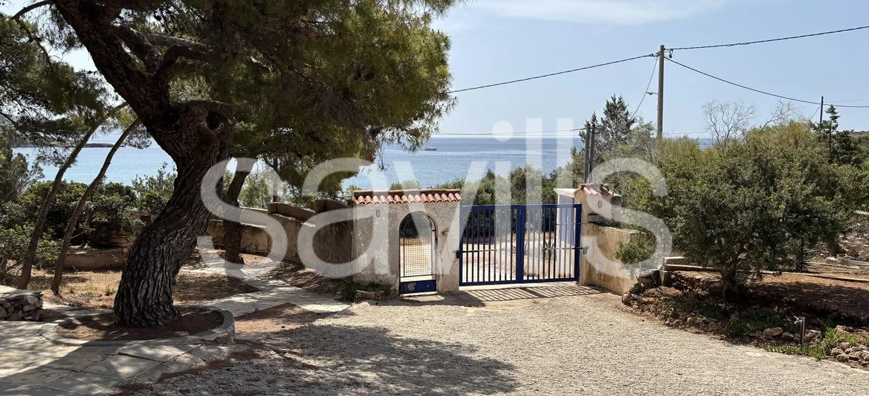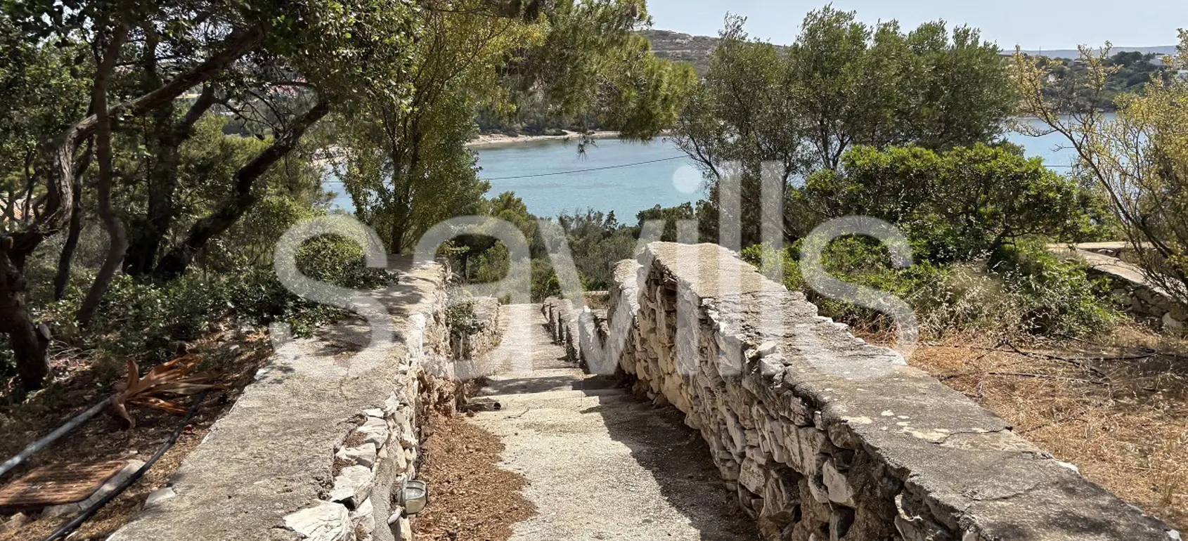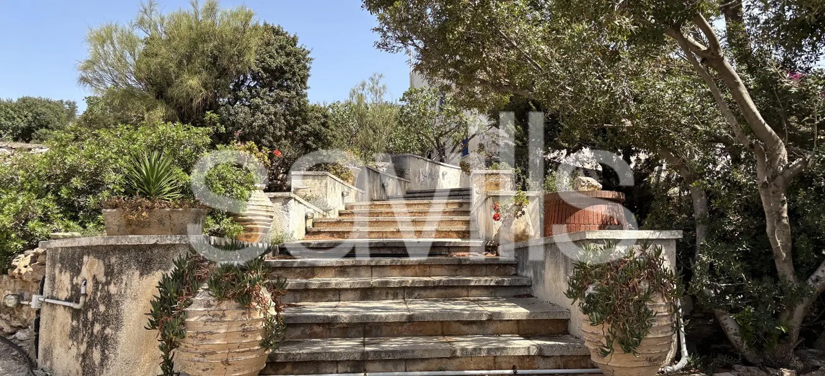 A large seaside plot featuring a main villa and additional auxiliary buildings