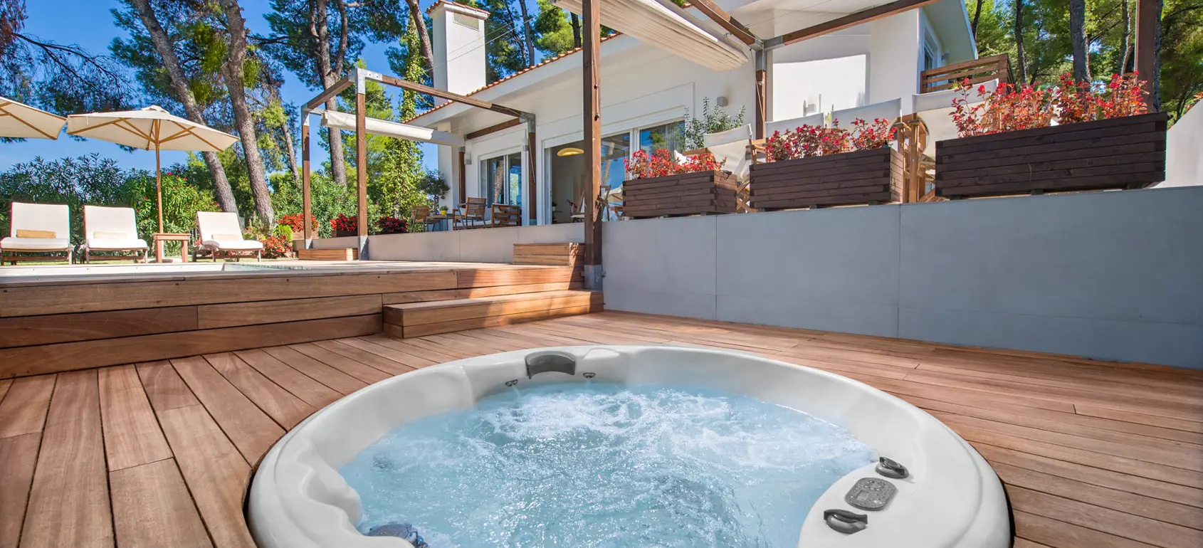 Outdoors, the villa offers multiple spaces for relaxation, including the tranquil pool terrace, the Jacuzzi area, and a series of inviting verandas.