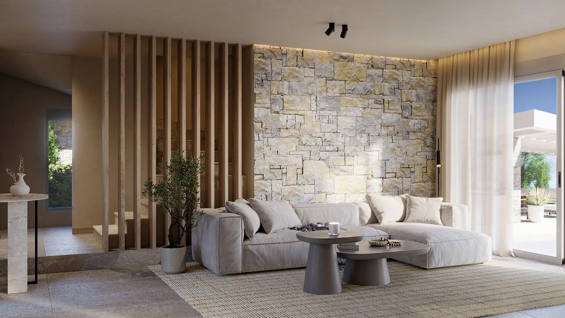 • A lush landscape of approximately 2,000 trees and plants, including olive, orange, lemon, mandarin, apricot, and pear trees