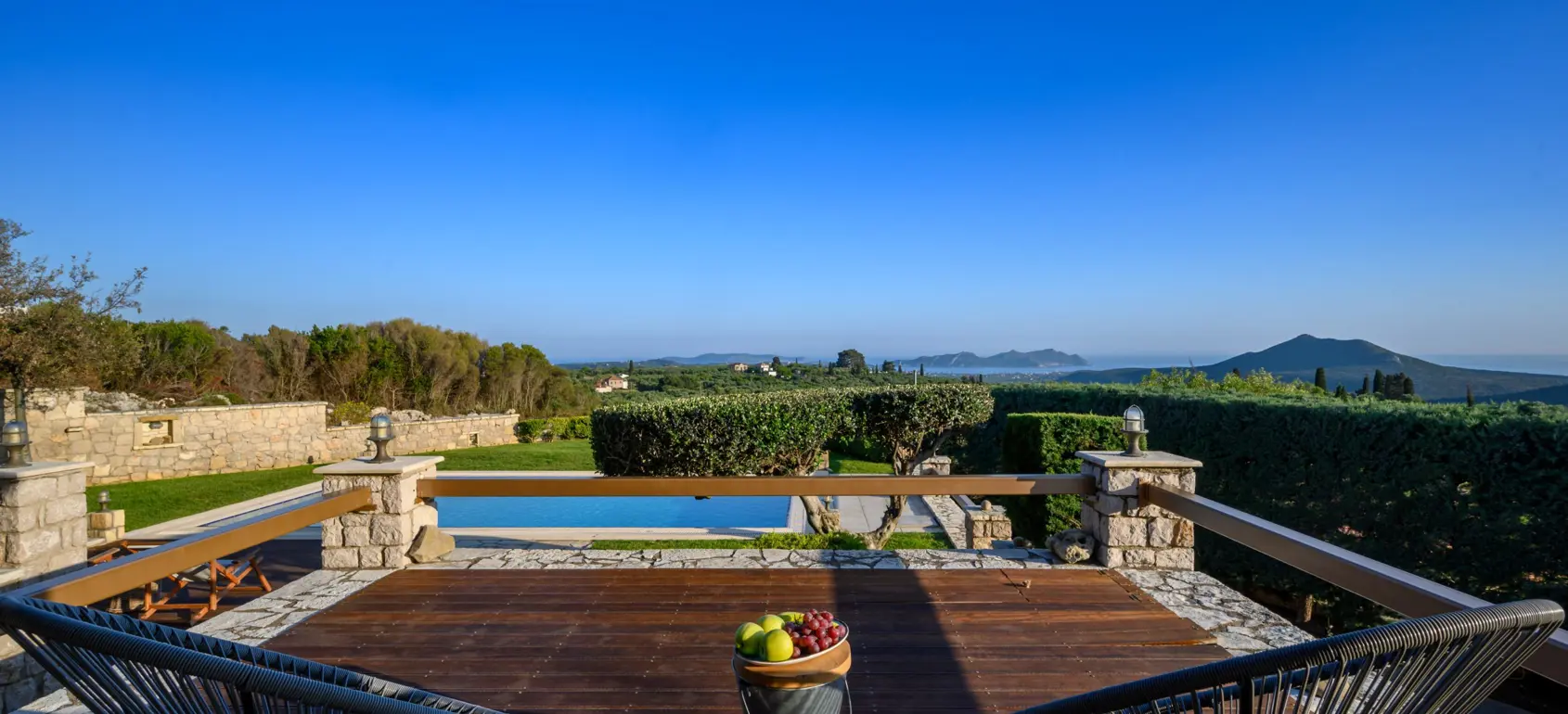 Outdoors, tastefully furnished terraces invite you to unwind while taking in the surrounding natural beauty and serene sea views. The combination of expansive terraces, a beautifully landscaped garden, and a delightful swimming pool area creates an idyllic setting for relaxation and entertainment.