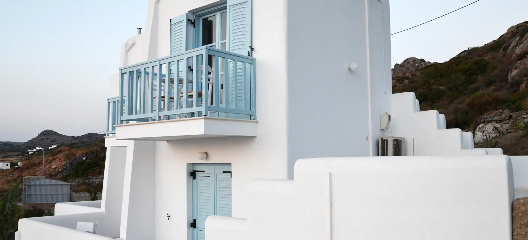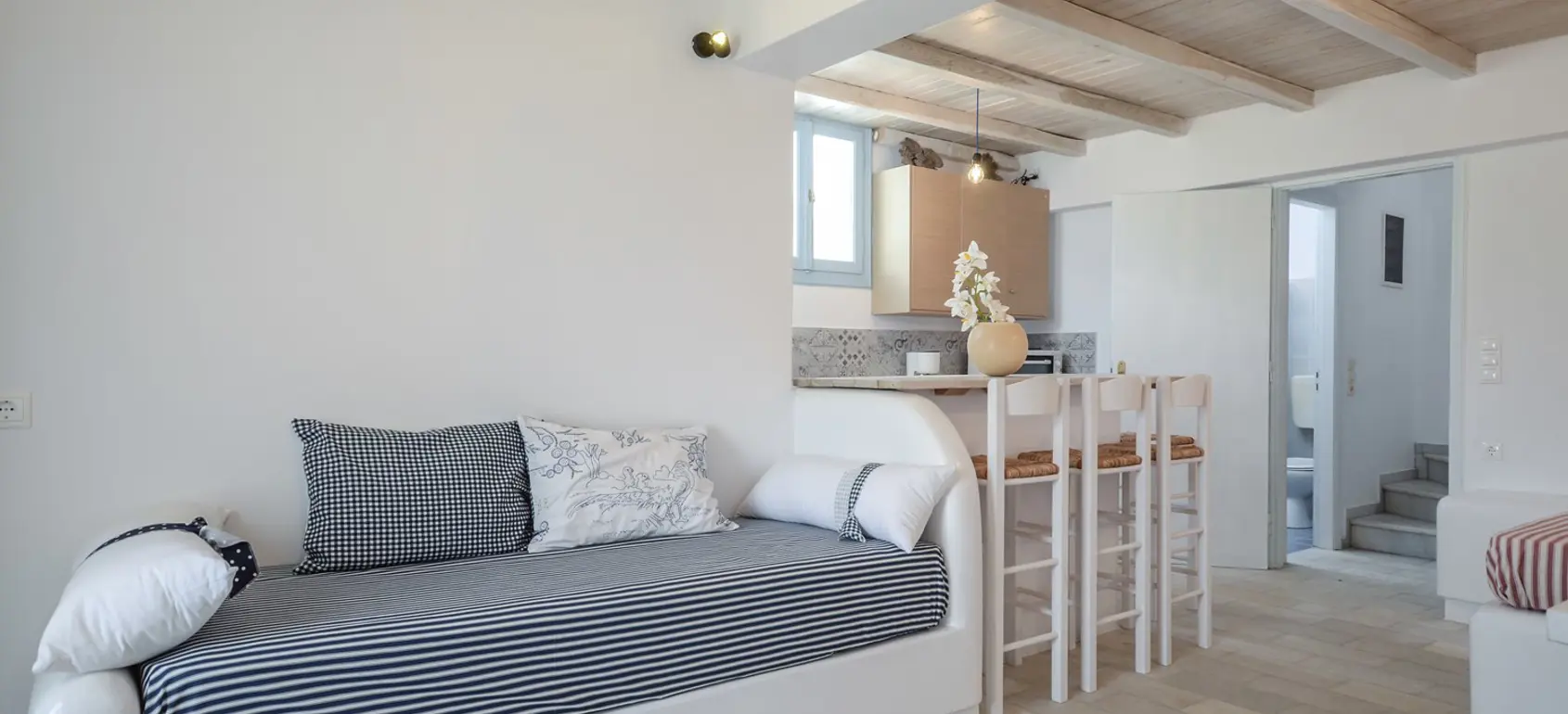 This residence is part of a small residential complex that reflects the timeless elegance of traditional Cycladic architecture, defined by its clean lines, balanced proportions, and serene aesthetic.