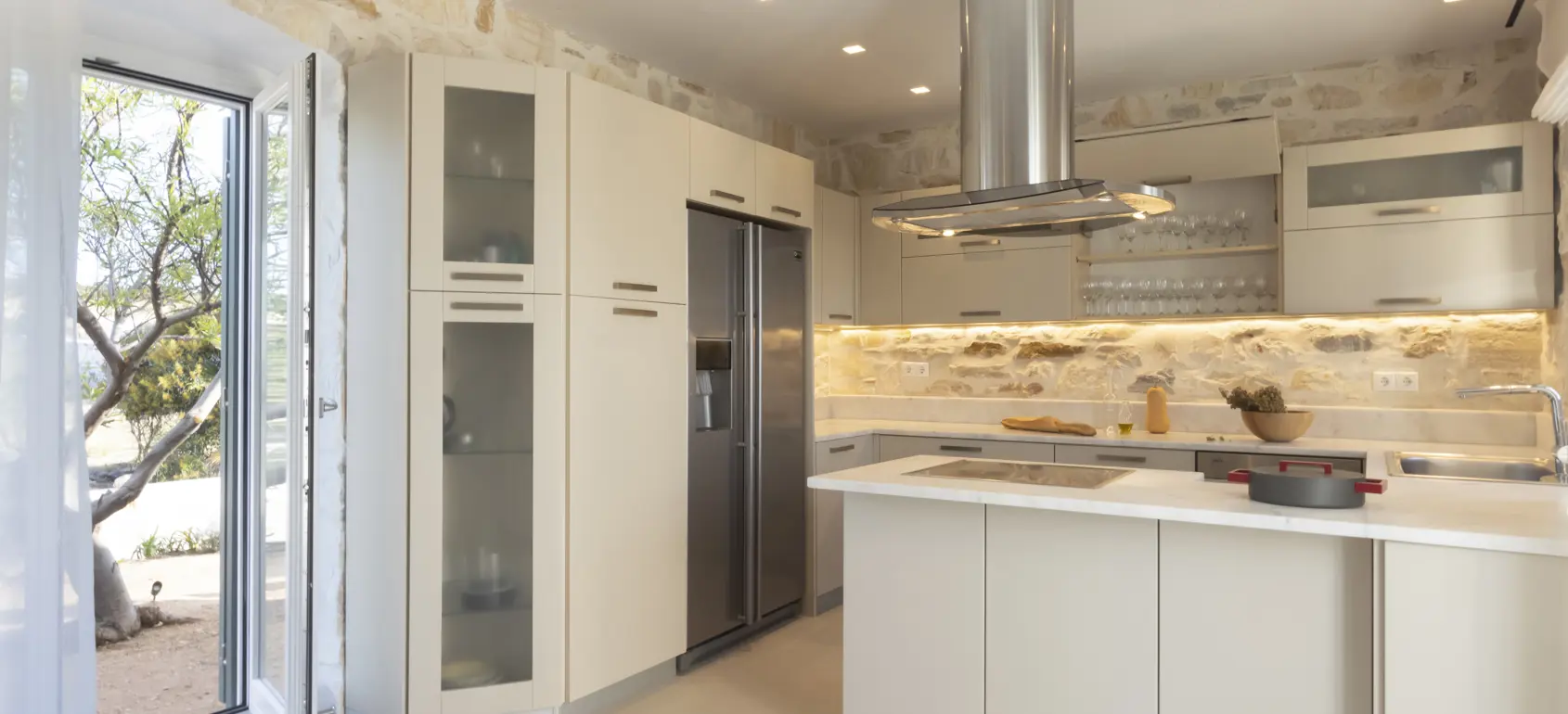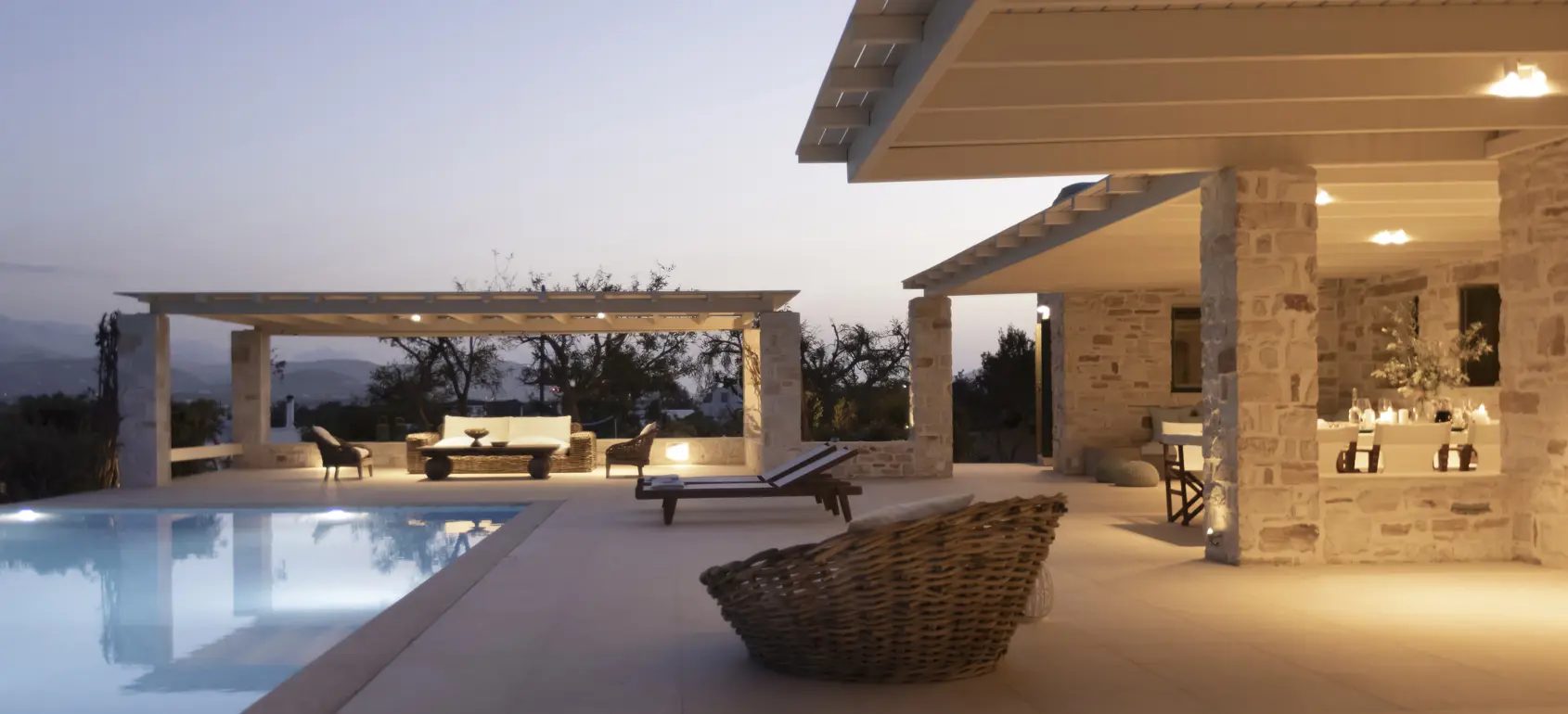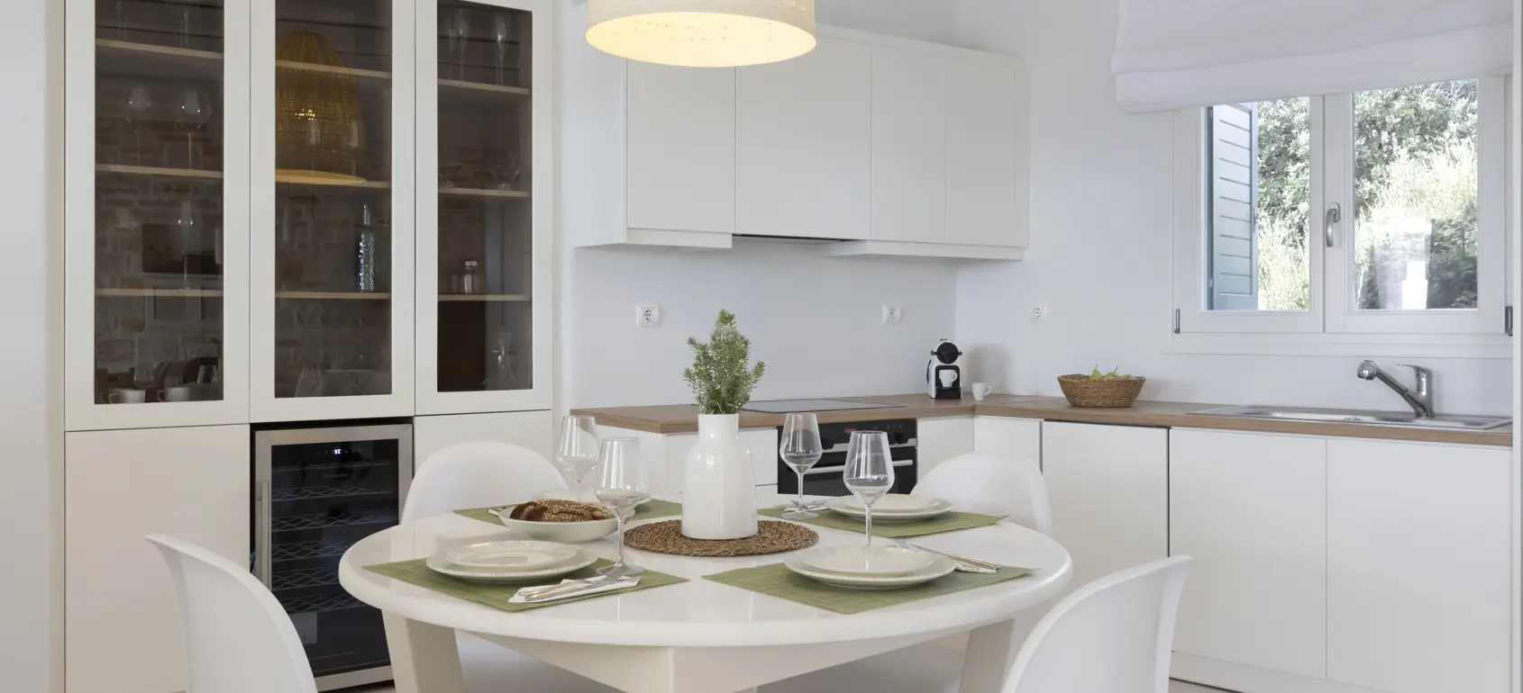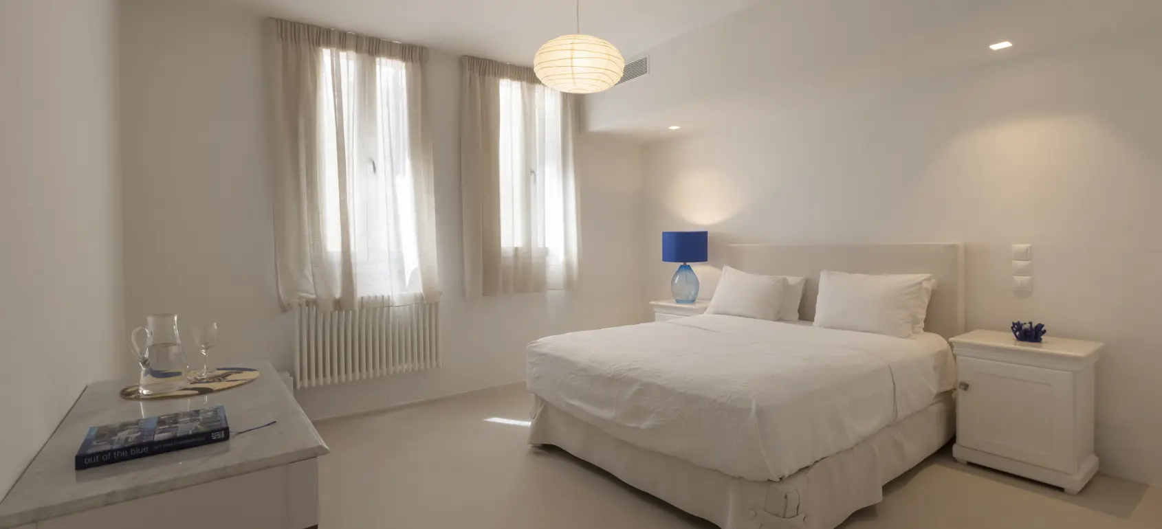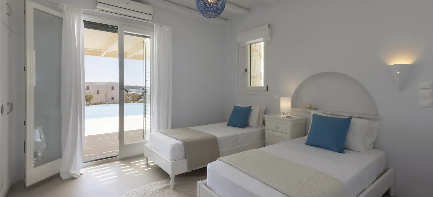 Main House: Includes a master double bedroom on the first floor, a twin and a double bedroom on the ground floor sharing a spacious bathroom, a guest WC, and an en-suite double bedroom plus playroom on the basement level. The home offers a fully equipped kitchen, Smart TVs, Wi-Fi throughout, indoor and outdoor sound system, central A/C, safes, and advanced security systems. Outdoors, enjoy an infinity pool with sunbeds, BBQ area, dining and lounge spaces, ping pong table, beach volley court, children’s playground, vineyards, and private parking.