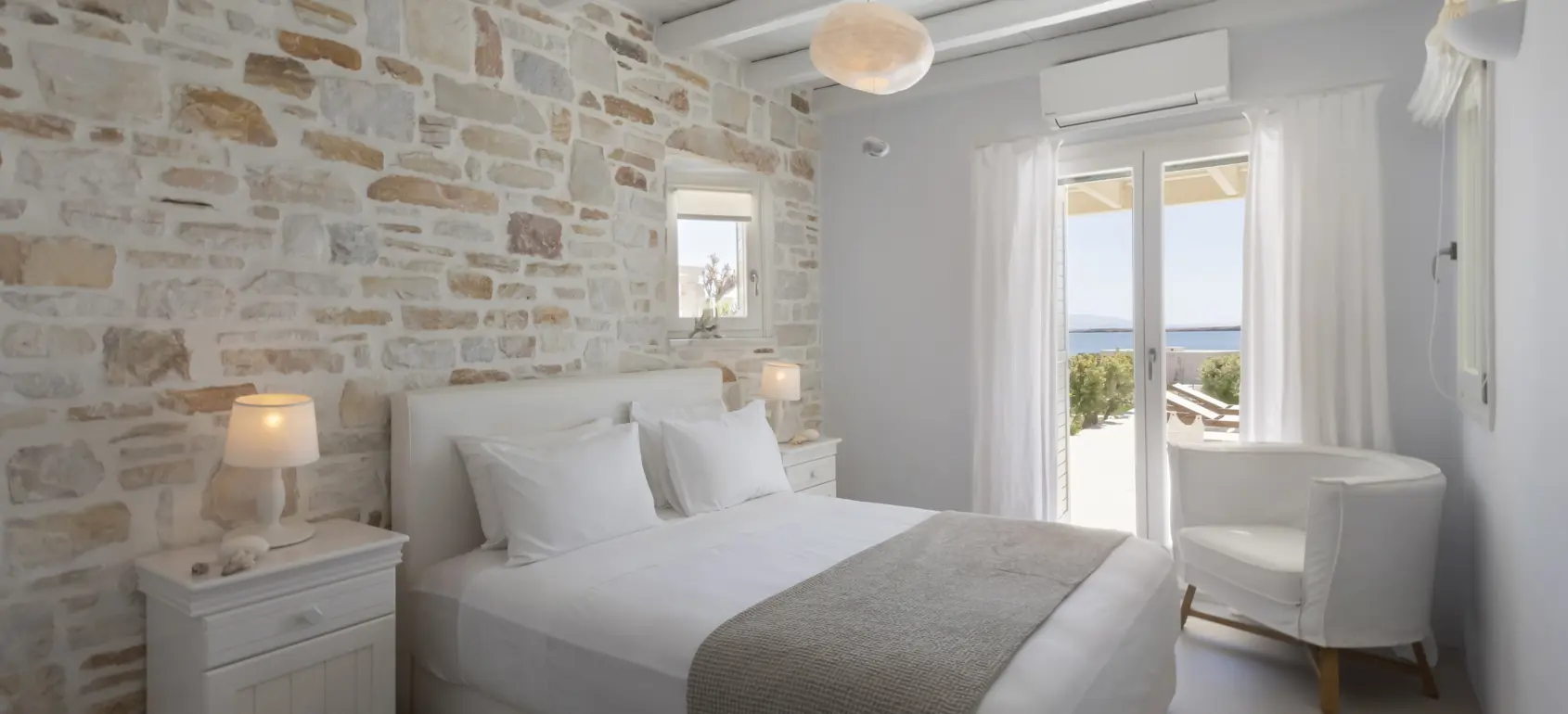 Santa Maria Beach is one of the most beautiful and sought-after beaches in Paros, known for its crystal-clear turquoise waters and soft golden sand. Located close to Naoussa, it offers a perfect balance between natural beauty and organized comfort, with beach bars, sunbeds, and water sports available. Its sheltered bays and shallow waters make it ideal for families, while its vibrant yet relaxed atmosphere attracts visitors looking to enjoy the authentic Cycladic summer experience in an idyllic seaside setting.