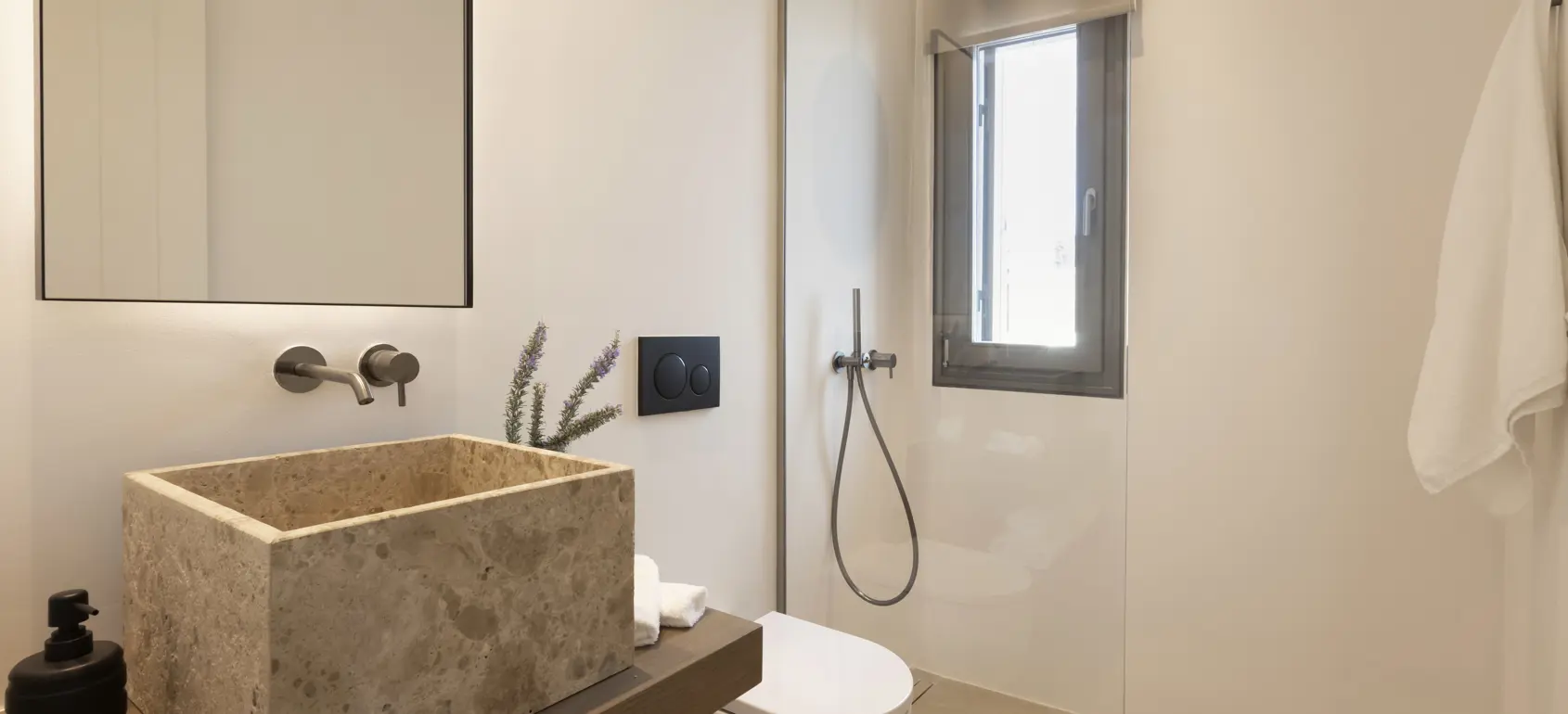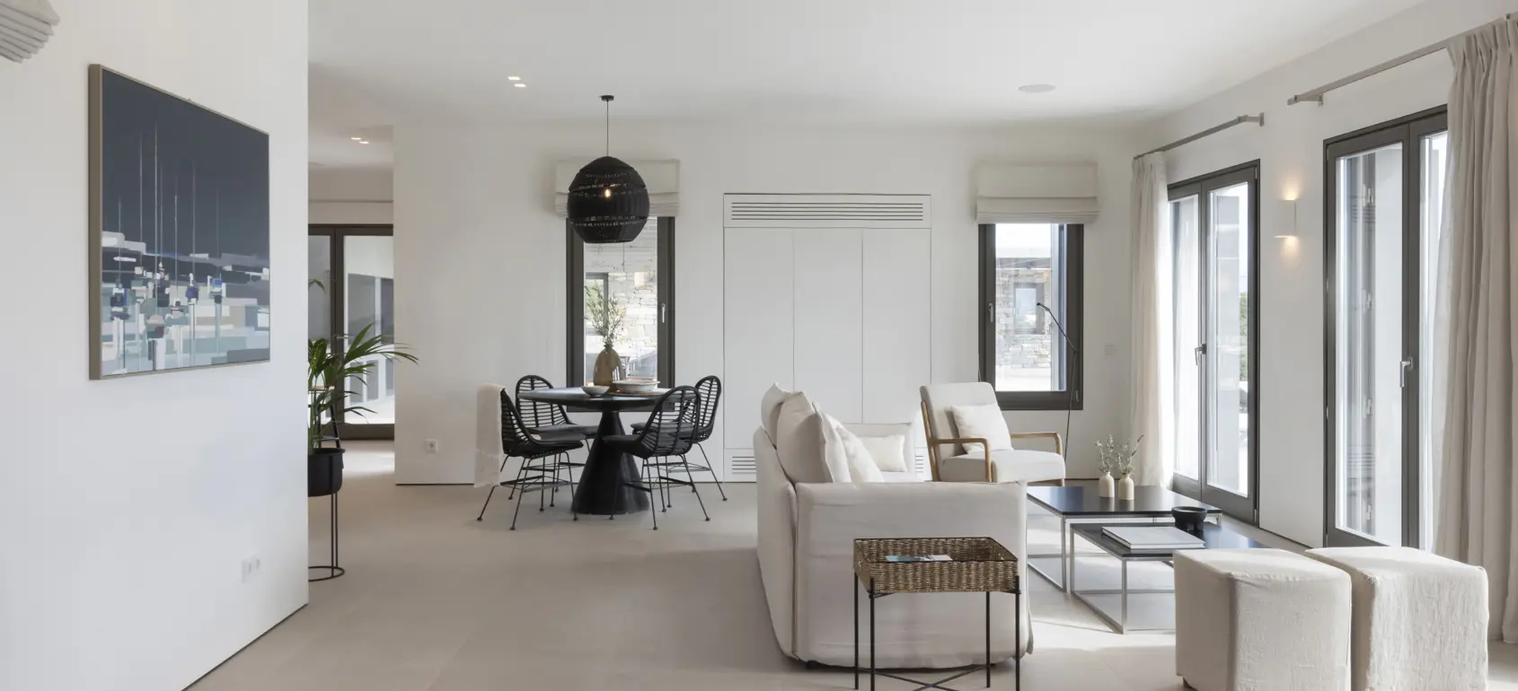 These two luxurious villas just a 2-minute walk from Santa Maria Beach, offer a combined total of 350 m² of elegant living space. The two villas can also be rented together for groups larger than 10 and up to 20 guests.
