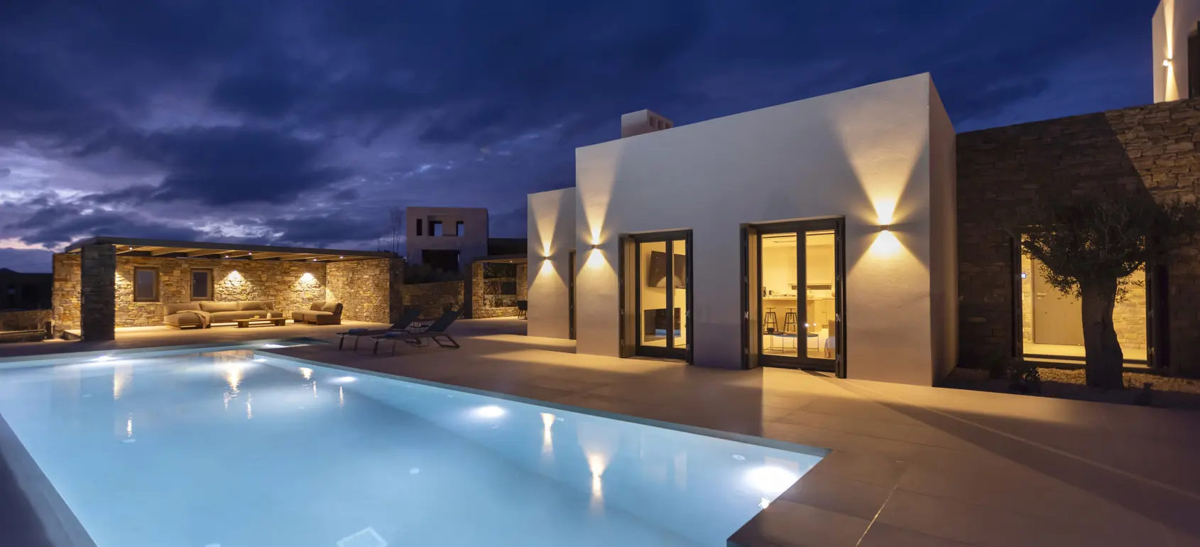 Each property features en-suite bedrooms, fully equipped kitchens, Smart Home technology, Wi-Fi, indoor/outdoor music systems, Smart TVs, central A/C, underfloor heating, and advanced security. Outdoors, guests can enjoy infinity pools with sunbeds, BBQ and dining areas, lounge spaces, and enclosed parking, all with direct and easy access to the beach.