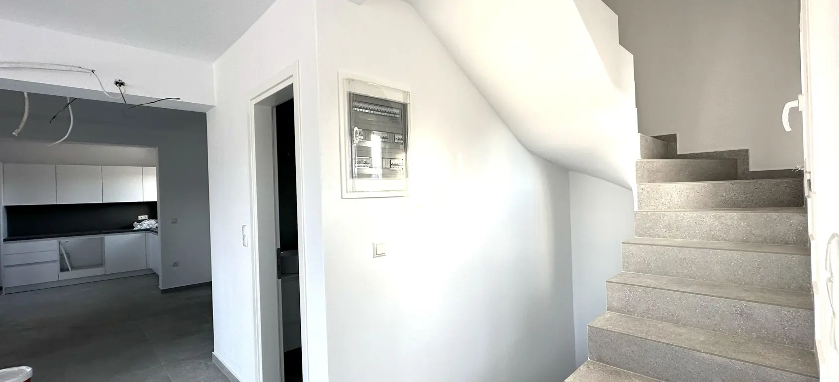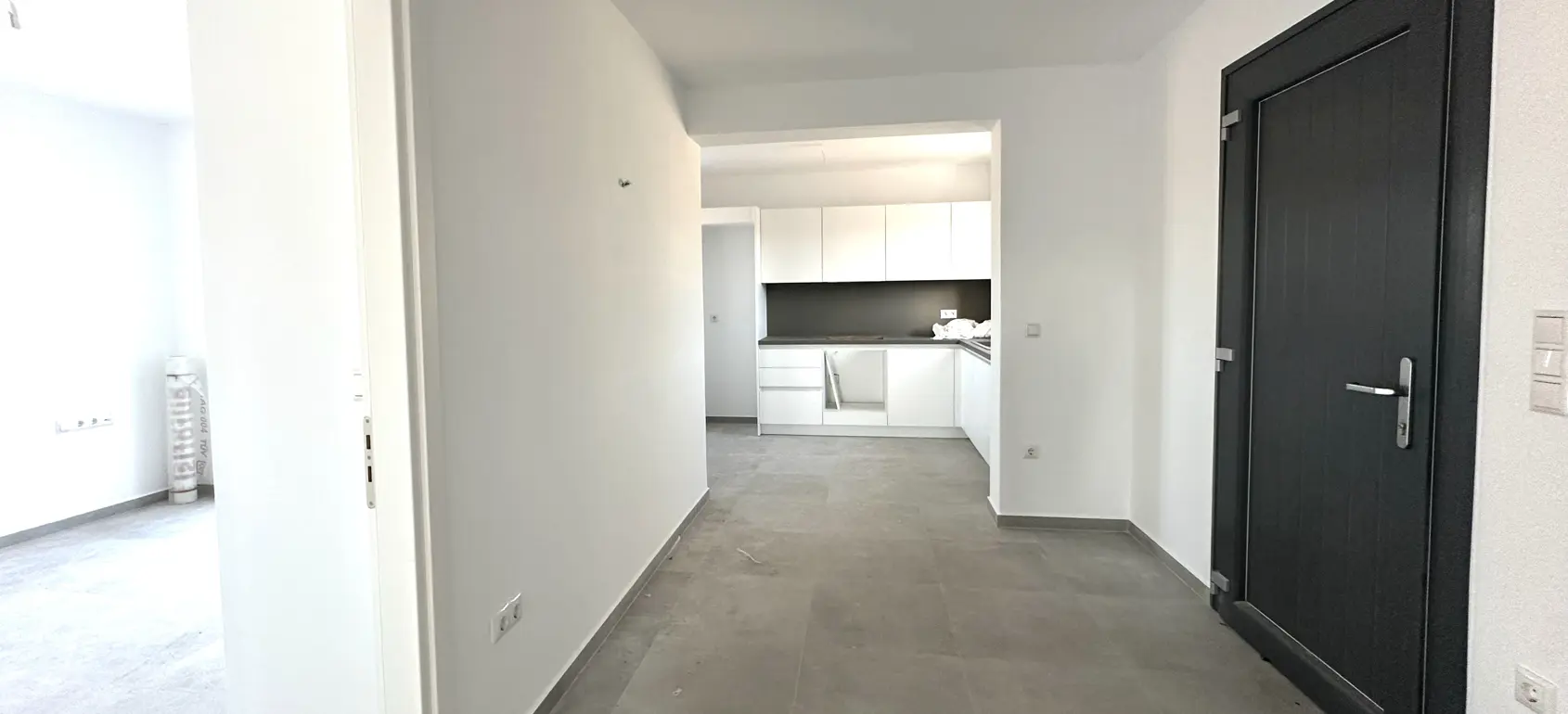 This newly built construction comprises an open living, dining and kitchen area as well as ttwo bedrooms and three bathrooms.