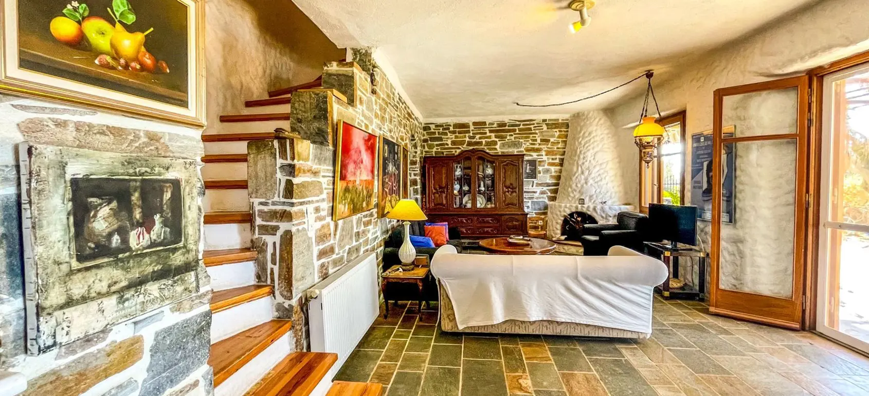 Built with traditional high-quality craftsmanship, it features thick stone walls, a reinforced concrete structure, and elegant interior finishes of solid wood and Karystos stone. Renovated in 2018, the home also includes two fireplaces for year-round comfort, expansive terraces for outdoor living and entertaining, and a quiet residential setting with direct road access. The generous private plot further enhances the sense of space and privacy, while offering future development potential.