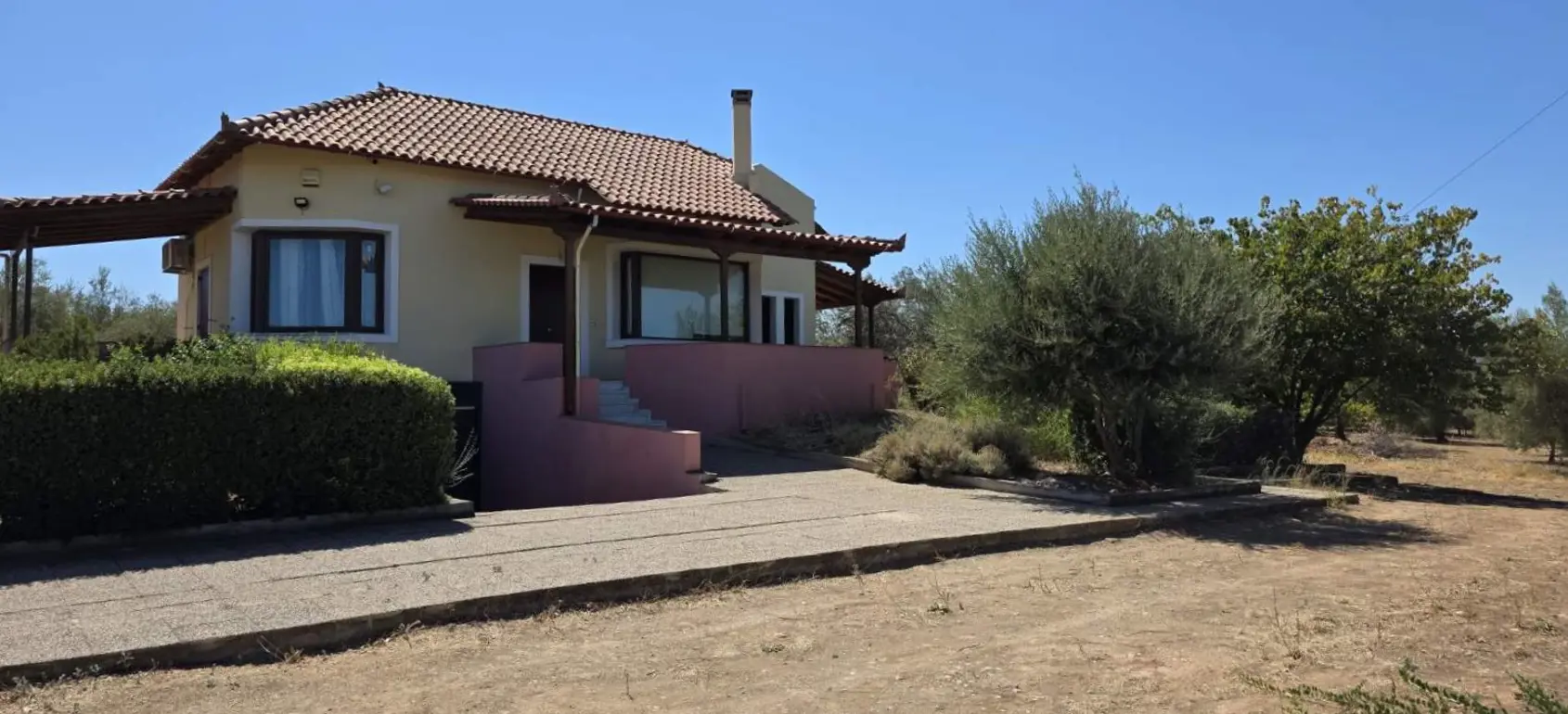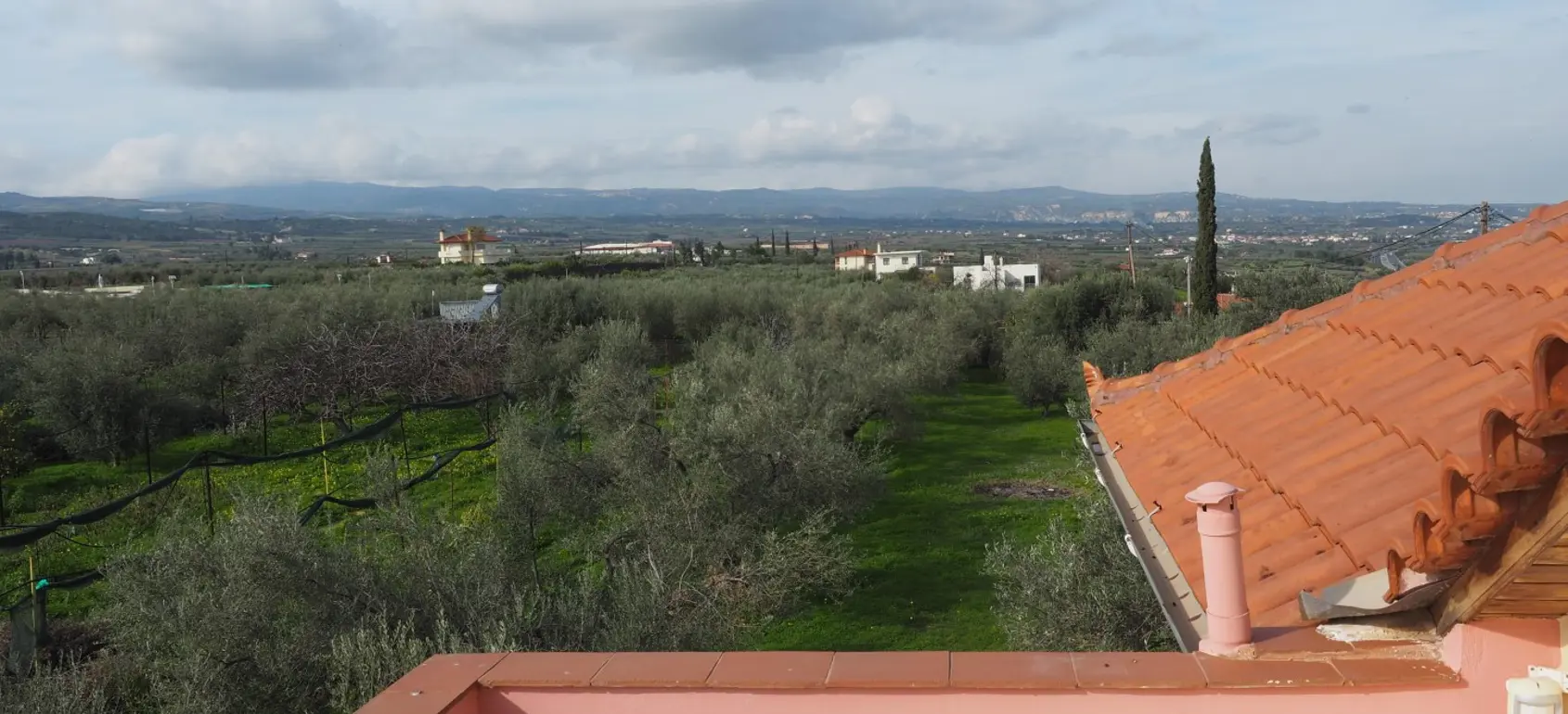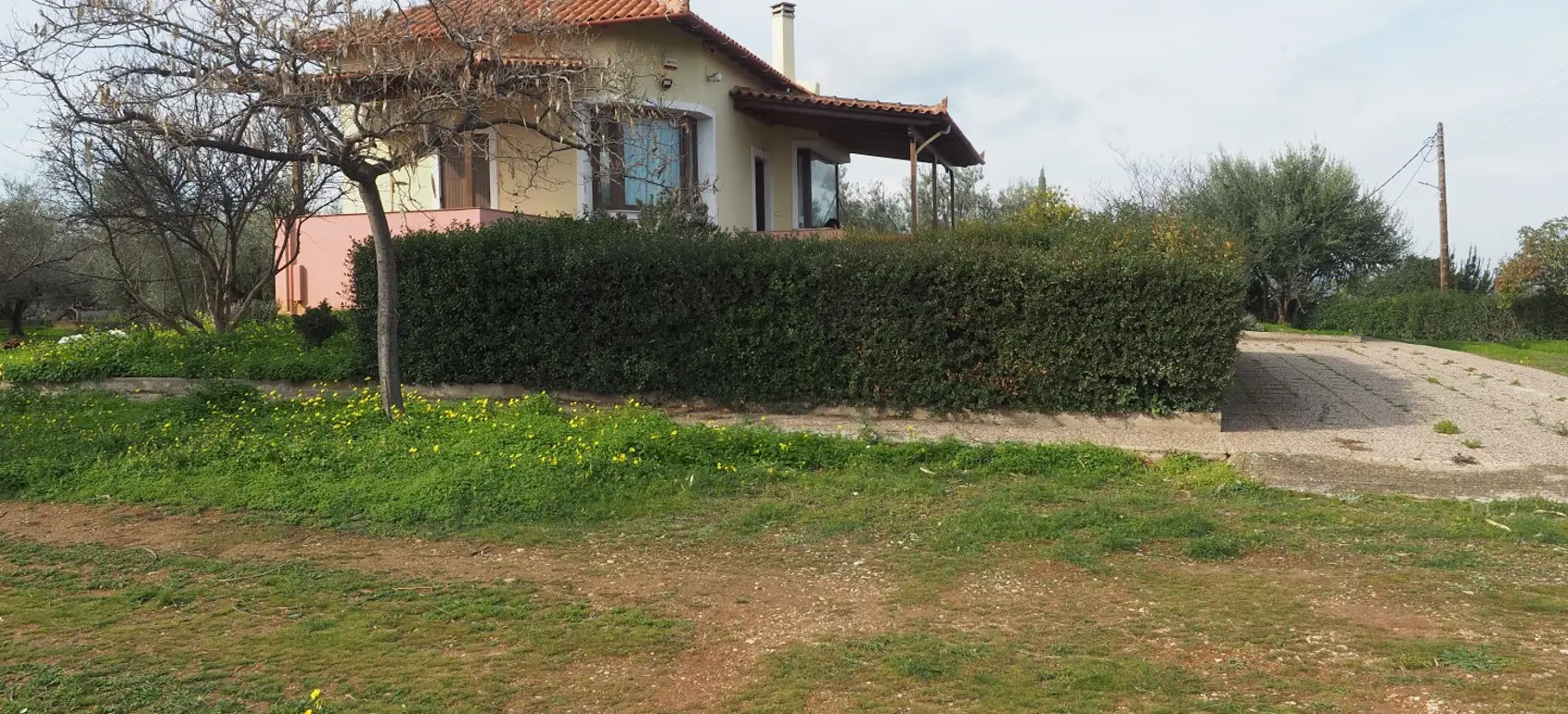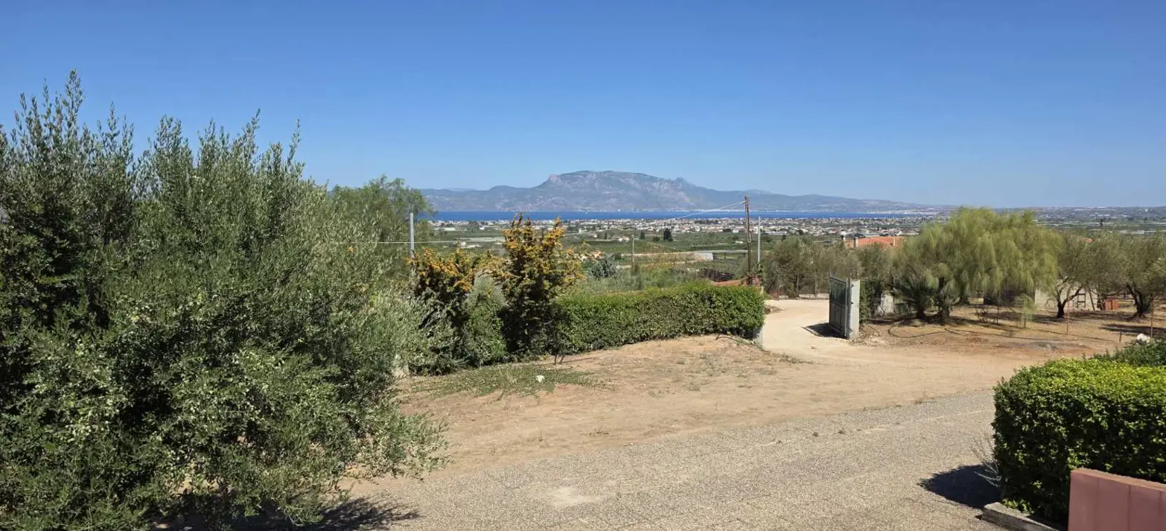 Beautiful country house located only a few minutes away from the seashore with nice views across the Corinthian Gulf and the surrounding mountains.
