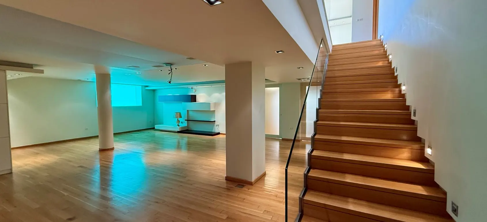 Includes: One maid’s room with a window and a private bathroom. A gym area with access to the garden. A living room and a dining area, equipped with a fully functional home cinema system with specialized soundproofing to enjoy movies in comfort. A separate area for washer and dryer, as well as a large additional storage space with built-in oak wardrobes, thoughtfully designed for clothing and other items. An additional bathroom with a shower. A small kitchenette. The enclosed garage of the residence is also located on this level, including three extra storage rooms within the garage space.