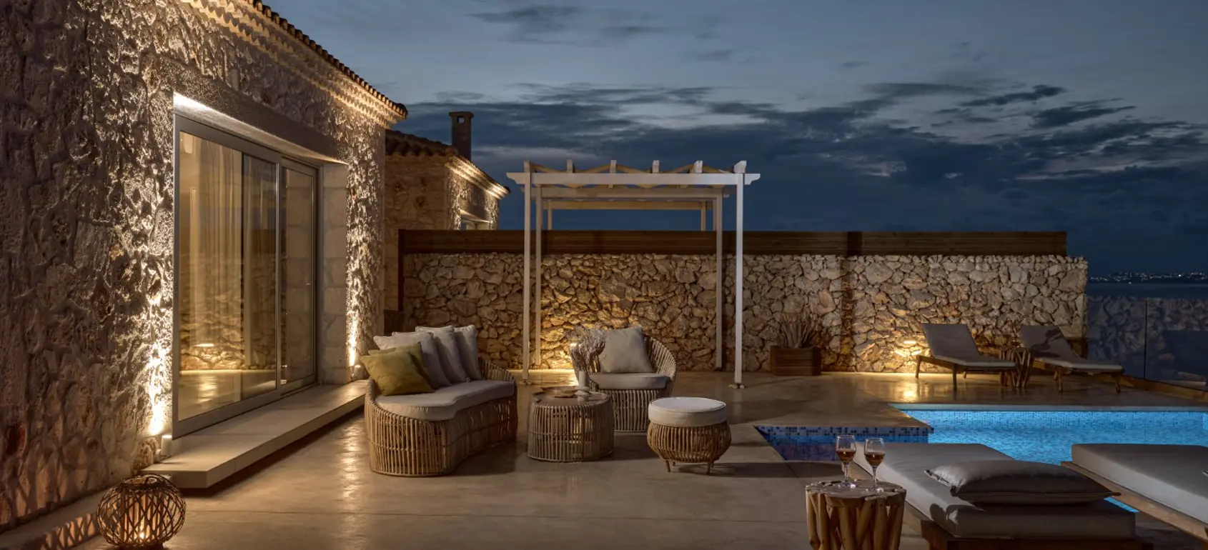 Built with local stone, combine comfort, luxury and privacy in a uniquely quiet landscape, with respect to the environment and traditional architecture