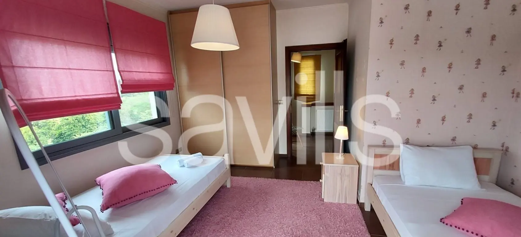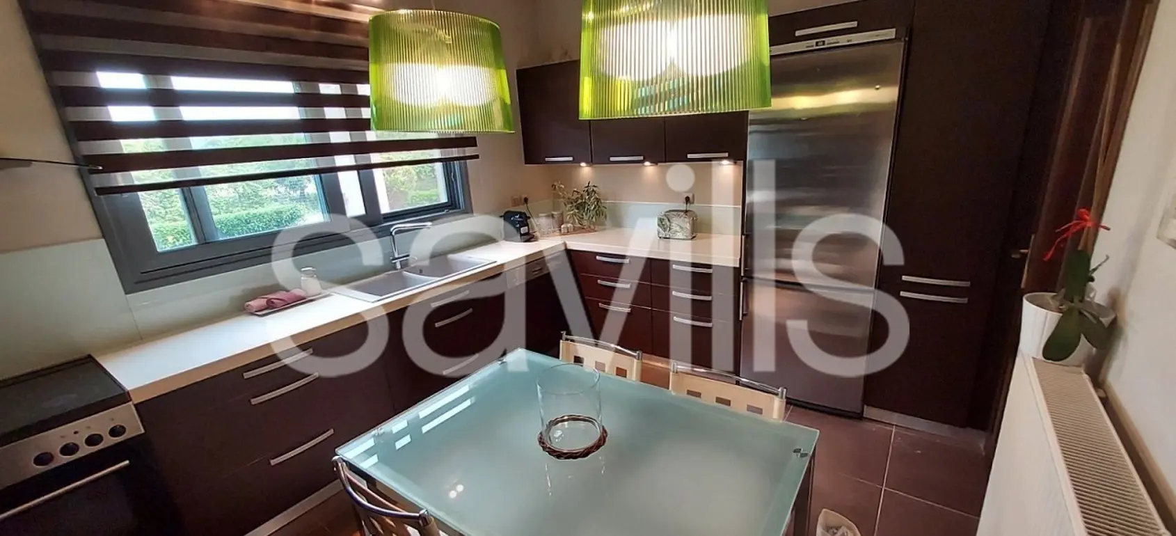 The 1st level (ground floor) consists of a bedroom, a kitchen, a wc and a very spacious living-dining room with direct access to a green area and a lovely garden.