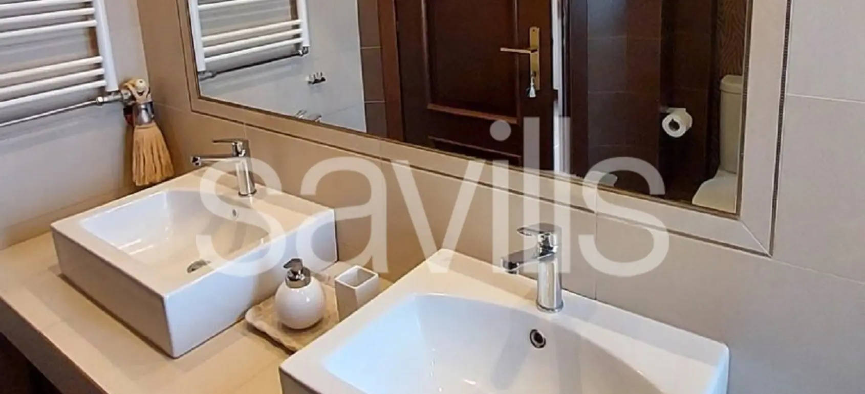 The 2nd level (first floor) consists of two bedrooms, one of which has a dressing room, with built-in wardrobes, a bathroom and very large terraces throughout the floor with an incredible view. It has a fireplace in the living room, independent oil heating, air conditioning, electric water heater, wooden floor with underfloor heating, security door, & aluminum frames with double glazing, electric shutters and screens.