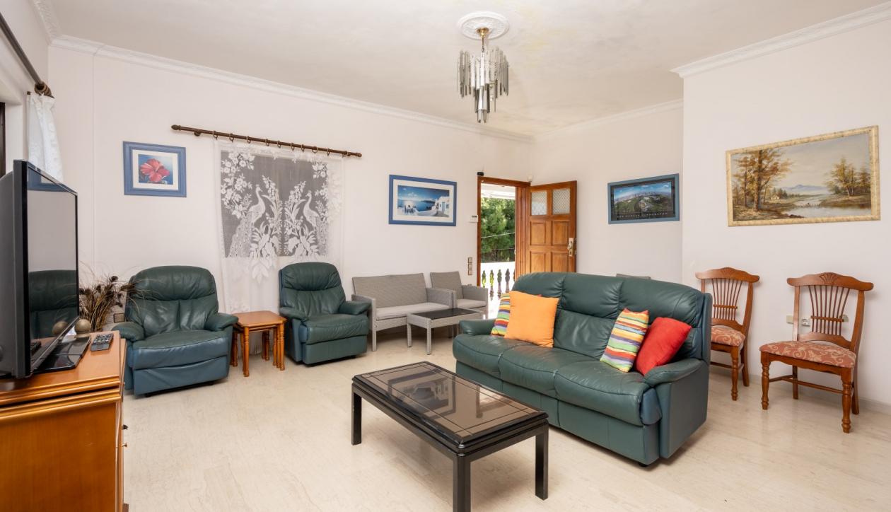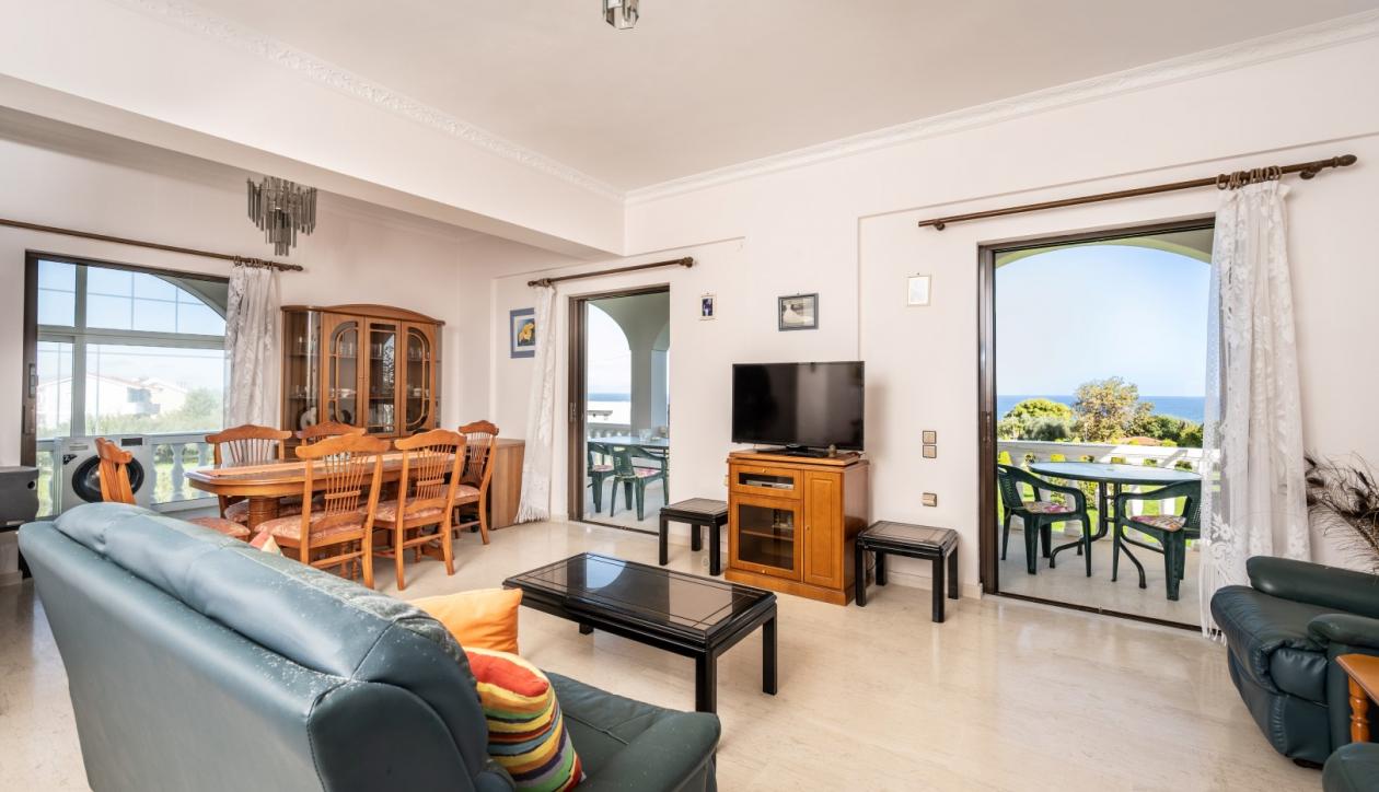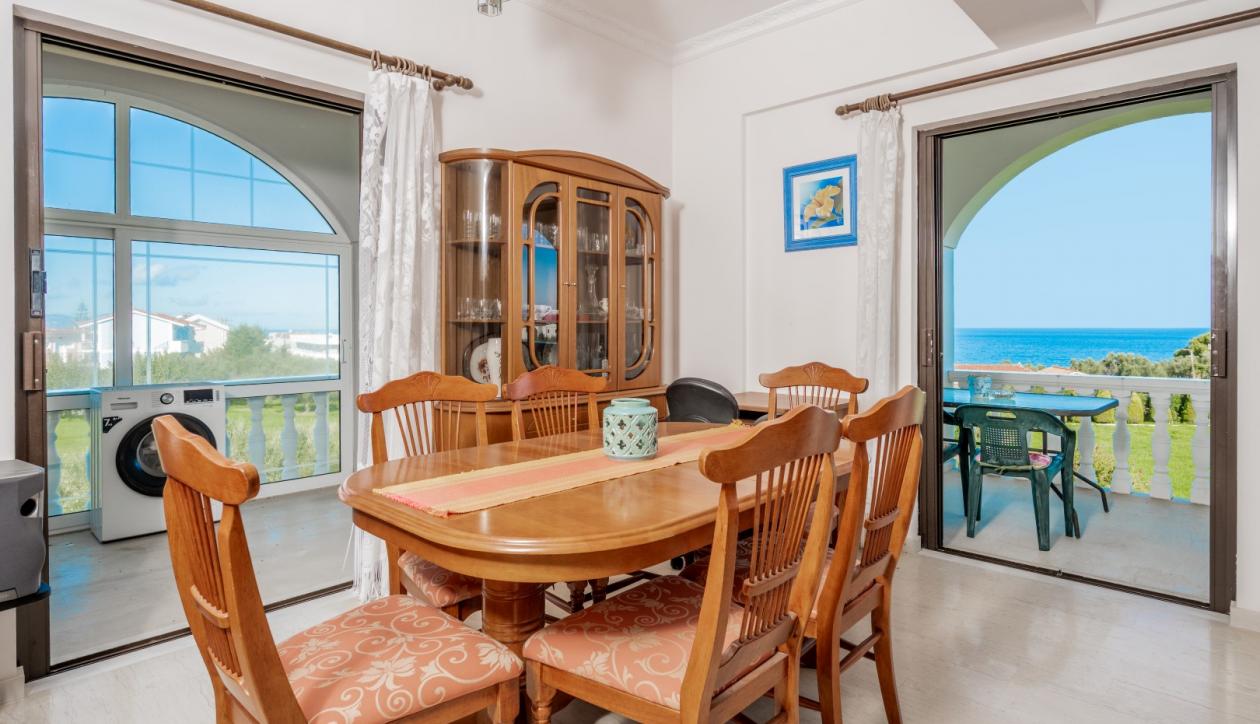 Covered outdoor parking is available, with easy lawn access from both sides of the property. Tragaki is an up-and-coming area that becomes increasingly popular during the summer months and is surrounded by high-end villas and hotels, positioning this property as a prime investment.