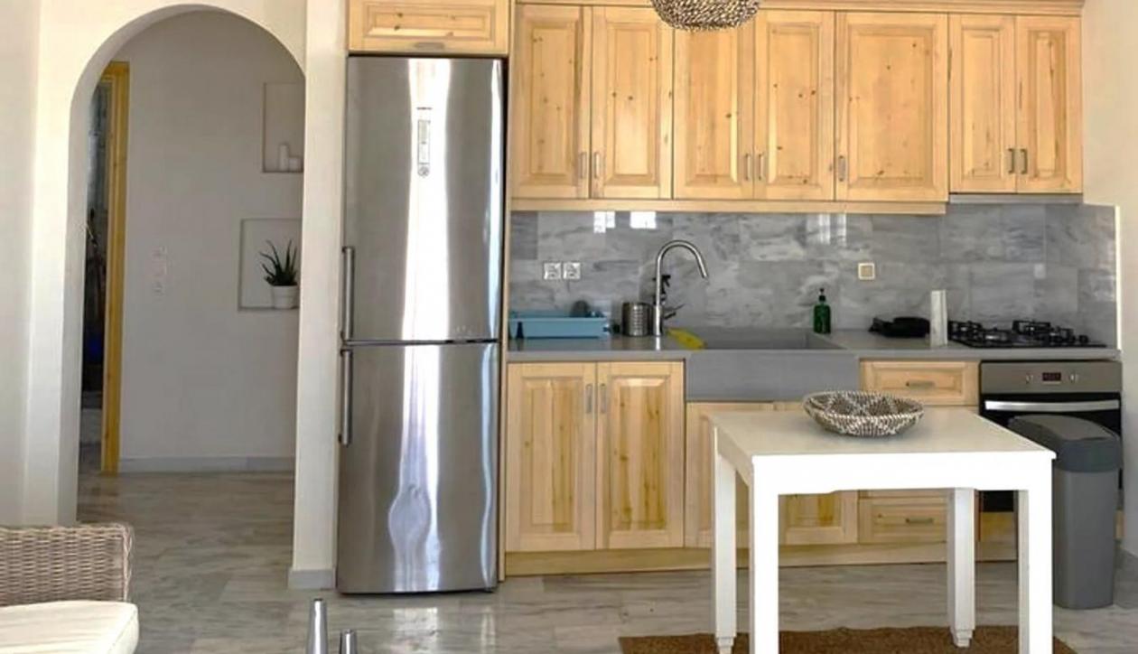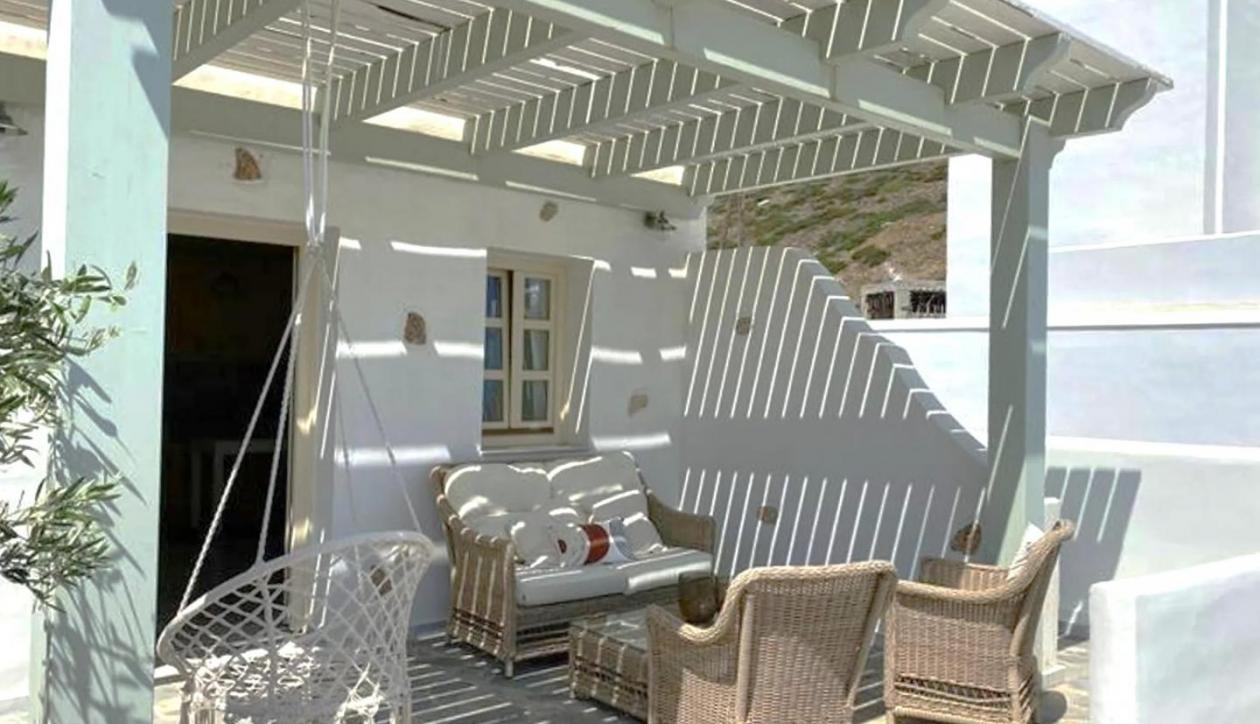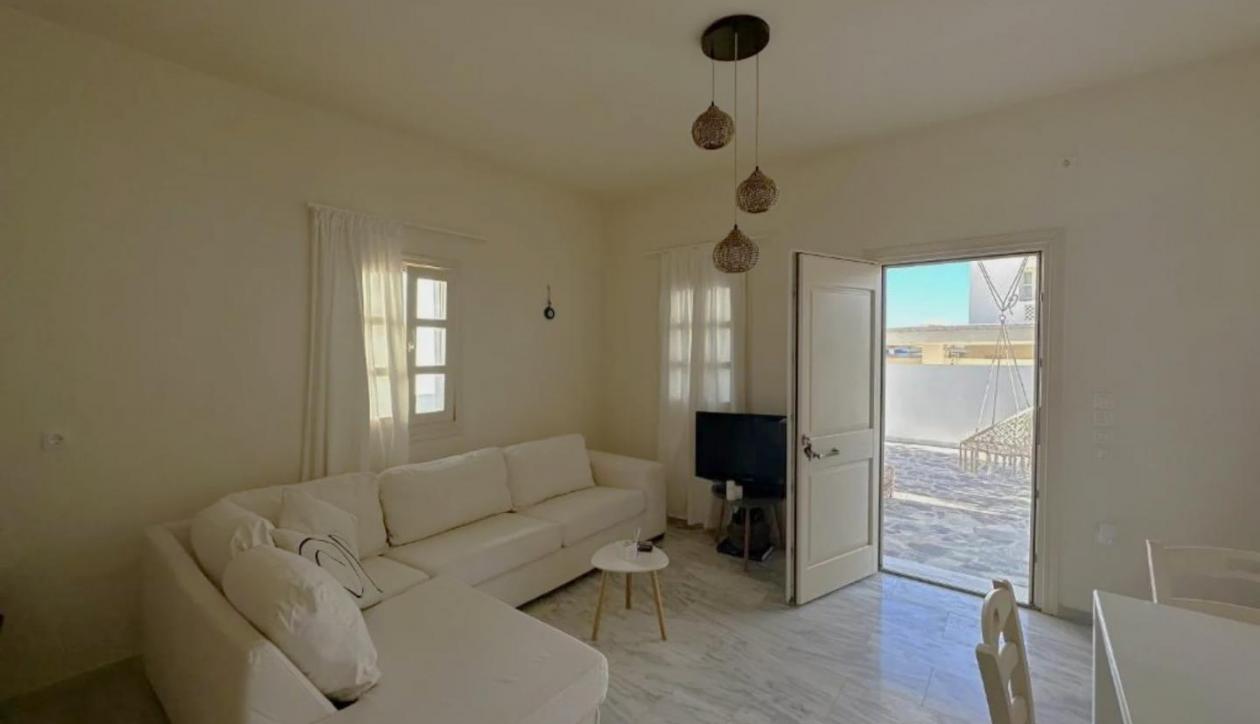The property features a spacious veranda and a rooftop terrace that invites you to unwind while taking in sweeping views of the Aegean Sea. Inside, the interiors are tastefully appointed, creating a warm and inviting atmosphere. Ideally located, the house provides effortless access to all the island’s amenities, as well as charming seaside tavernas and restaurants, while the beach is just steps away. The ground floor layout includes an open-plan living, dining, and kitchen area, two well-proportioned bedrooms, and a stylish bathroom. The rooftop terrace serves as a perfect vantage point to enjoy the surrounding landscape and coastal serenity.