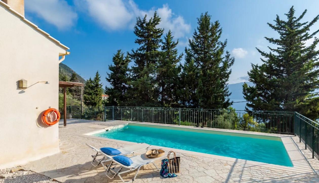 Step outside to a generous terrace that frames an 8x4m swimming pool, inviting relaxation and leisure. From here, enjoy breathtaking panoramic views of the Ionian Sea - an idyllic setting for sun-soaked afternoons and unforgettable sunsets.