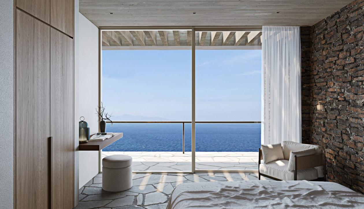 Each of the four generously sized bedrooms is complemented by a private ensuite bathroom, ensuring comfort and privacy for the residents, while two of them also boast expansive windows that frame breathtaking views of the Aegean Sea - a daily reminder of the villa’s privileged location.