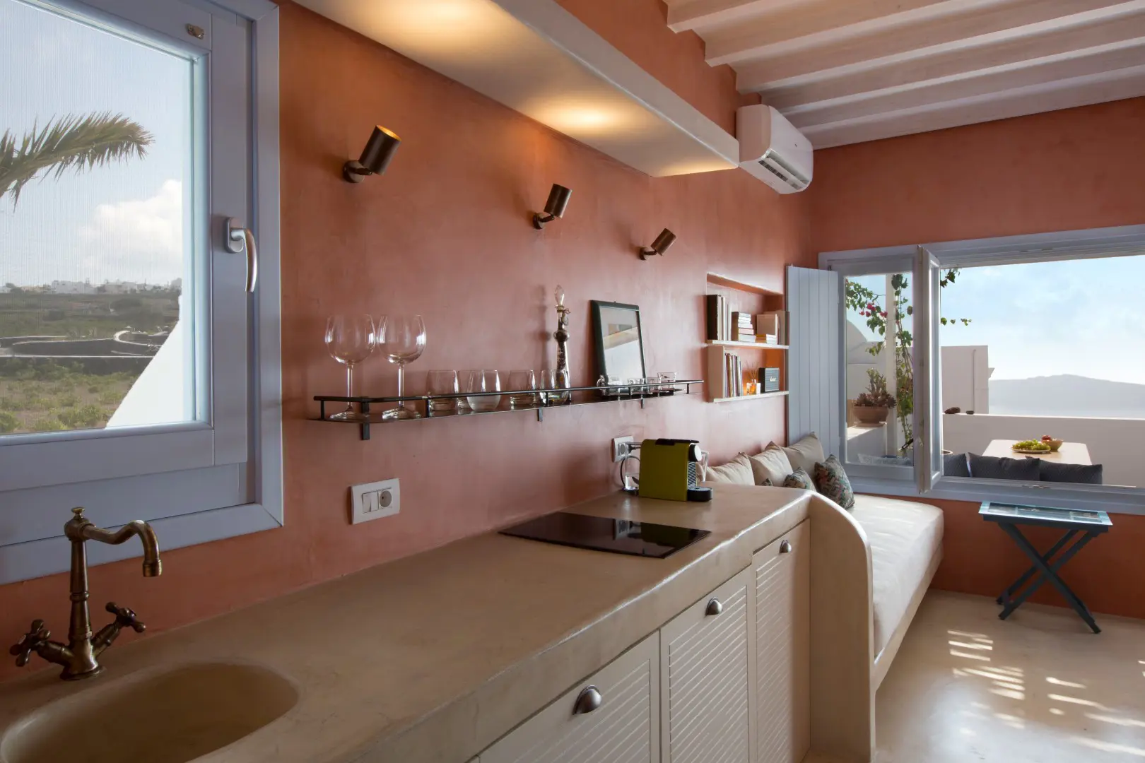 Oia always was and still remains one of the foremost tourist attractions of the Aegean Sea. The famous Oia sunset, considered by many as one of the most beautiful in the world, keeps tourists flocking down to the castle, waiting for the moment when the sun slips down on the calm sea of the caldera. Located in the centre of the village but off the main village path and reached by a few broad stairs, this house offers the combination of a central location with sea views. All of Oia is within an easy walk, including the famous Oia sunset, cafes, restaurants, private chapels and shops.