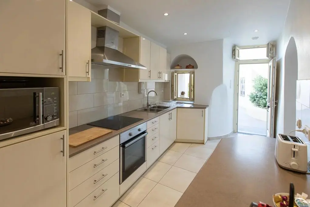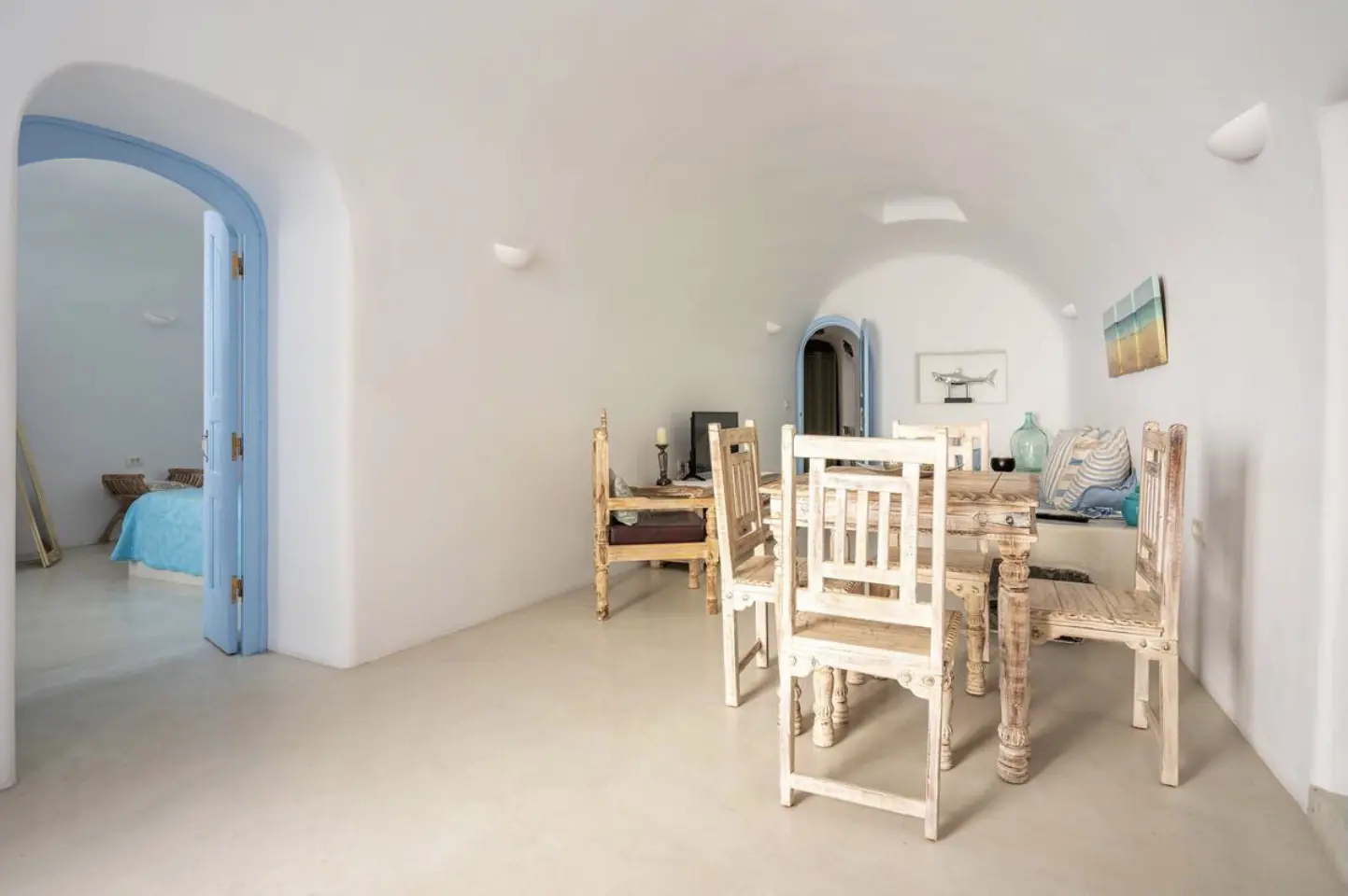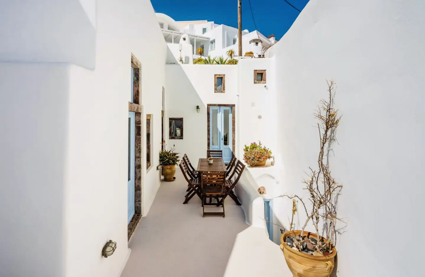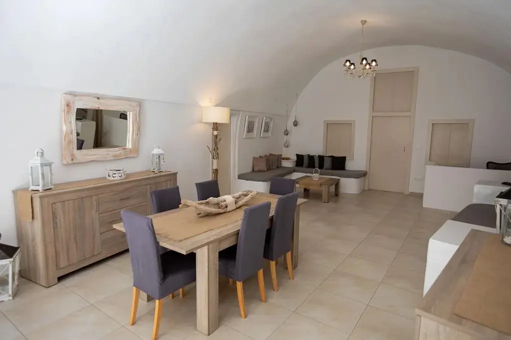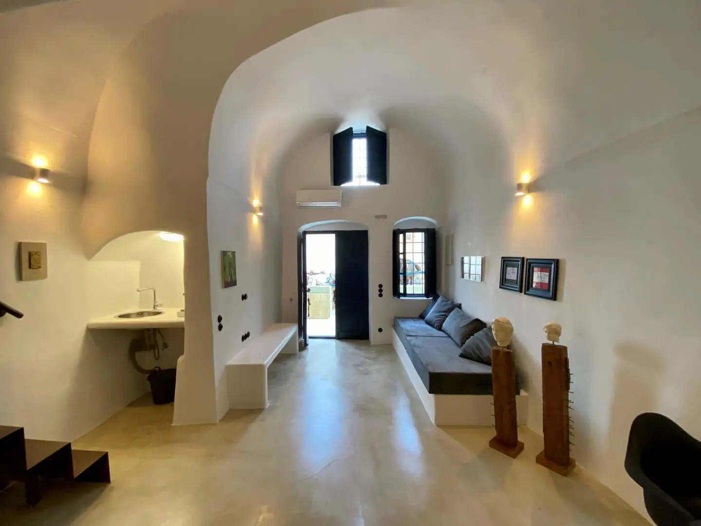 The property is located in a quiet area of the cliff-side village of Oia. The house is in the style of the very old traditional Oia village but with all the modern conveniences. It faces towards the sea, with a private terrace and a very large courtyard. It can generate substantial income for its owner, due to its multiple possible uses.