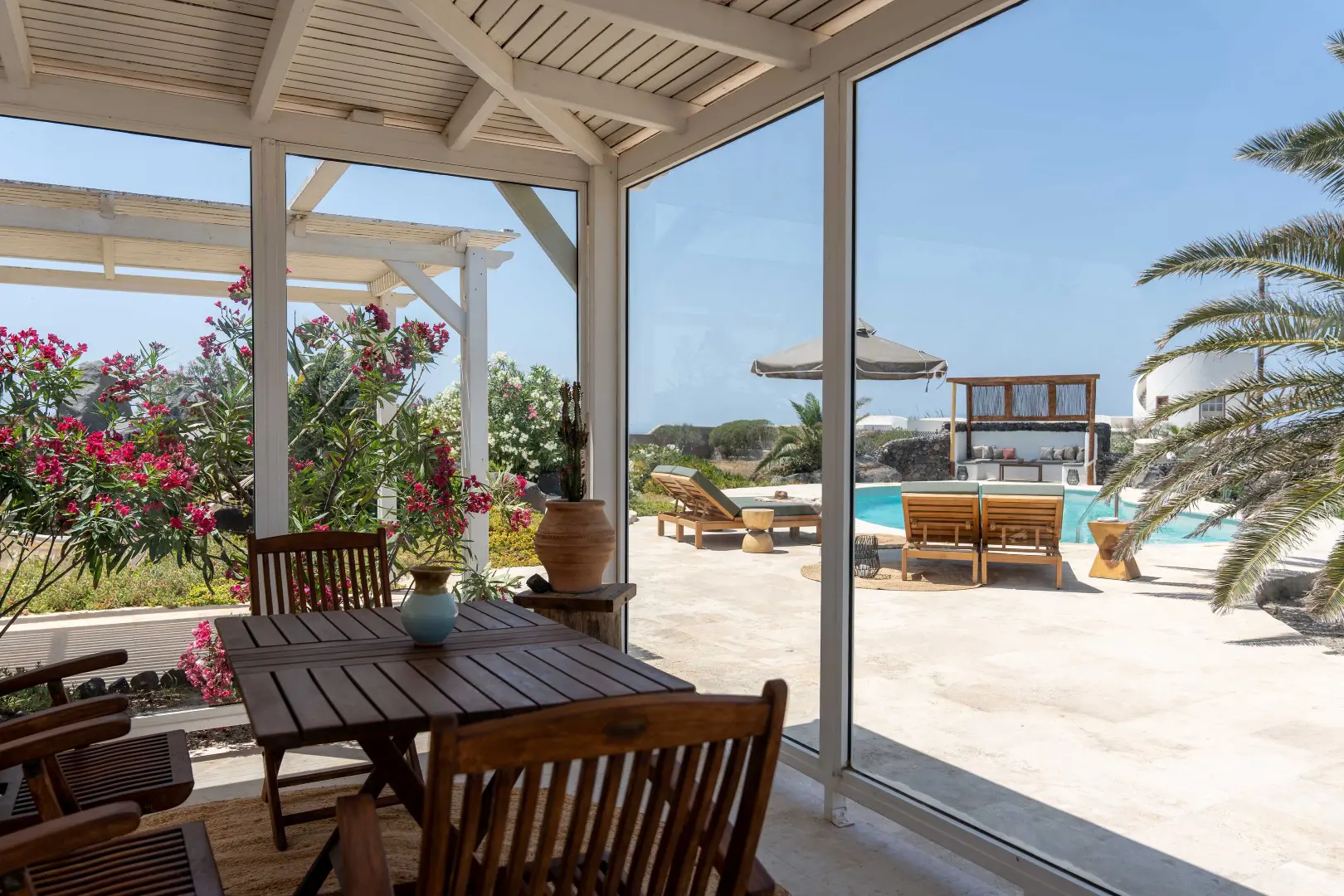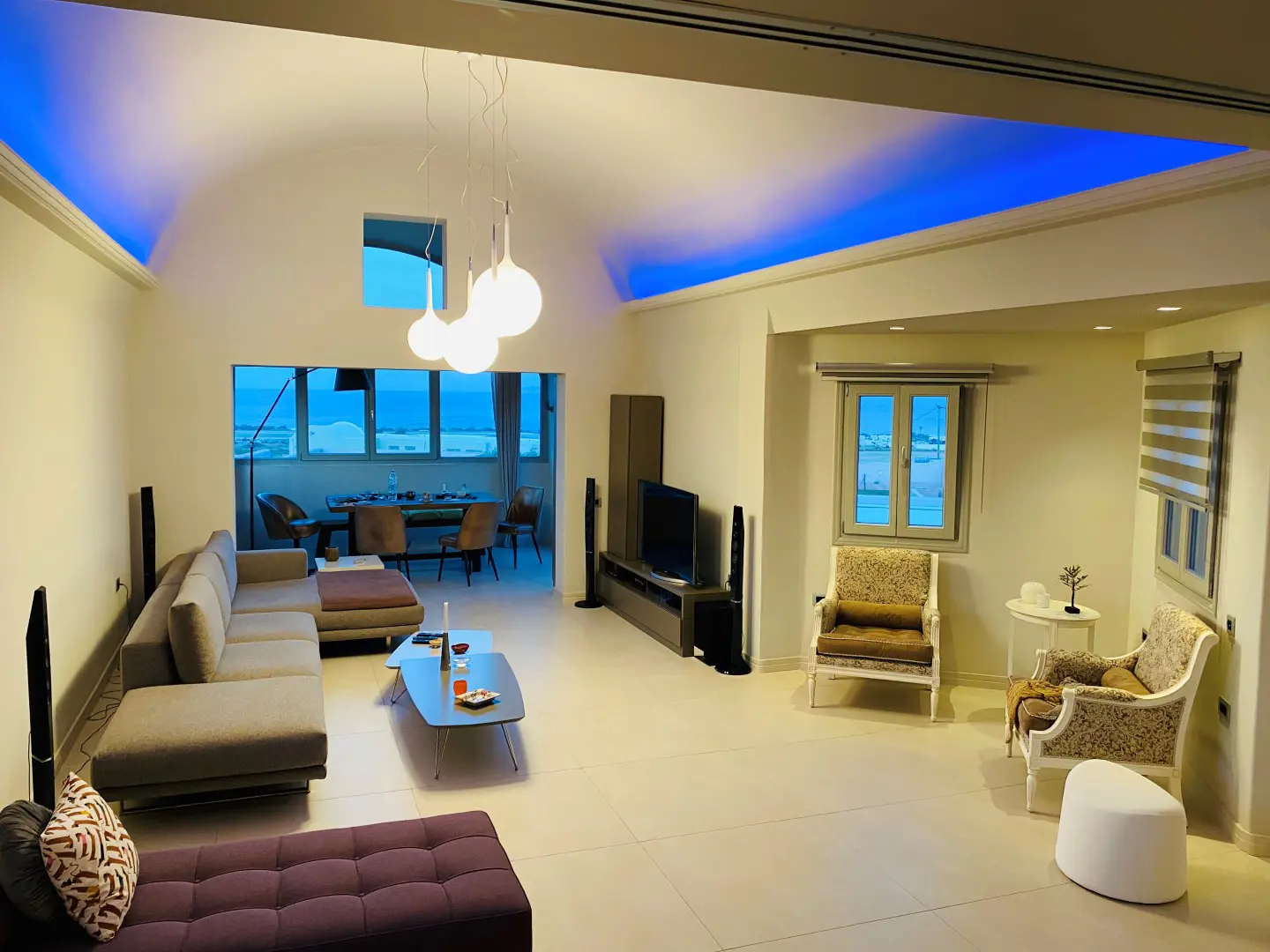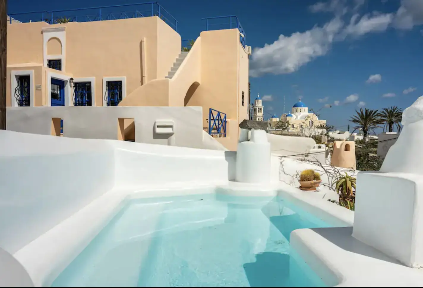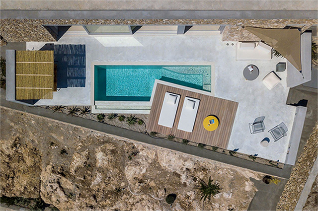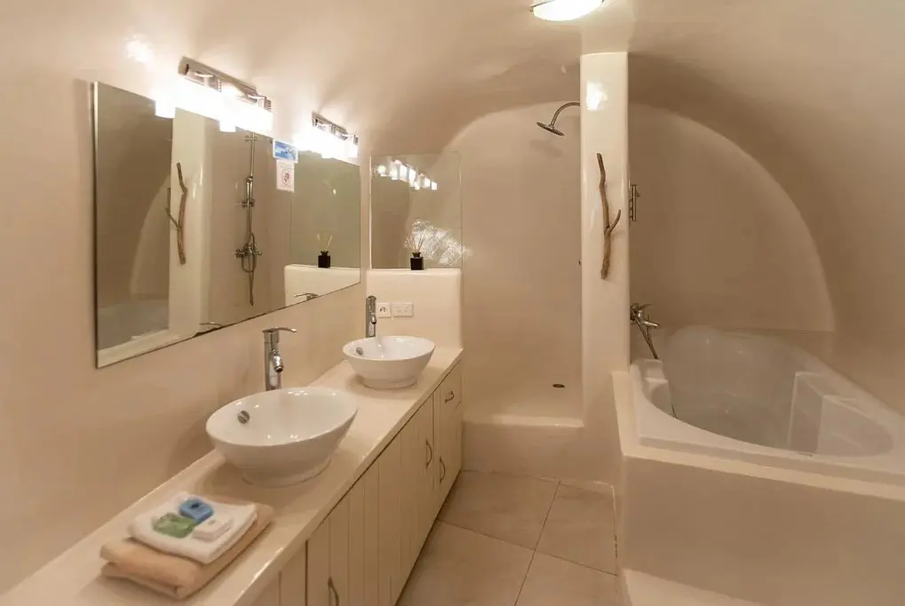 The property is located in a quiet area of the cliff-side village of Oia. The house is in the style of the very old traditional Oia village but with all the modern conveniences. It faces towards the sea, with a private terrace and a very large courtyard. It can generate substantial income for its owner, due to its multiple possible uses.