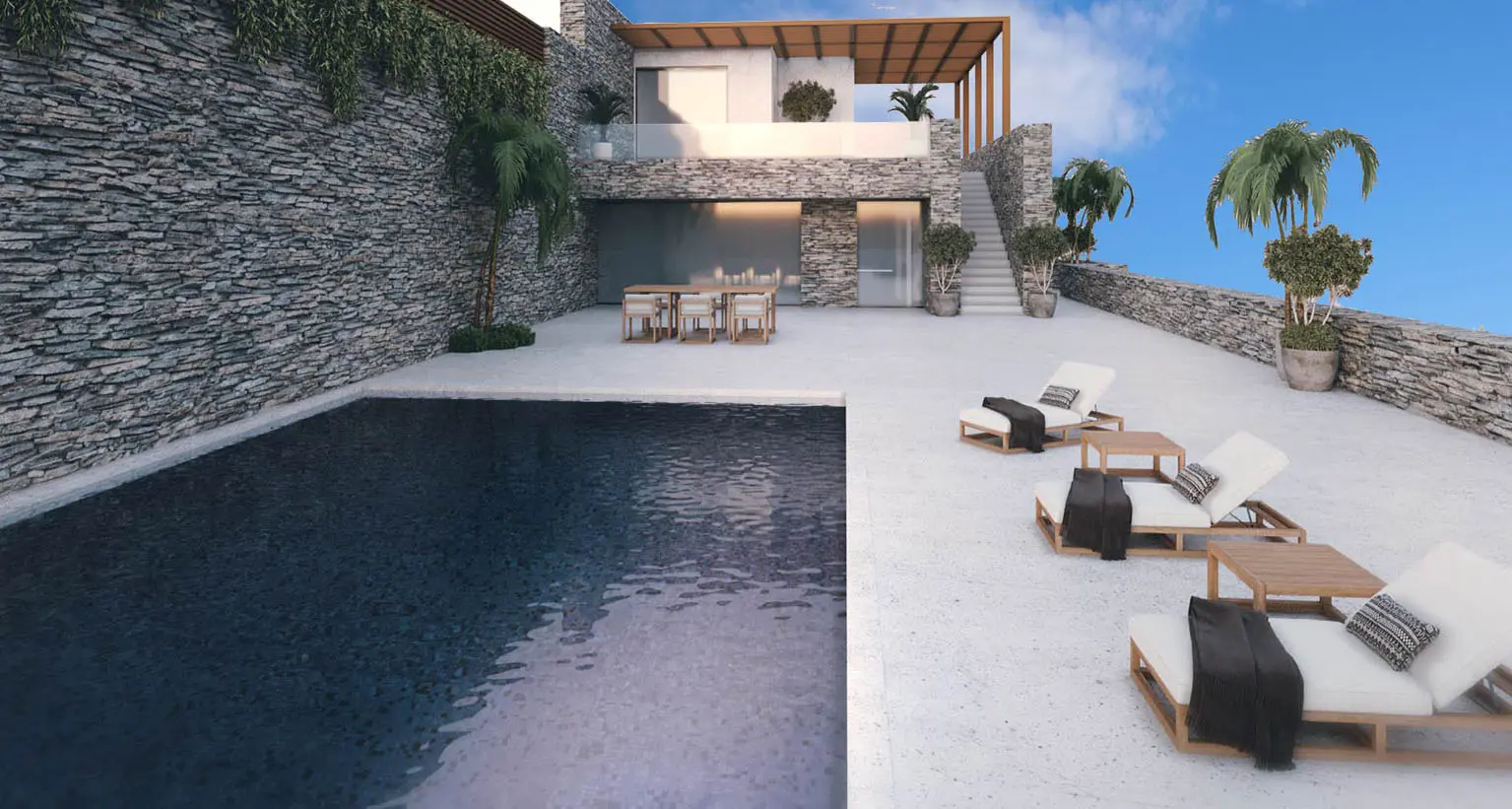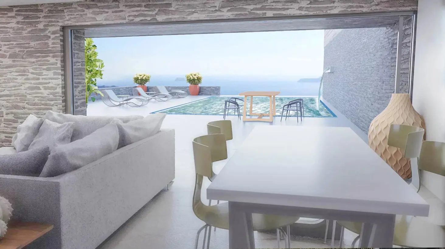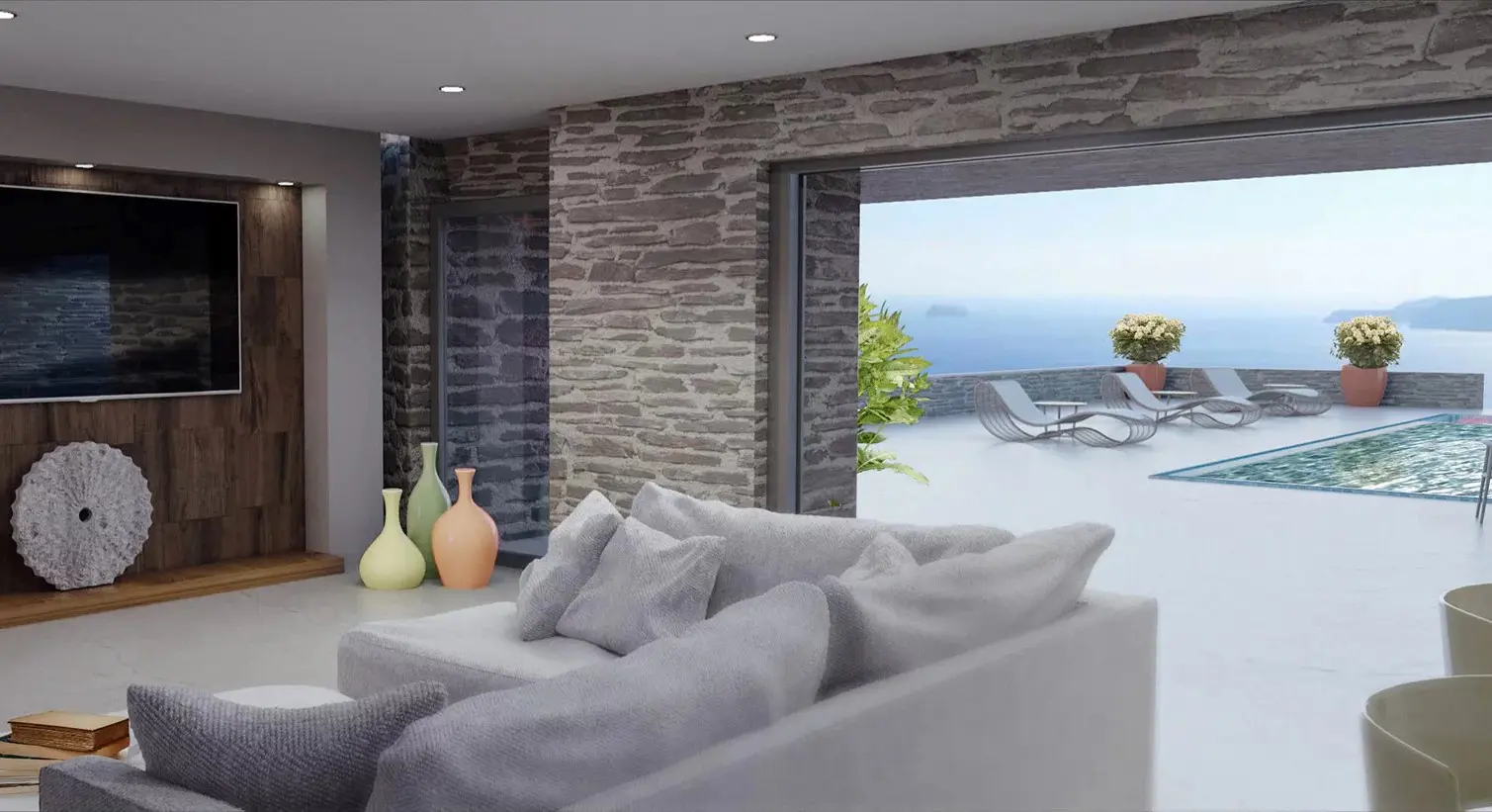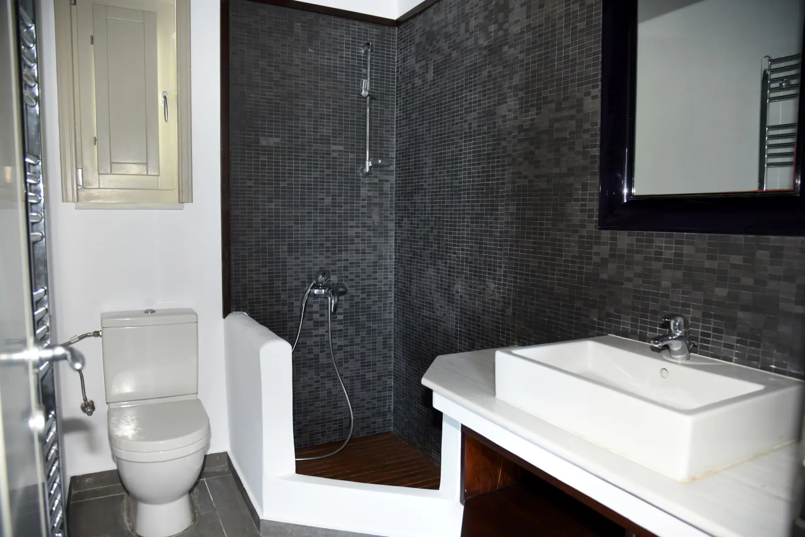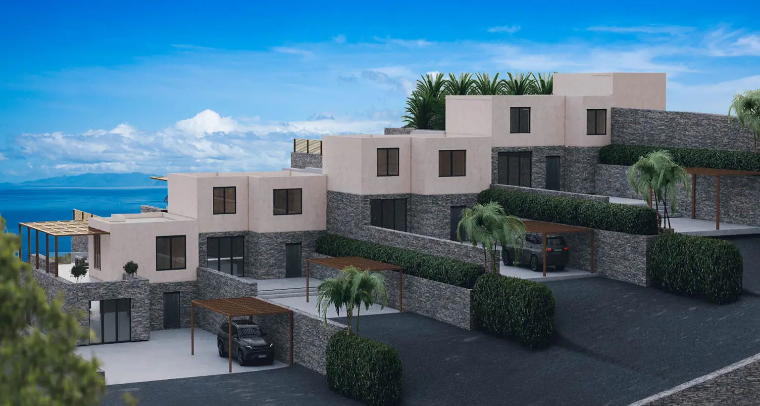 The property is situated on the hill slope of Apoikia, close to the Sariza spring famous for its mineral water, and offers panoramic views of the Aegean Sea and the surrounding hills. It contains the main residence, two old farm houses that have been turned into guest houses and a storehouse. It was built in the ‘40s and its architectural style refers to the noble tower-houses prominent in Andros over the course of three centuries (from 17th to the 19th). They belonged to the families of sea captains and were built in selected inland spots, thus offering protection from pirate invasions. They are characterized by a rectangular layout and they usually comprise three levels and a terrace. The residence has been fully renovated and has a central heating, two fireplaces and a fully equipped kitchen. The garden surrounding the residence and the total landscaping of the plot are a source of delight for the senses. The space around the main residence and the guesthouses is enclosed with a stone fence and has been paved with local stone interrupted by wonderful flower-beds. It has outdoor sitting facilities including a beautiful white marble dinner table, a BBQ and a large parking area. The rest of the plot is divided into terraces supported by dry stone walls that follow the inclination of the ground and is filled with olive and citrus fruit trees, flower and vegetable gardens.