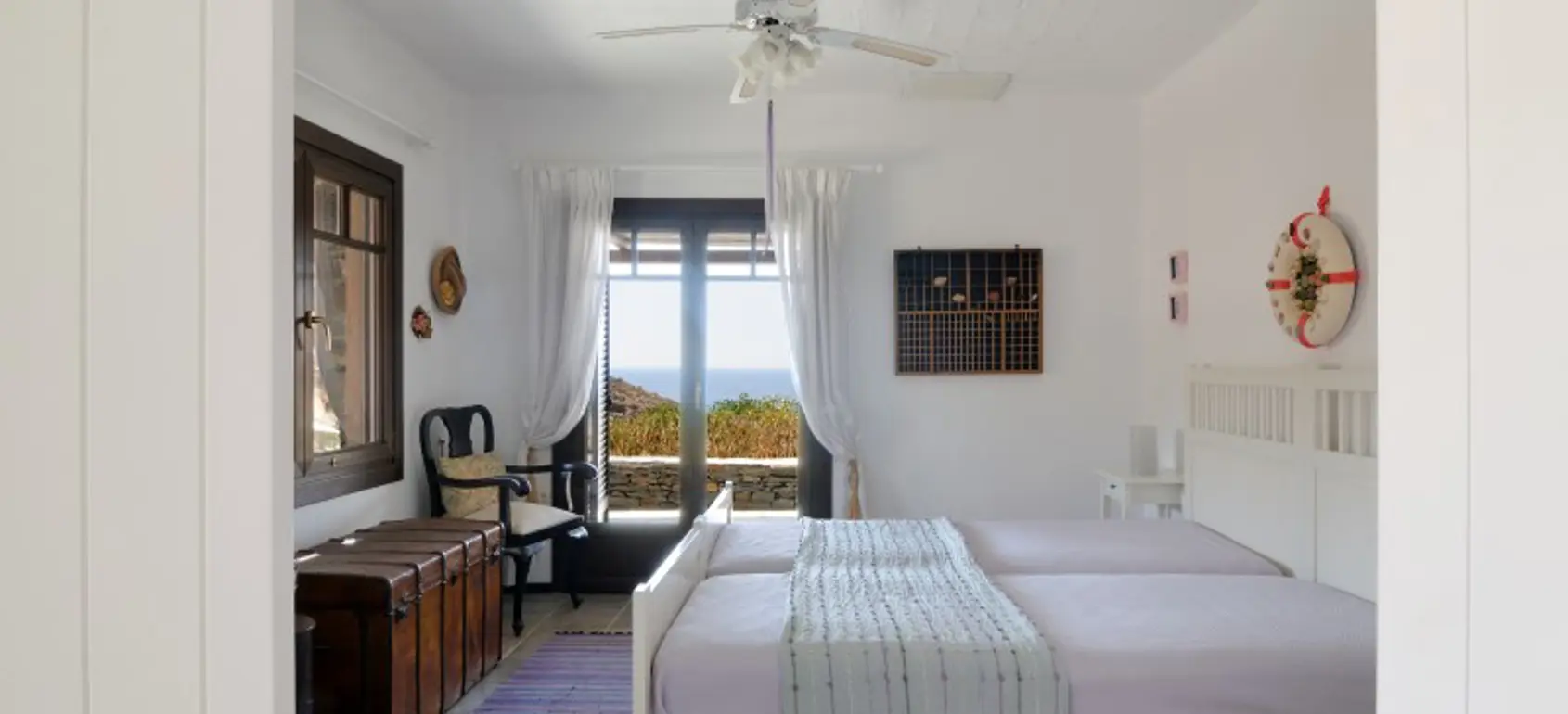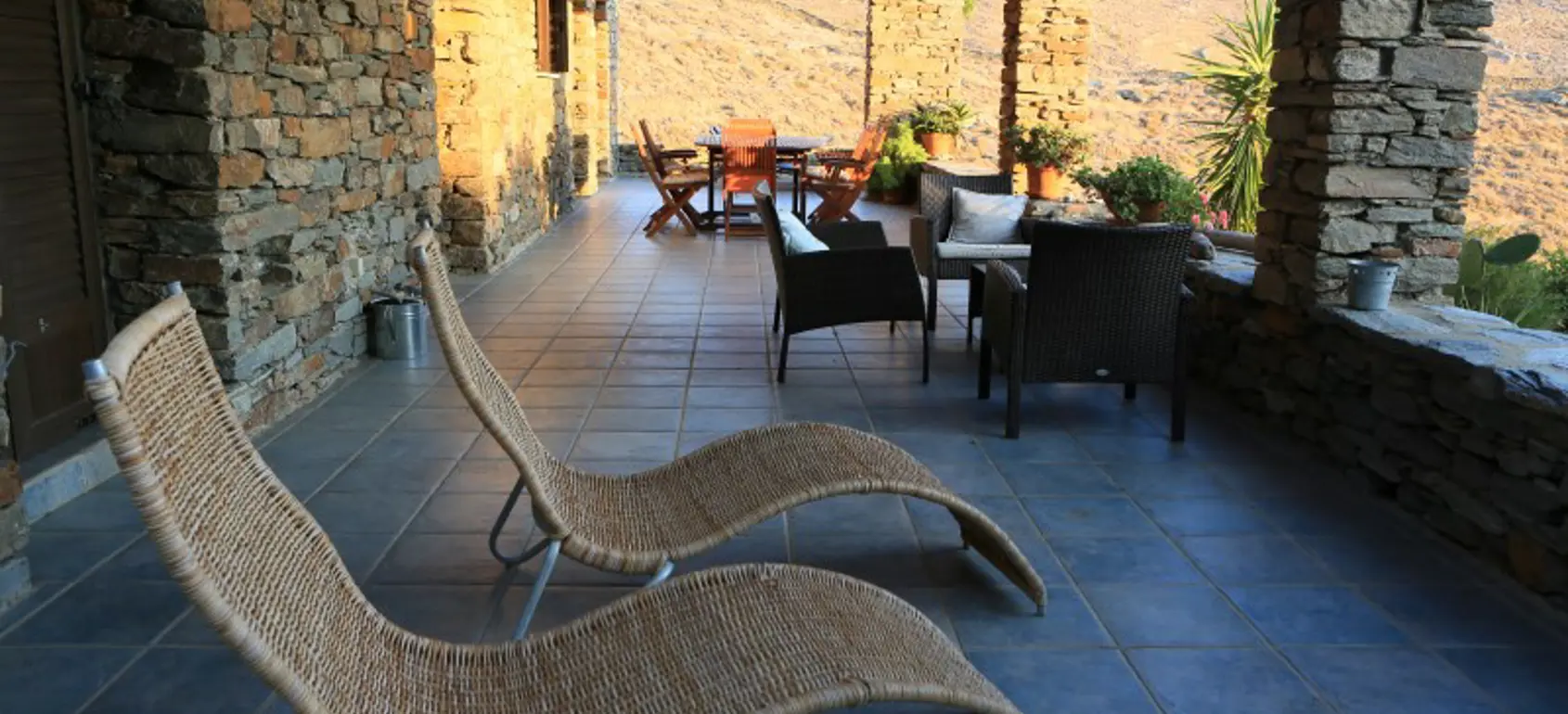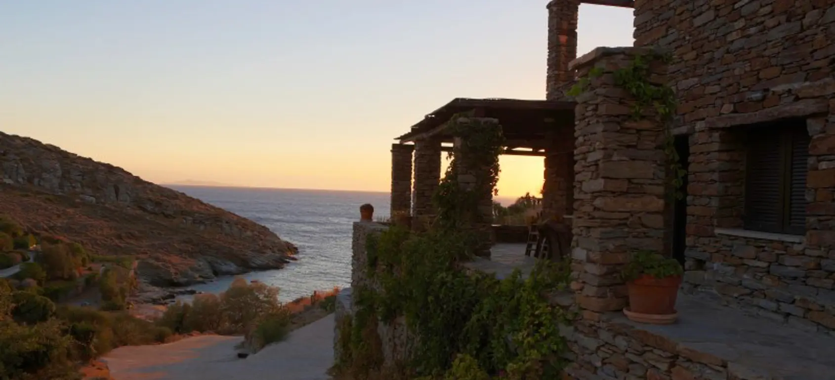 This seaside year-round home offers immediate accessibility from Athens, high standards of living and enjoyment of the outdoors and indoors year-round, built to high technical standards & materials to provide comfort, withstand extreme weather conditions (salt, wind, sun, rain) in the depth of time, minimize maintenance and operational cost and respect the surrounding environment and local ecology. The great advantages of this property is its amazing proximity to the beach, sense of really being close to the water (sounds, smell), tranquillity, autonomy amazing sea views and solid, issue-free construction and a brand name property on the rental market for several years with significant returns. The Villa sits on its own terrain of 4,190 sq meters on the north-west side of the Kastellakia Bay, some 12 meters above sea level, facing south-west into the sunset and well sheltered from the NE meltemi winds. At the upper level with total living space of 96 sqm, there is a living room with a fireplace, an open-plan kitchen, 2 bedrooms, 2 bathrooms (one en-suite). The house features ample shaded front and back terraces with pergolas & reed and a staircase to the roof for dreamy views. At the garden level there is an independent apartment of 79 sqm with 2 bedrooms, 1 bathroom, a living room & a full kitchen with sweeping sea view. A fully grown garden (olives, succulents, trees, shrubs) surrounds the villa.