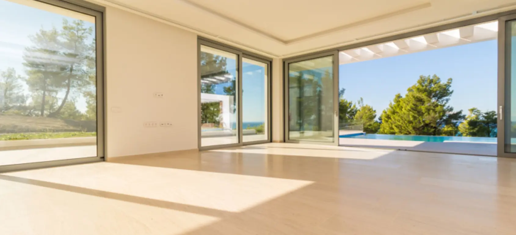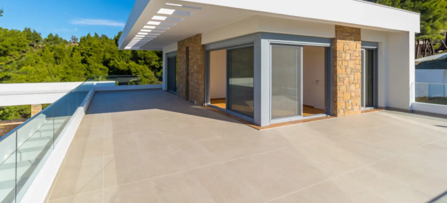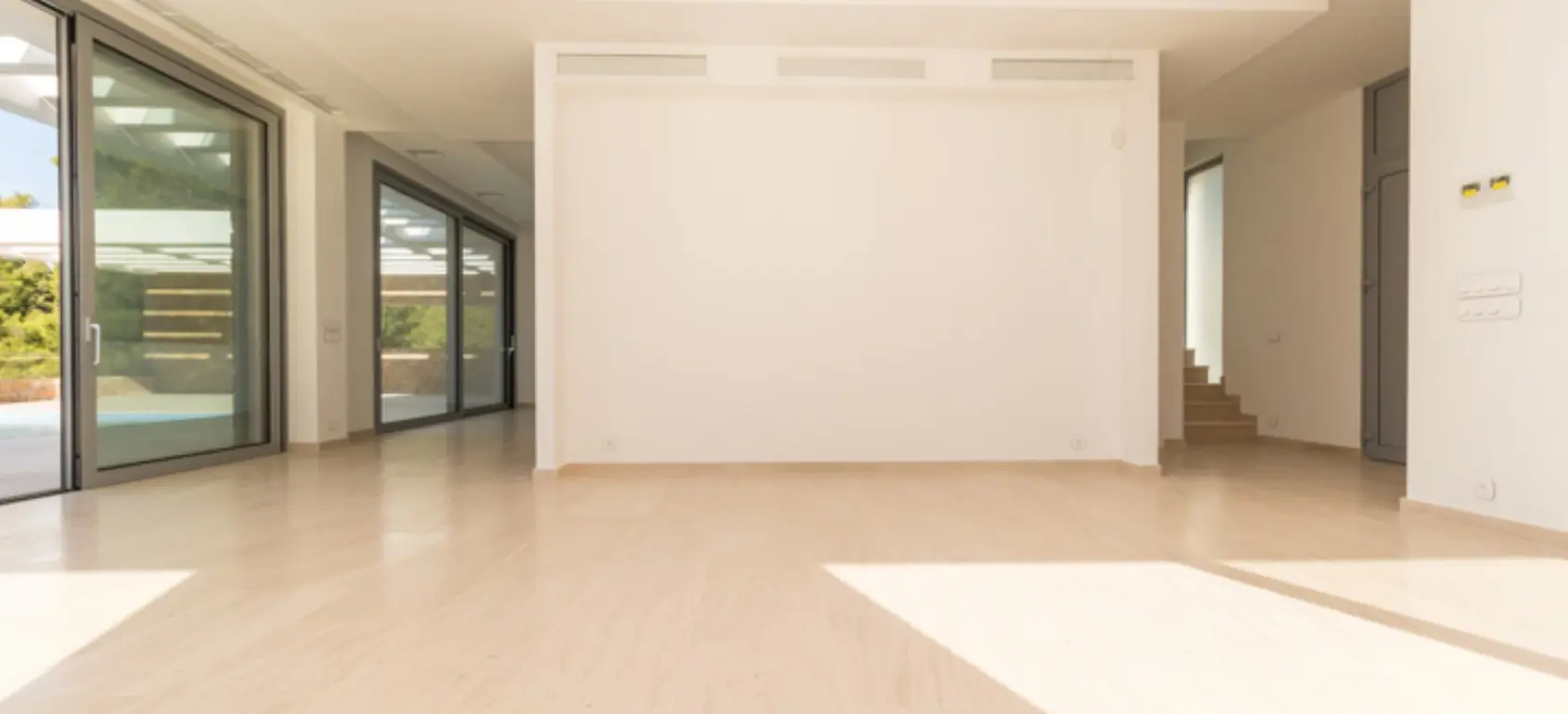These newly built modern homes have a total built area of 350 sqm and are situated in plots of approximately 5,000 sqm, each. Each villa consists of 3 levels and accommodates a large living room, a separate dining area, a kitchen and seven large bedrooms with en-suite bathrooms. There is also a separate guest toilet, as well as storage space and laundry facilities. At the ground floor there is a large balcony of 110 sqm: an ideally area for relaxing, reading, sunbathing or simply enjoying the unique landscape.