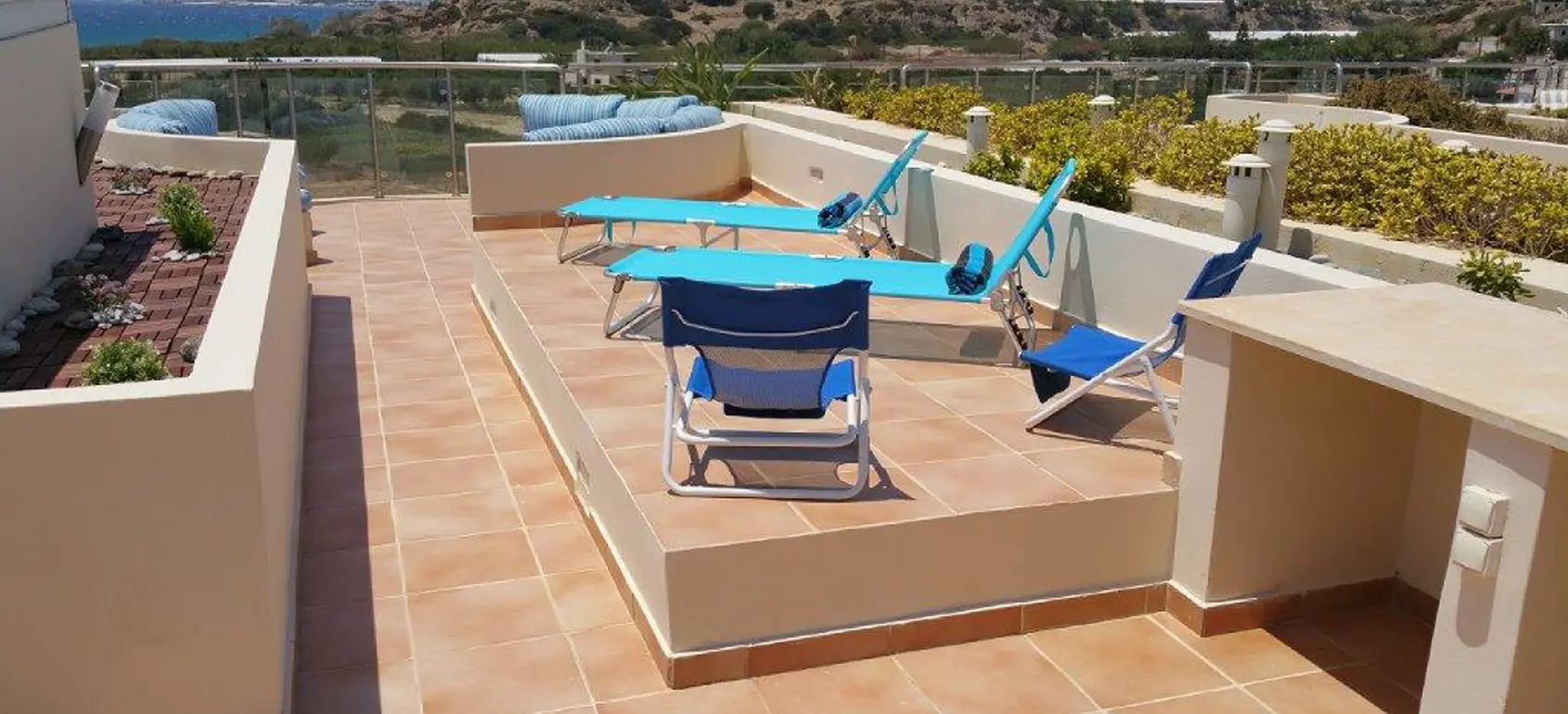 Stairs just outside the door of the penthouses lead up to a beautiful roof terrace perfect for taking in the fantastic views or to enjoy the Cretan sunrise/sunset.