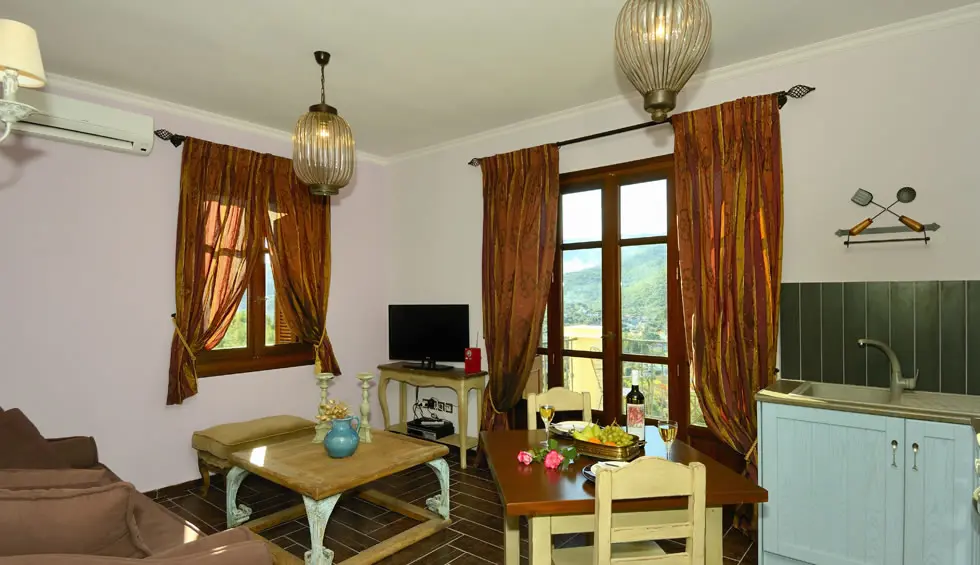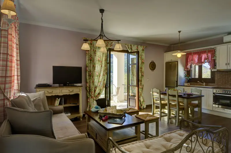 Situated on a 2,500 sqm fully landscaped plot and with a backdrop of the Pindos Mountain range it offers not only an incomparable holiday destination, but mainly an incredible property to acquire. The location of the property is sufficiently advantageous. Being on the outskirts of the village of Domnista, it ensures quietness and tranquillity at a small distance from many important services. Domnista is a small village of 50 permanent residents that thrives in the summer with more than 2,000 visitors. The good quality of the road network allows for small trips to nearby attractions, such as the Evinos Lake, the famous ‘Panta Vrehei’ gorge known for its amazing waterfalls and the city of Karpenissi.
