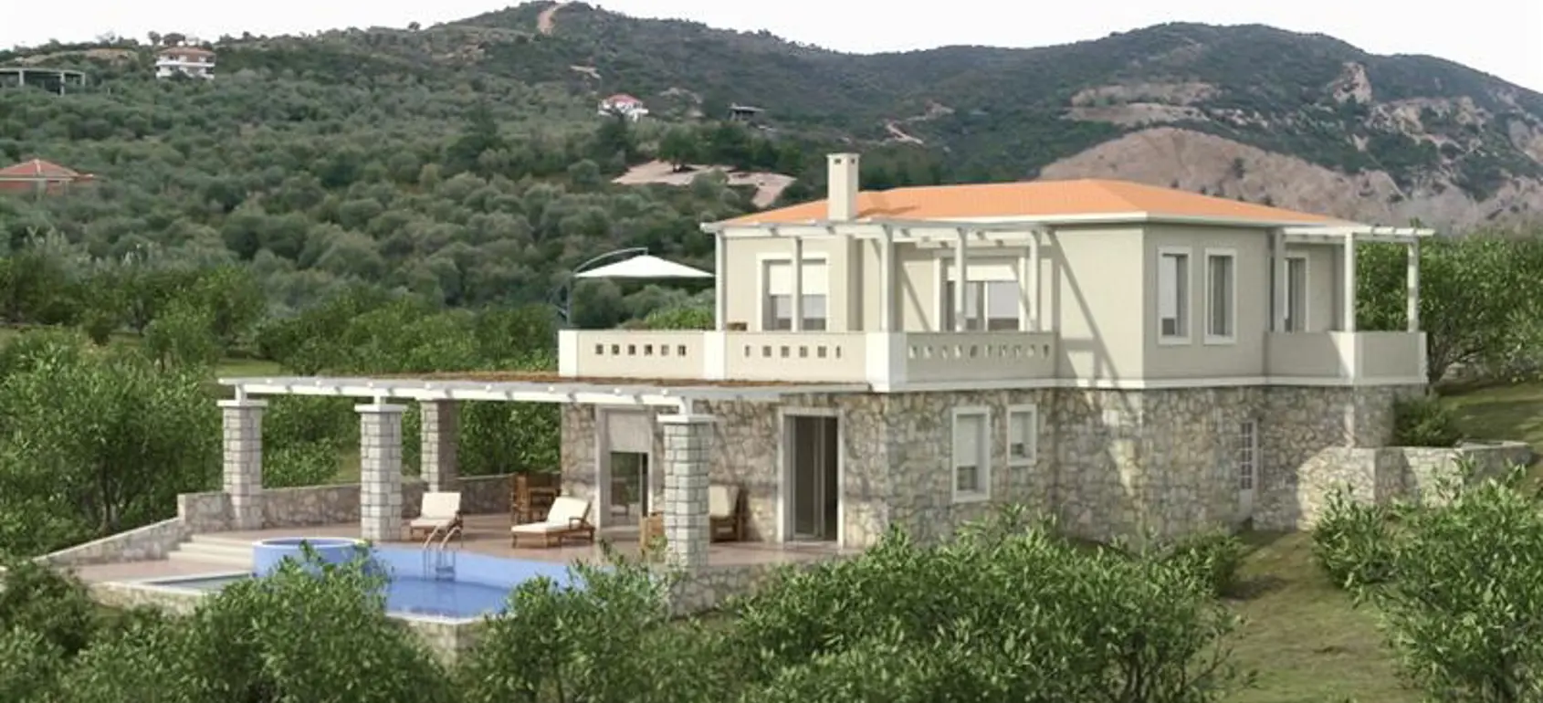 The property is a 15,600 sqm land plot above a small private beach, covered by plenty of olive and pine trees. The proposed construction scheme includes 6 independent homes of 120 sqm, each within private plot, landscaped into a beautiful garden. Every villa will feature a private swimming pool and endless sea views from the plot and the interior spaces. The villas have closed parking spaces and a private heliport could also be in the disposal of the inhabitants of the villas. The architectural design of the villas fits perfectly in the picturesque landscape through the extensive use of local stone, while the combination of classic with traditional elements is unique. The unlimited, magnificent view to the sea, the rich vegetation and the tranquillity of the area create a perfect environment for relaxing while, due to the potential of the area and their high construction quality, the villas could be inhabited throughout the whole year.