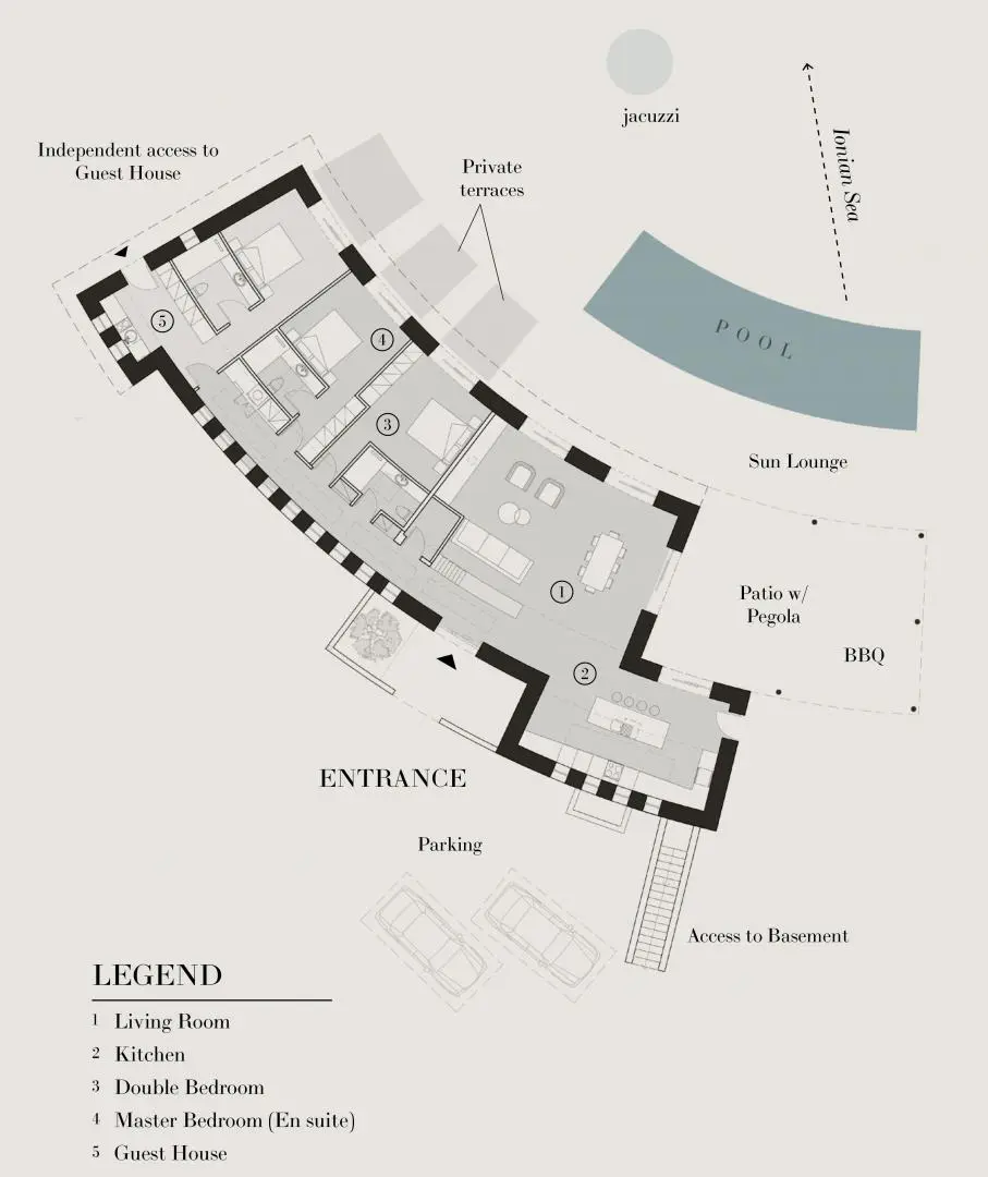 Kefalonia is one of the most popular destinations of the Ionian Islands and the biggest island of the group. The Island has many wonderful beaches with fine sand and turquoise, bleach-like waters specific to it. Some of its many beauties are its picturesque villages, its National Park on its highest mountain (Mount Ainos) on which a rare species of fir forest grows and terrific landscapes. The property is located on the southwest of Kefalonia Island, close to the airport and the village of Argostoli. The island is well connected with the mainland and other Ionian islands by plane and by boat and there are numerous charter flights connecting Kefalonia daily with a number of European destinations, especially during the summer months.