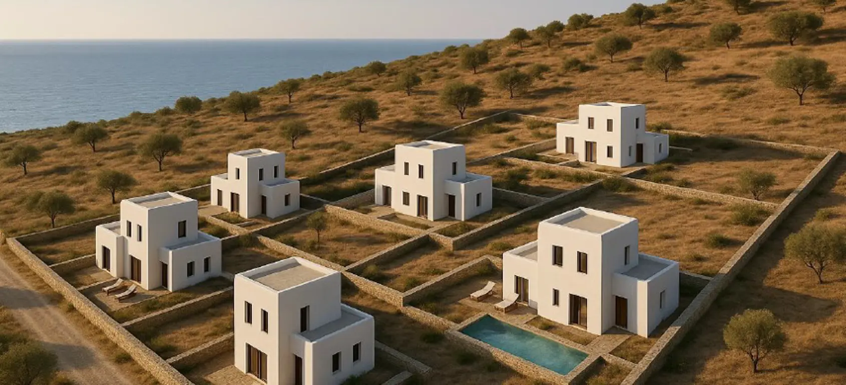 Drawing inspiration from Skyrian architectural purity and Cycladic craft, the retreat offers a timeless blend of design, sustainability, and cultural rootedness - perfect for discerning travellers seeking authentic, elevated experiences. Built for design, wellness, and timeless returns. Set in the serene landscape of Pefkos Bay, Skyros, this premium 47,000 sqm (approximately 5-hectare) land plot offers exceptional investment potential. It is fully equipped with connections to electricity and water, making it ideal for immediate development. With over 20% of the land zoned for construction—equating to approximately 10,000 sqm, with the possibility for expansion pending updated regulations—it presents a unique opportunity for the development of luxury villas, boutique resorts, or other commercial projects in one of the Aegean’s most unspoiled coastal settings.