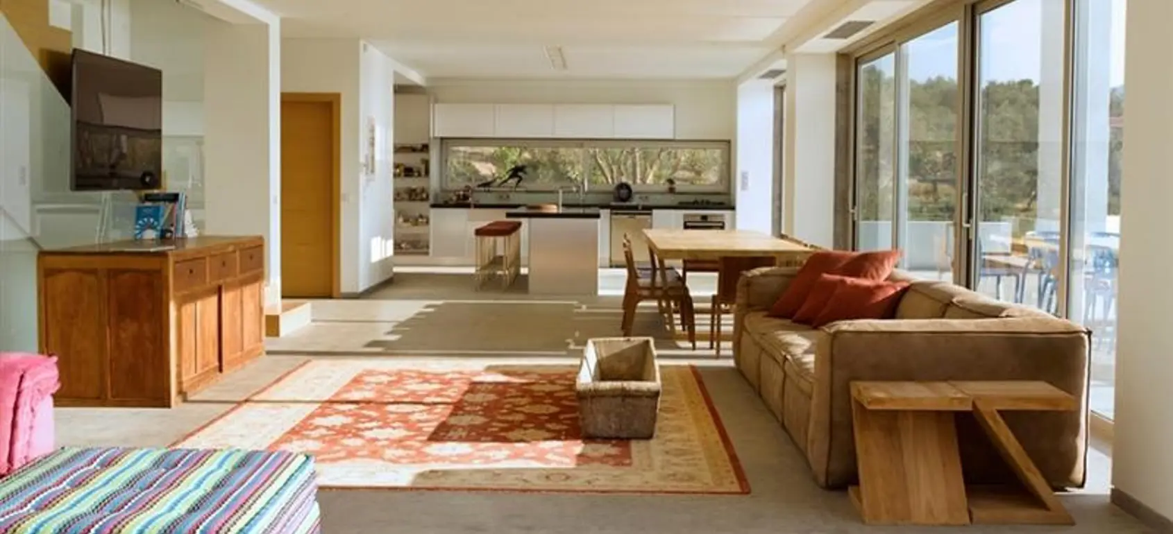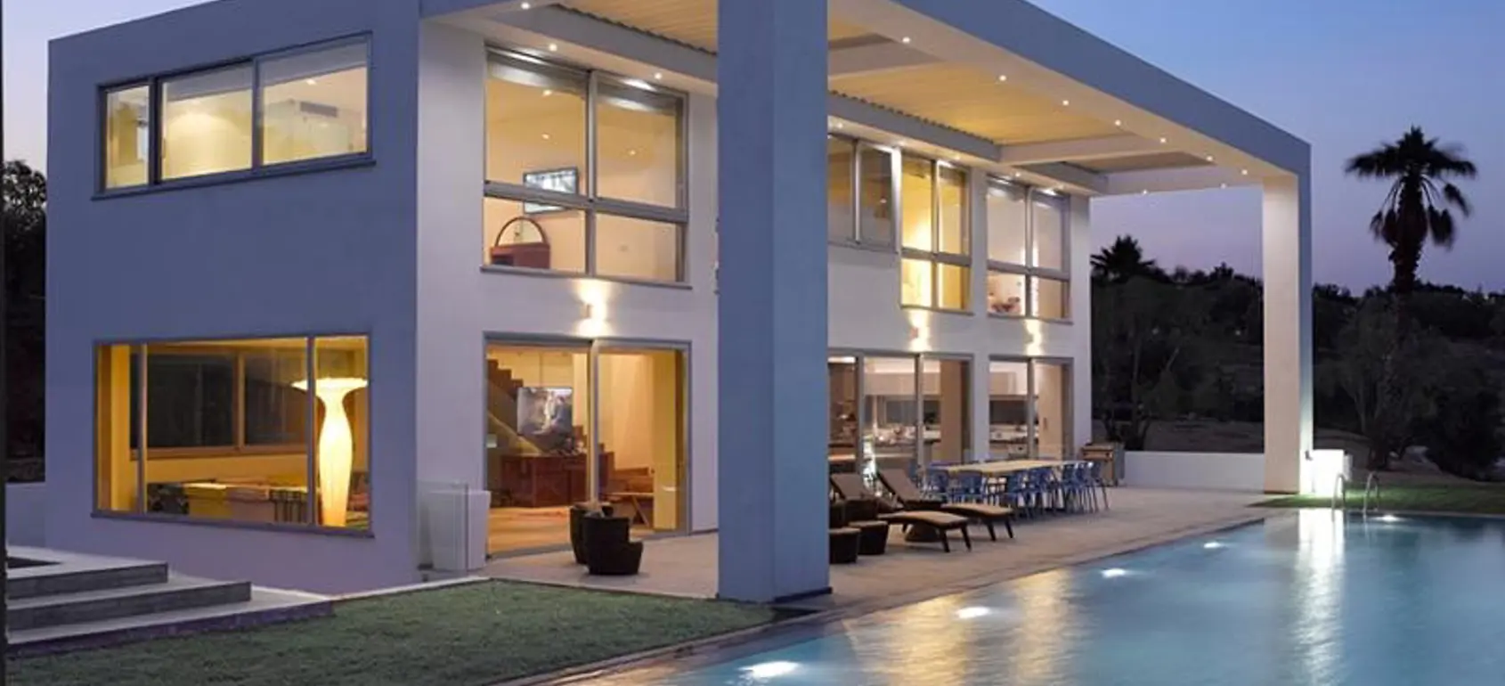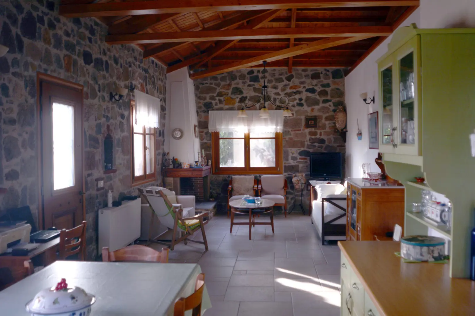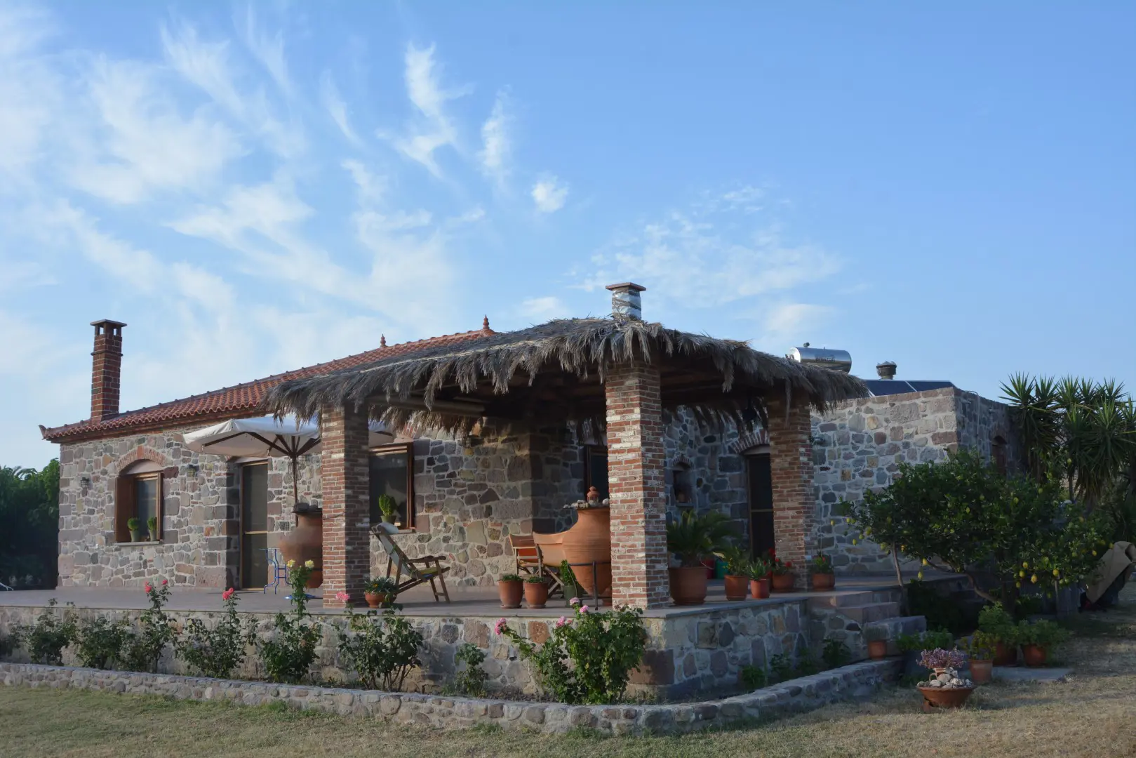 The modernly designed villa comprises of 2 floors and a lower-ground level with 5 bedrooms and 6 full bathrooms, totaling over 500 sq. meters. The villa is situated in a 4,000 sq. meter of garden and terrace garden, featuring a half size Olympic pool, jacuzzi and a private pathway to the sea and floating dock. The villa is just 30 meters away from the Aegean seafront and 25 minutes away from Mitilini Airport. Due to its superb location, offers the possibility to anchor any sized yacht in any sea condition, in that bay, right in front of the property. The Villa’s water supply comes from its own well. It comes fully furnished and equipped with top of the line appliances and amenities. The villa has been constructed to the highest standard using the most luxurious decor, fittings and fixtures. The interior is furnished with contemporary high end furniture and bright decor. The huge living space is extremely well equipped with the latest technology. This includes satellite TV, high speed Wifi, security alarm, oversized kitchen appliances, BBQ. Each room has its own temperature controlled a.c through a central system. The infinity pool is catered for both professional sports training as well as recreational swimming. The water is 40% sea water and 60% sweet water. There is no need to add any chemicals as the pool system produces a natural chlorine effect from the salt of the seawater. Just by the pool there is a vast Jacuzzi that can accommodate up to 10 people. The villa overlooks the picturesque bay and the peninsula, behind spreads the Aegean Sea. The area is a coast-lined oasis in an olive forest, with beautiful views of lush green trees and sea-blue waters.