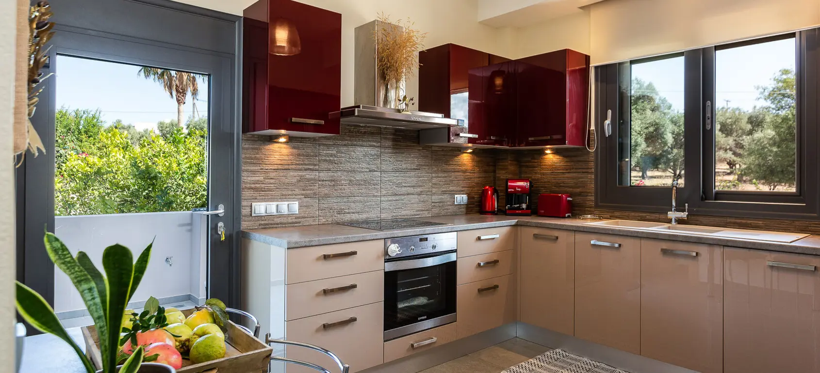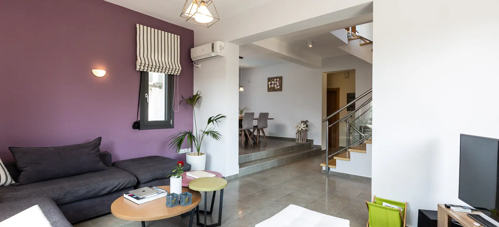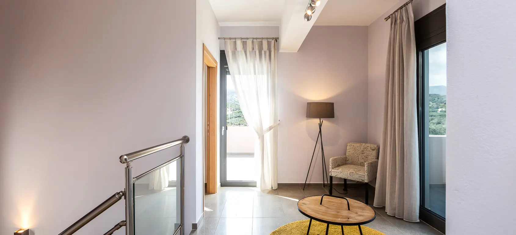 The villa is perfectly positioned between coastal relaxation and cultural charm. Located in Adelianos Kampos, the surrounding area offers easy access to beaches, shops, and essential amenities. A short drive brings you into Rethymno’s historic old town, where cobblestone streets, Venetian architecture, and waterfront dining await.