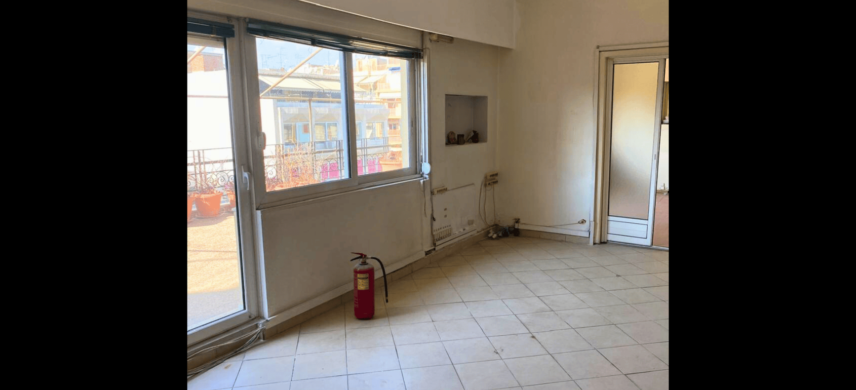 The current floor plan includes five bedrooms, an independent kitchen, one full bathroom and one WC, offering flexibility for reconfiguration into a contemporary home, multi-bedroom rental unit, or office/commercial space. A standout feature is the generous 50 m² private balcony with impressive city views, enhancing the property’s indoor–outdoor appeal.