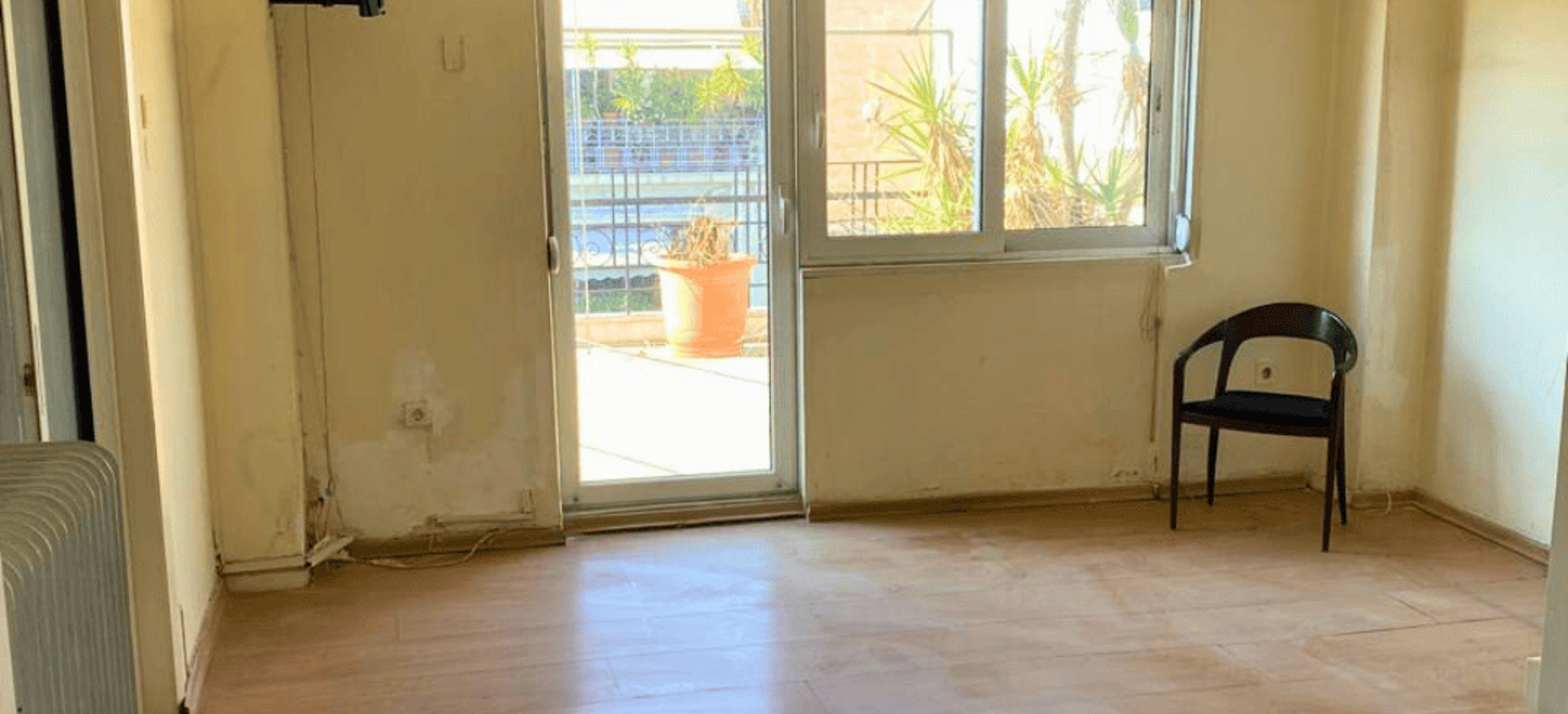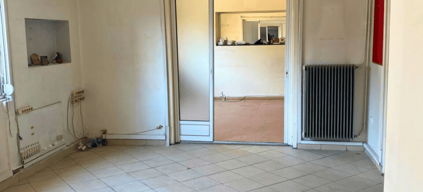 Despite needing refurbishment, the apartment retains its charm, including high ceilings, large windows, and airy, sunlit rooms. The secure door, elevator, and double-glazed aluminium frames add to its potential.