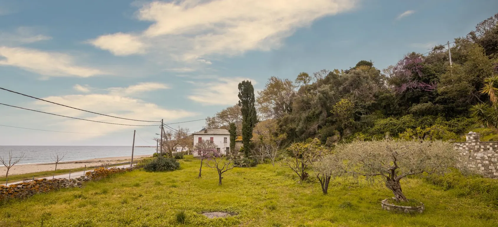 Set on a generous 1,057 m² plot, this unique seafront property comprises three traditional stone buildings dating back to the 1880s. The two-storey main house of 153 m² retains elements of its original Pelion-style roof and traditional interior layout. A second 134 m² building—once an olive mill—features impressive ceiling height and a flexible footprint ideal for conversion. A third 29 m² stone structure provides additional scope for auxiliary use.