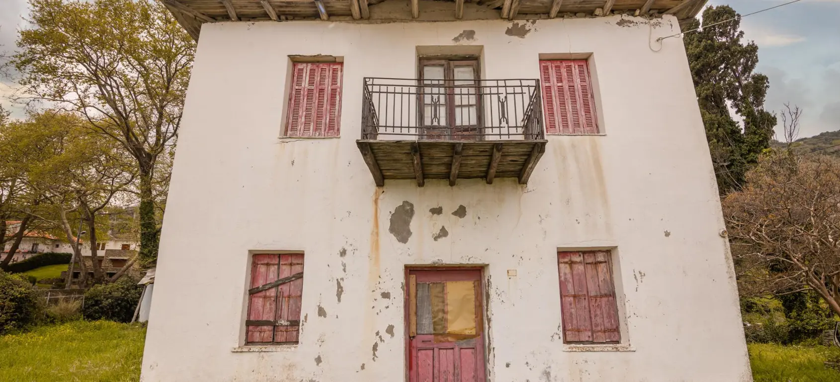 A rare 1880 stone residence on the Aegean shoreline, offering three historic structures and exceptional restoration potential.