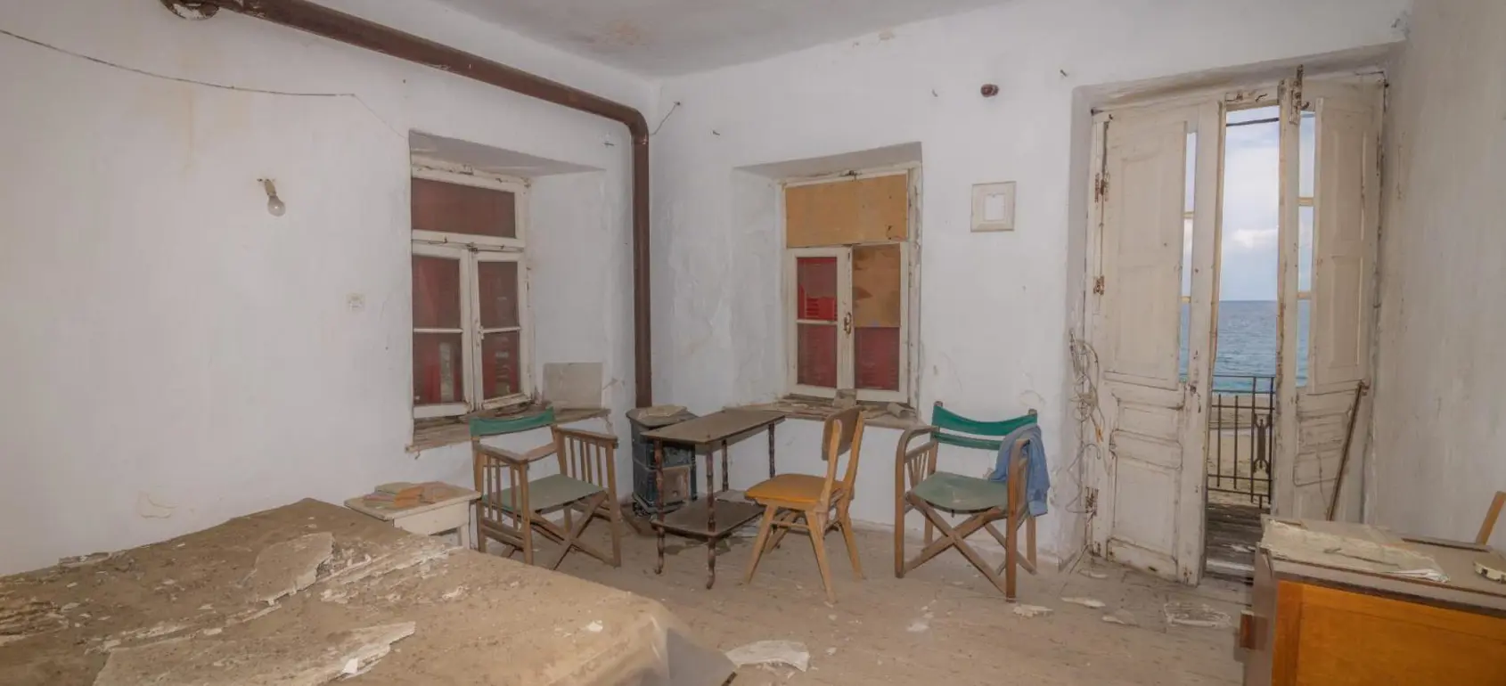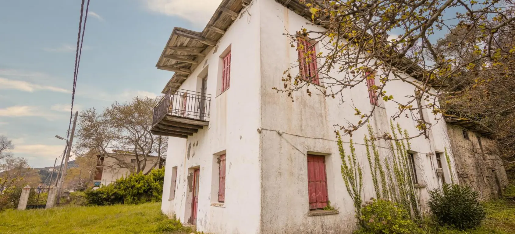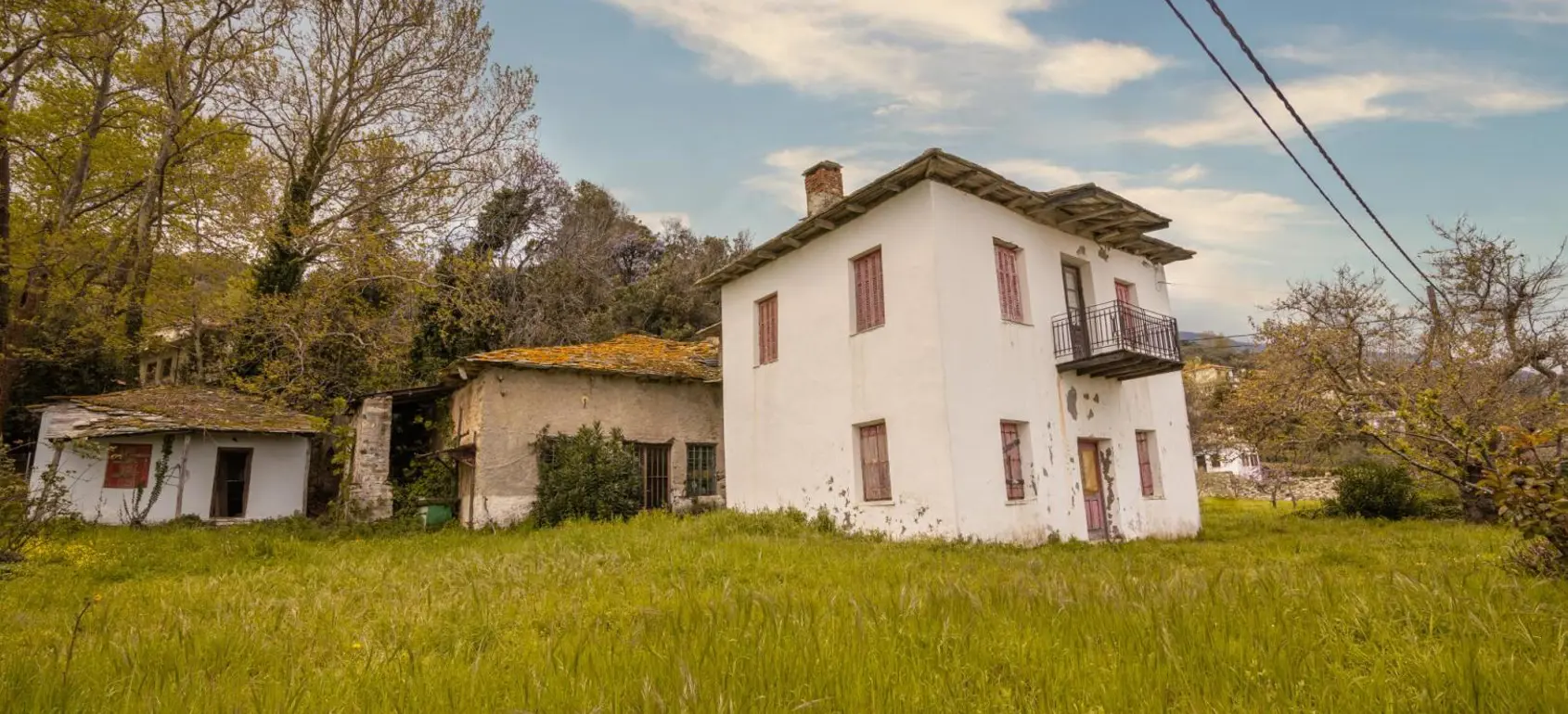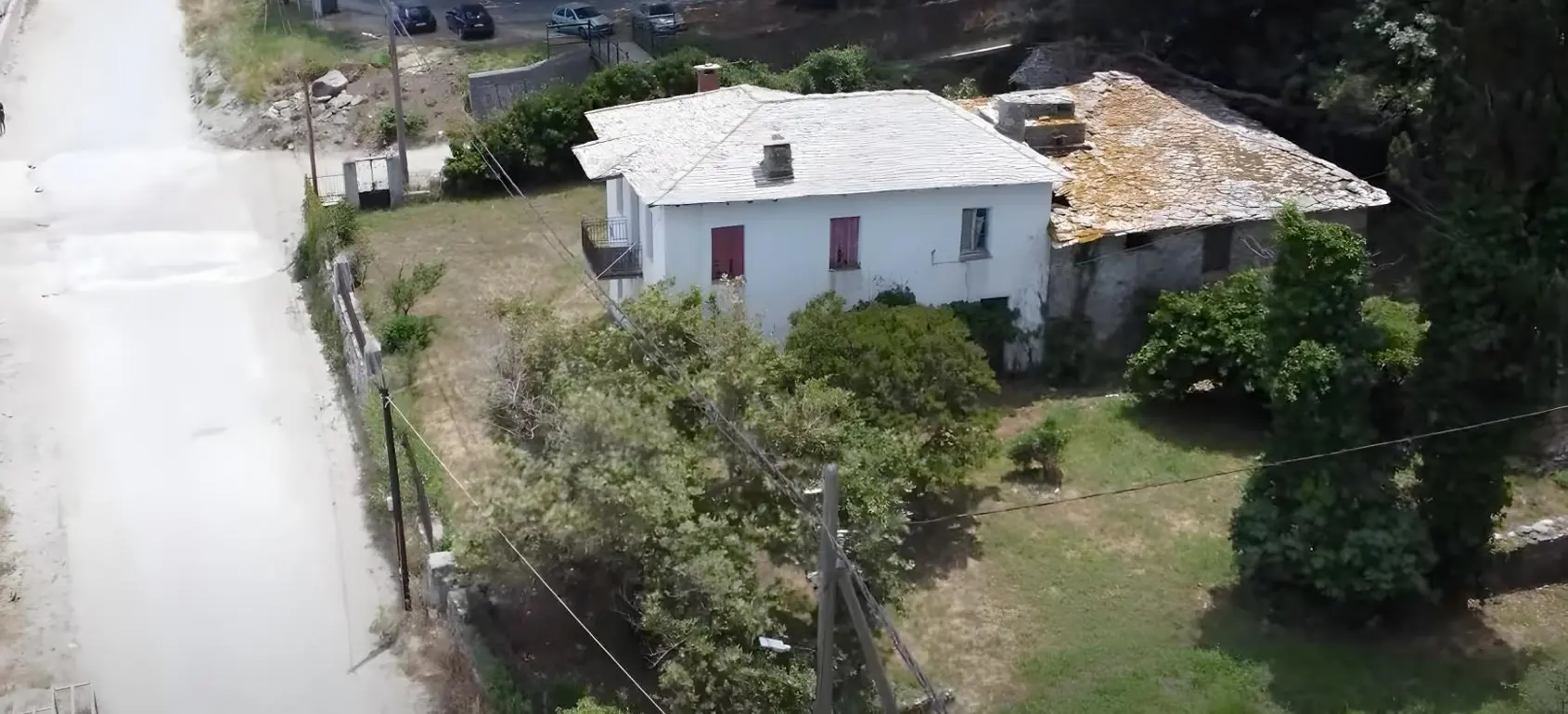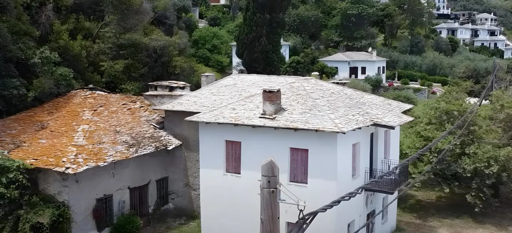 The main two-storey house (153 m²) still shows traces of its traditional Pelion-tiled roof and original layout.
