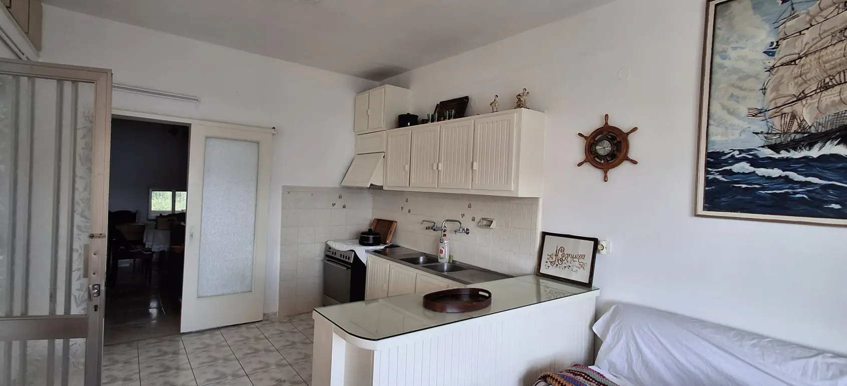 Set on a 225 m² plot in Kokkina, Sitia, this 90 m² detached home offers peaceful seaside living with excellent potential for enhancement. The property is arranged across two floors in a U-shaped layout, featuring a bright living room, kitchen, bathroom and two bedrooms on the main level.