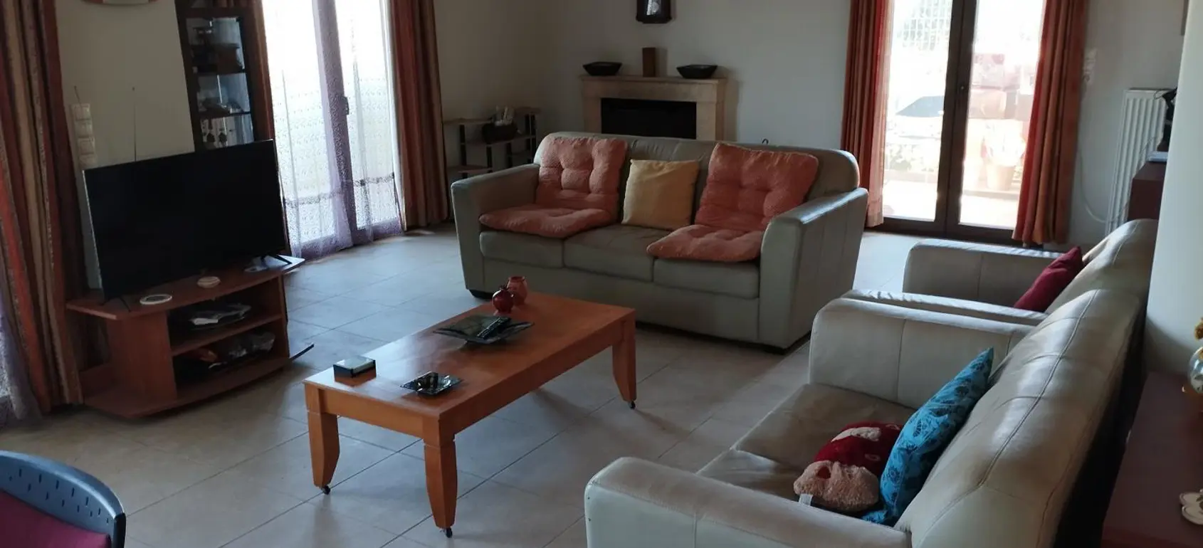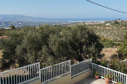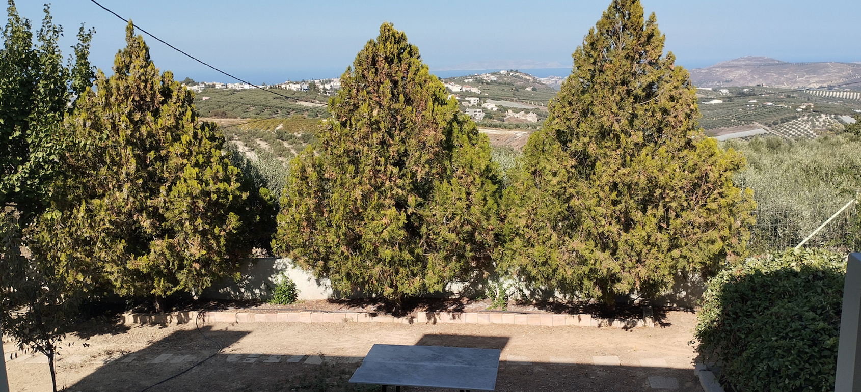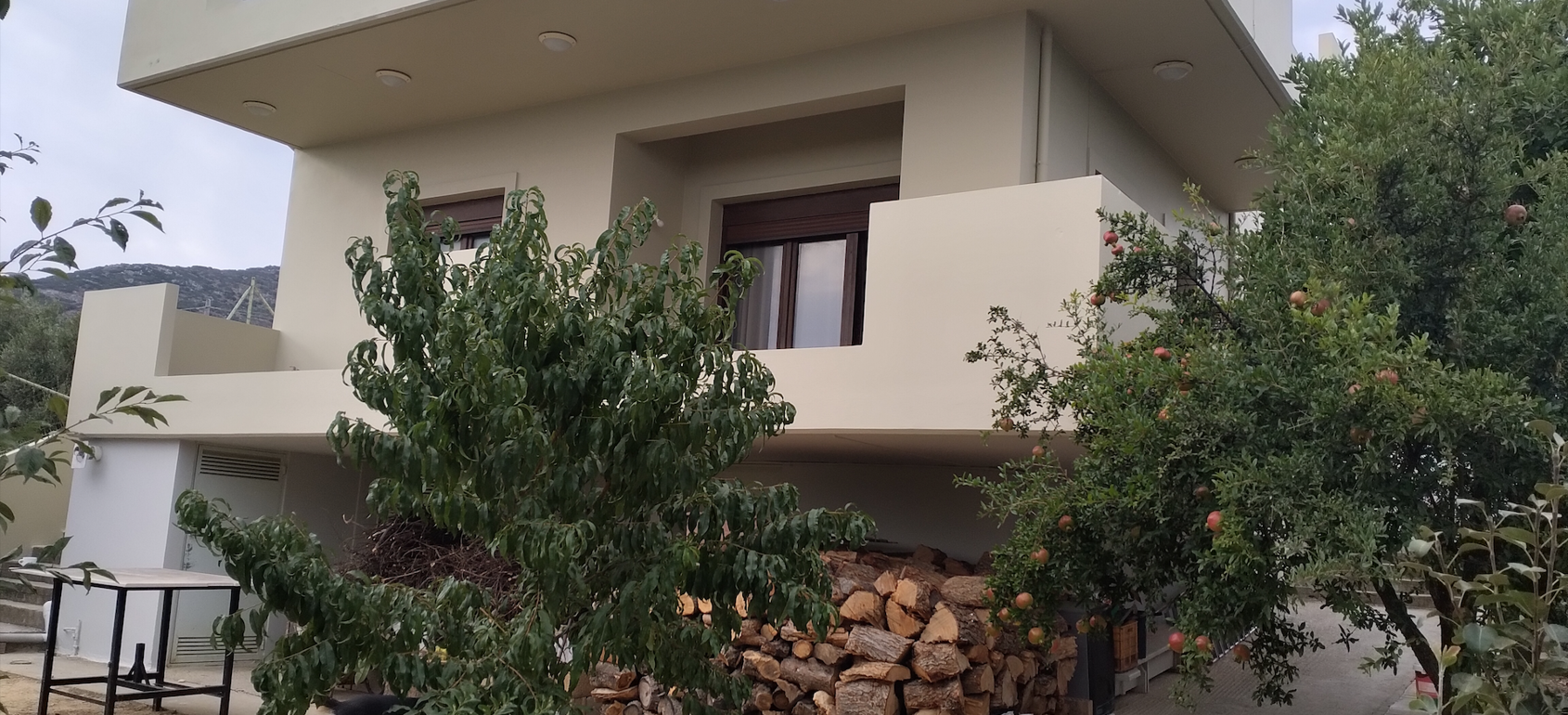 This spacious detached house sits on a 515 m² fenced plot in the tranquil suburb of Agios Vlasios, just outside Heraklion. Surrounded by nature with no immediate neighbours, the home offers privacy, panoramic views, and a calm atmosphere.