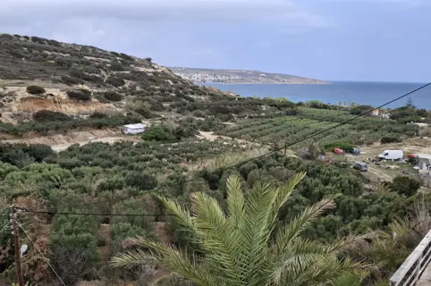 The plot spans 5,218 sqm and features 89 mature biological olive trees, making it ideal for anyone interested in small-scale olive oil production or simply enjoying a natural Mediterranean setting. Its elevated position offers open views across the landscape, and the gentle slope provides ideal conditions for cultivation.