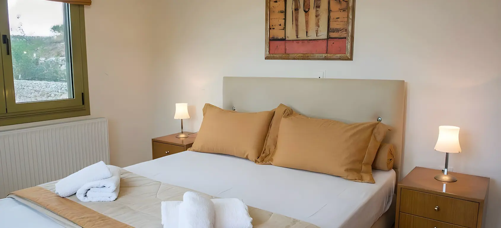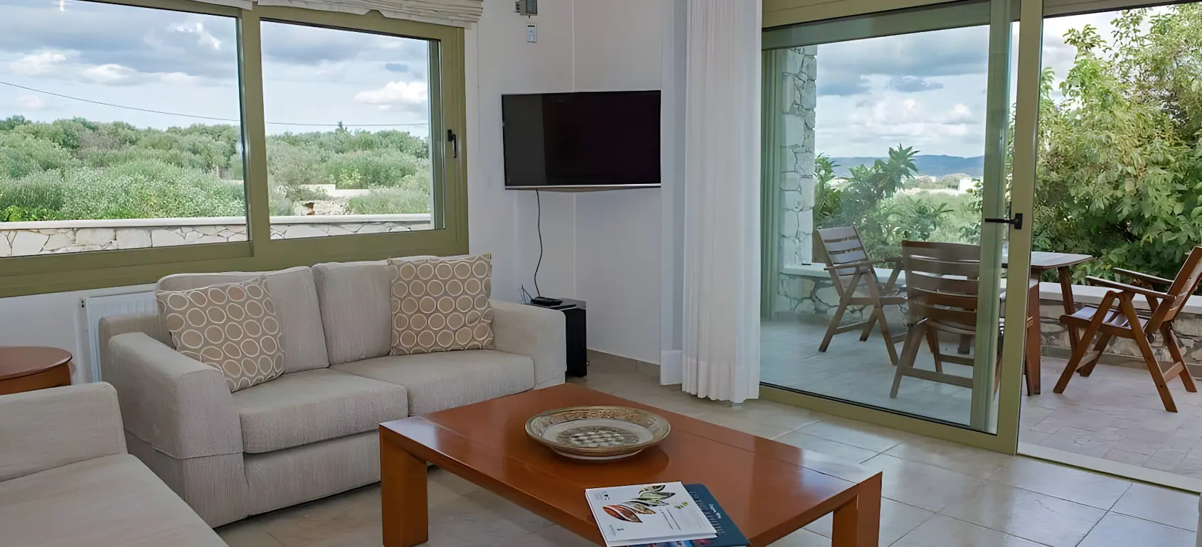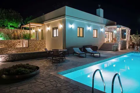 A refined villa with heated pool, landscaped grounds, and sea views, set on a generous private plot in Sitia.