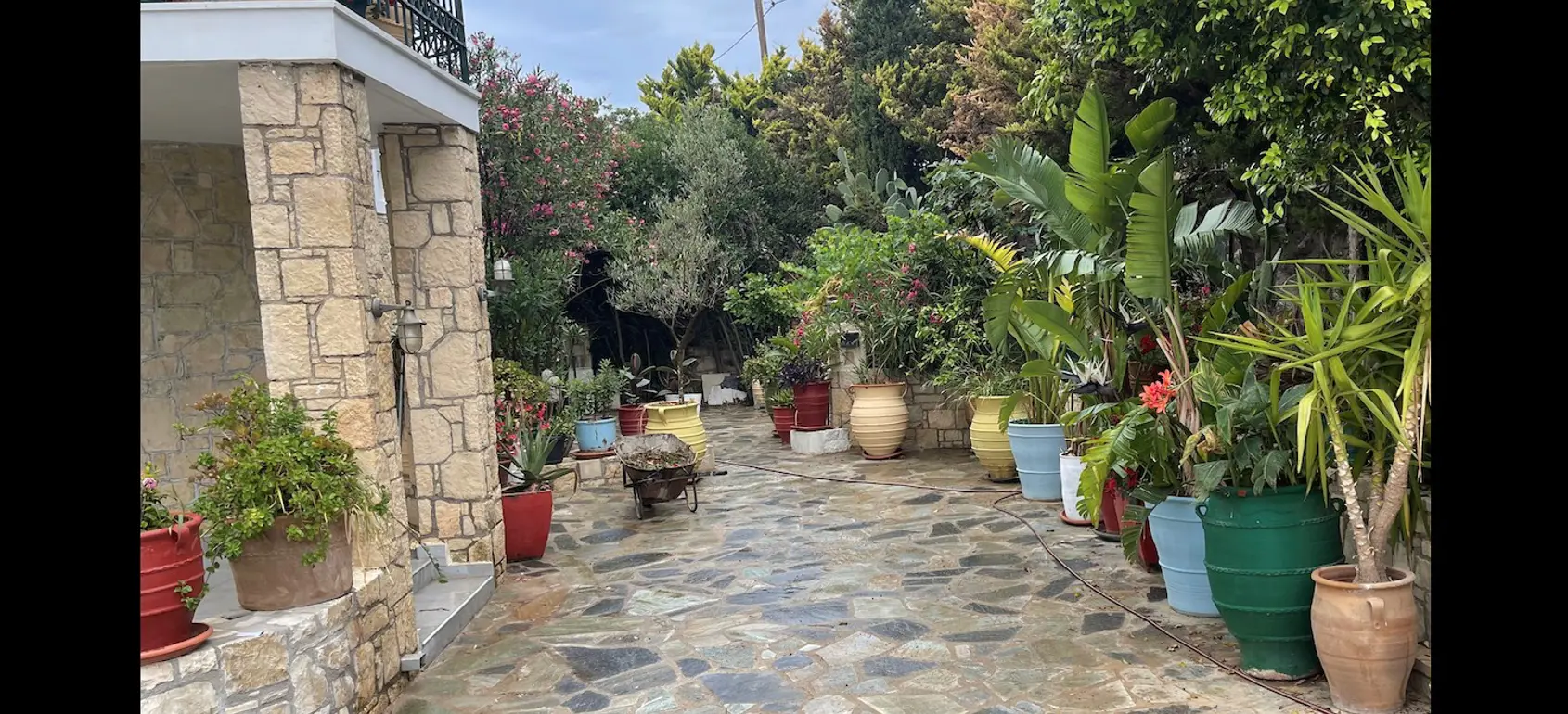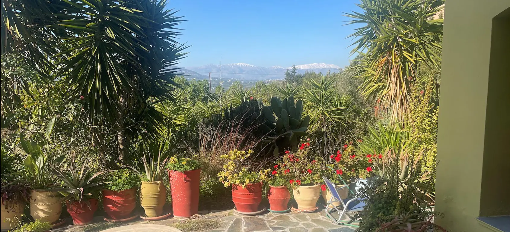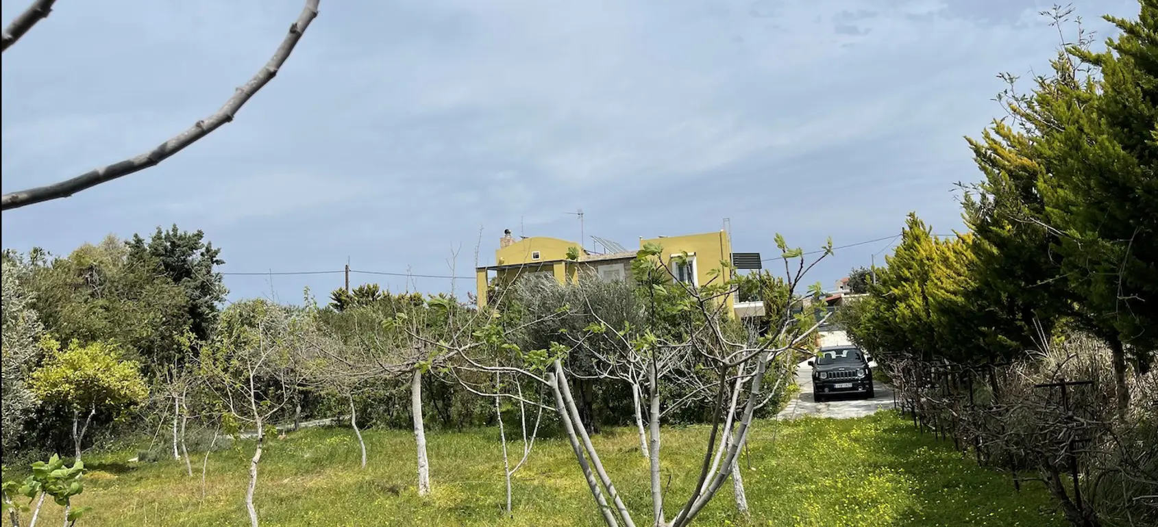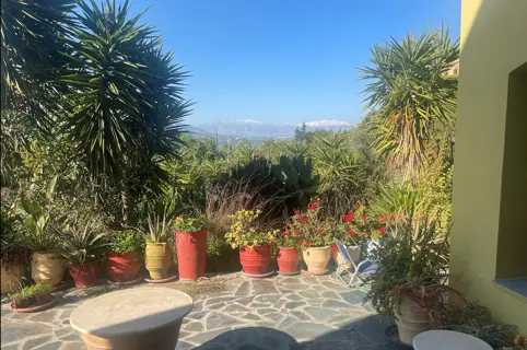 The gardens are rich with figs, pomegranates, mulberries, grapes, olives, citrus, and fragrant herbs, with plenty of space for a swimming pool.