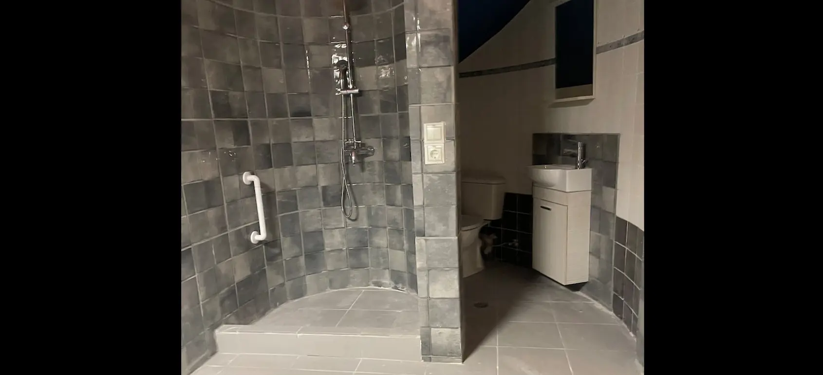 The semi-basement (87 m²) with an independent entrance, offers a 65 m² junior suite with open-plan living and bedroom space, a cava for wines, a library, and a bathroom with shower and WC. Featuring traditional stone flooring to match the ground floor, this versatile suite is ideal for guests, extended family, or private retreat space. The semi-basement also includes a separate 22 m² storage room and a 20 m² engineering room housing the home’s energy systems.
