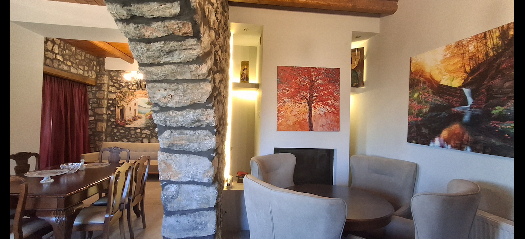 Restored stone villa on a private plot with dramatic gorge views, flexible interiors, and strong potential for further expansion.