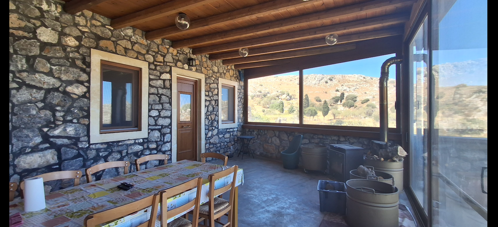 Traditional elements include two wood-fired ovens, a rock-carved WC and a partially completed pool. A separate outbuilding provides scope for converting into a guest studio, while the structure also allows for an additional floor to extend the living space and enhance the panoramic outlook. Positioned within the UNESCO-listed Sitia Global Geopark, the property combines heritage, privacy and natural beauty.