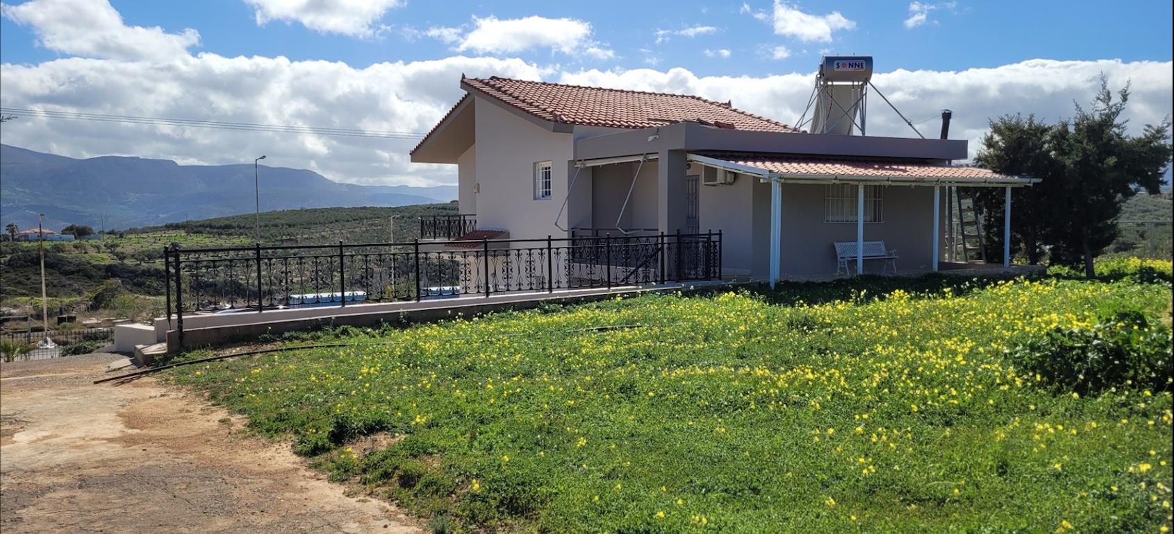 Countryside villa at the entrance of Sitia offering a 206 m² residence, guest studios and 8,000 m² of buildable land with sea and mountain views.