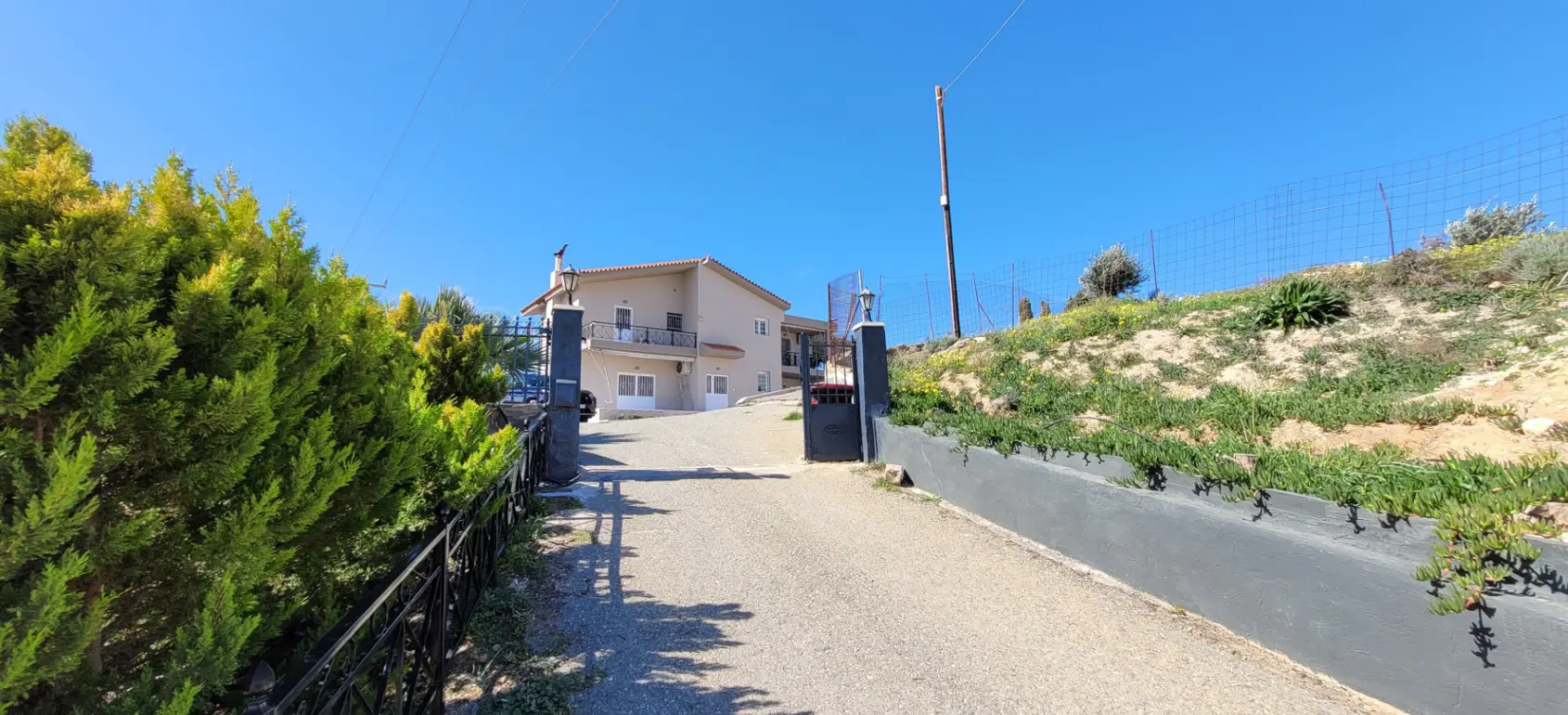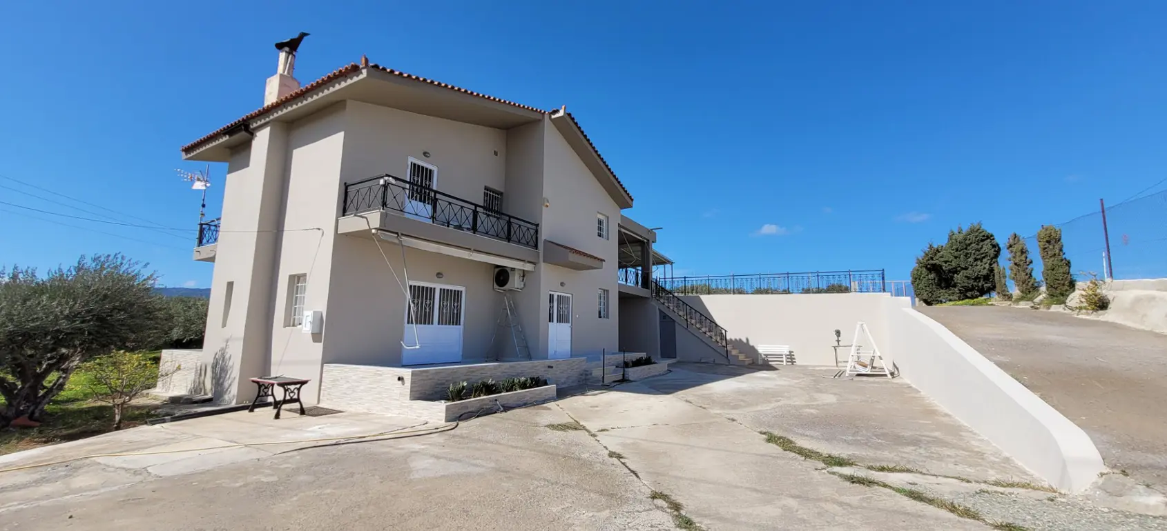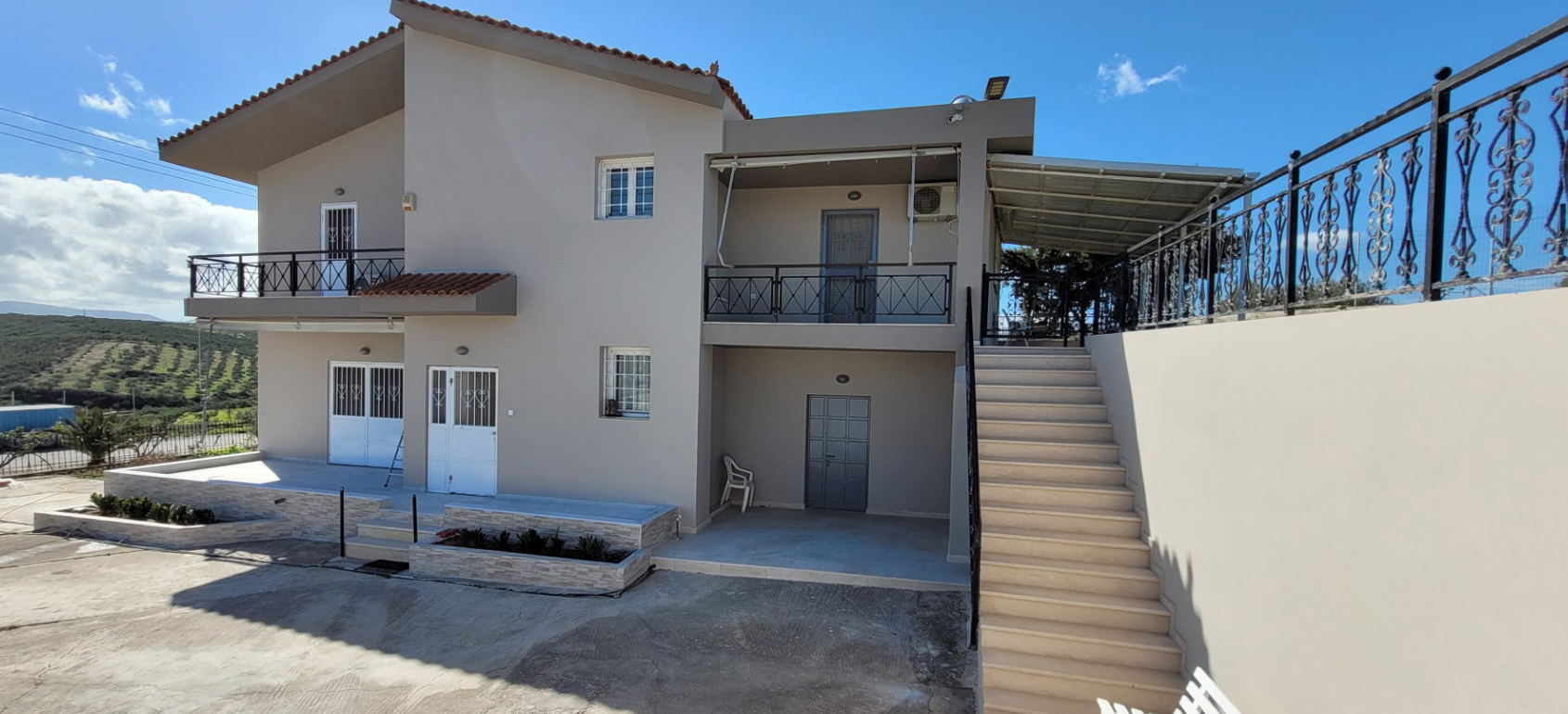 Set on 8,000 m² plot in eastern Crete, the property combines a private residence with independent guest accommodation and future development potential.