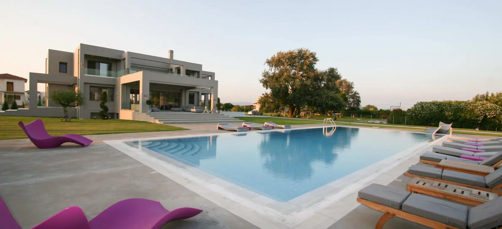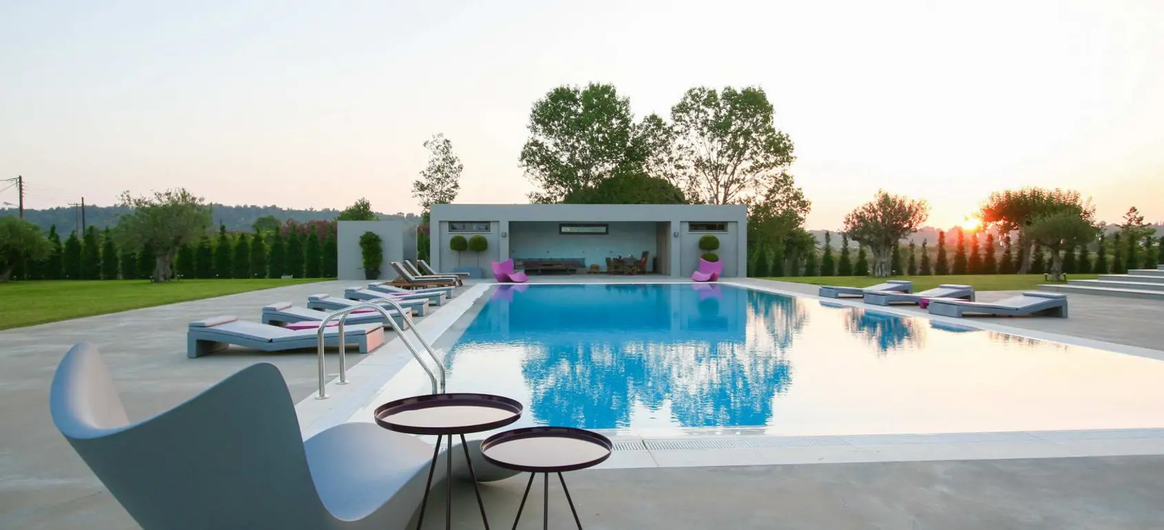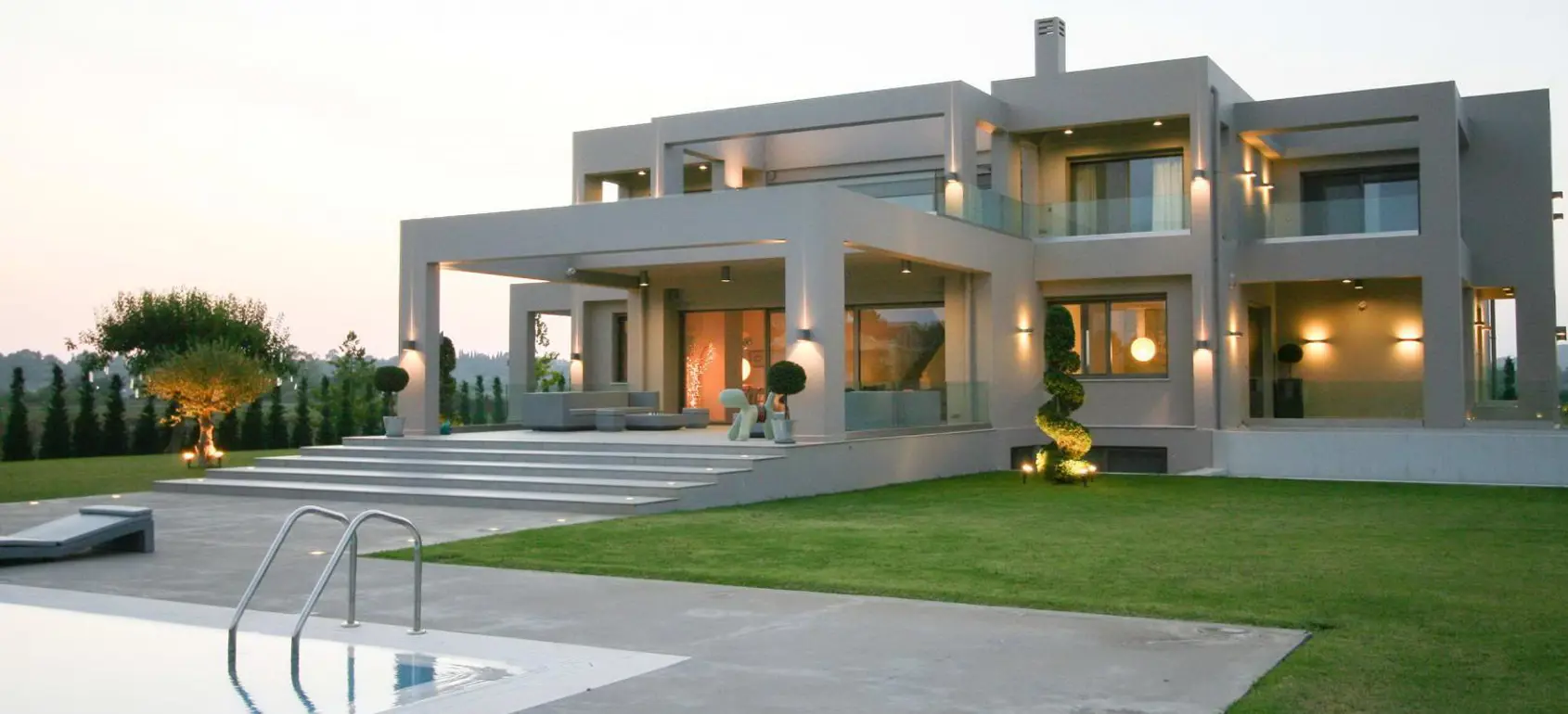 The villa represents one of the best examples of modern architecture artfully adjusted in the natural environment. The building, the furniture, the decoration and the surrounding landscape, combine to creating a unique outcome. It fully reflects the philosophy to create a positive and at the same time magical influence in people's lives. In a beautifully modified landscape in a piece of land of 17,000 sqm this property also includes a pool house and a gardener's house.