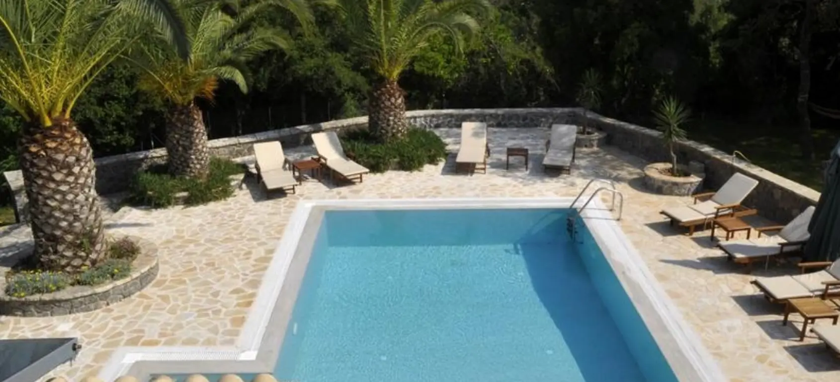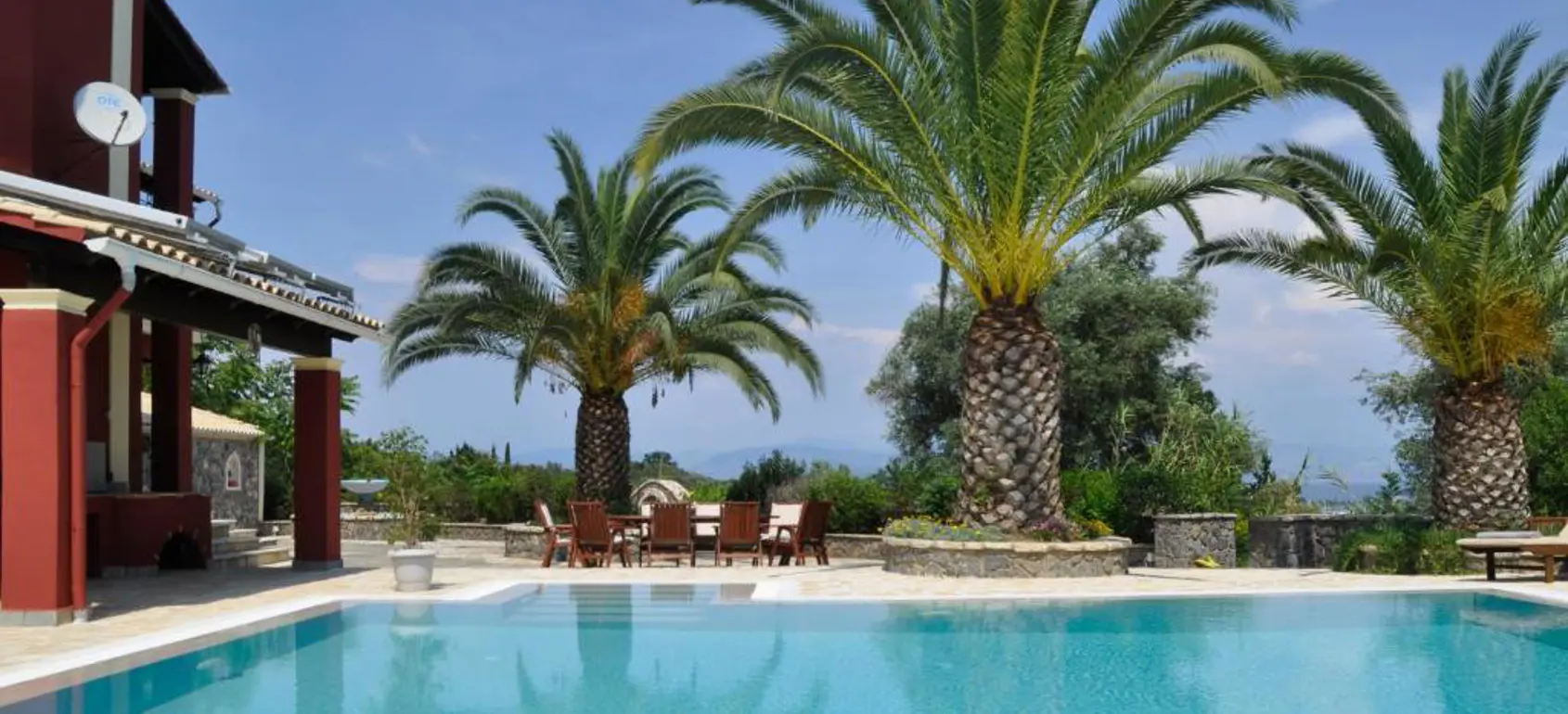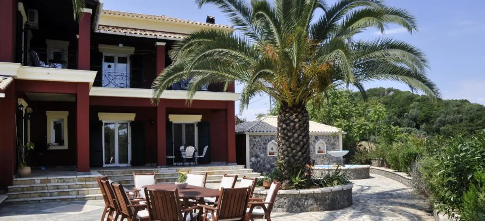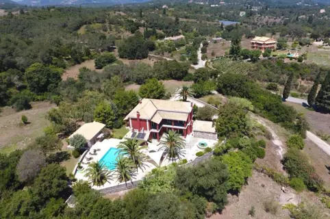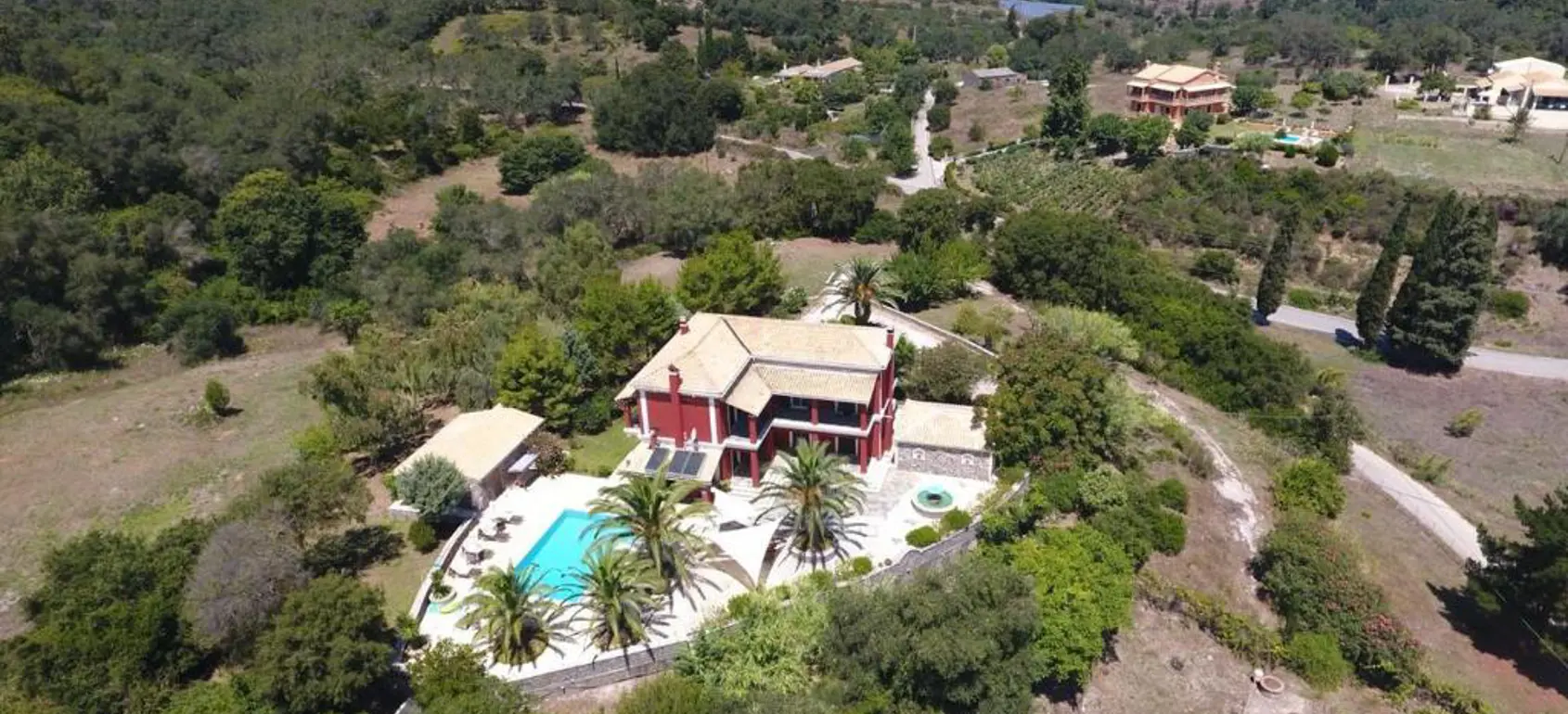 Perched atop the scenic hills of Corfu with sea views, is surrounded by captivating scenery and 12,000 sqm of fenced land. Inspired by traditional local architecture, it offers all the amenities of modern life, while also cultivating a natural appeal. Finished in an elegant Venetian red, with a tan cobblestone terrace overlooking the Ionian Sea, the villa will delight you with the style and comfort that it offers.